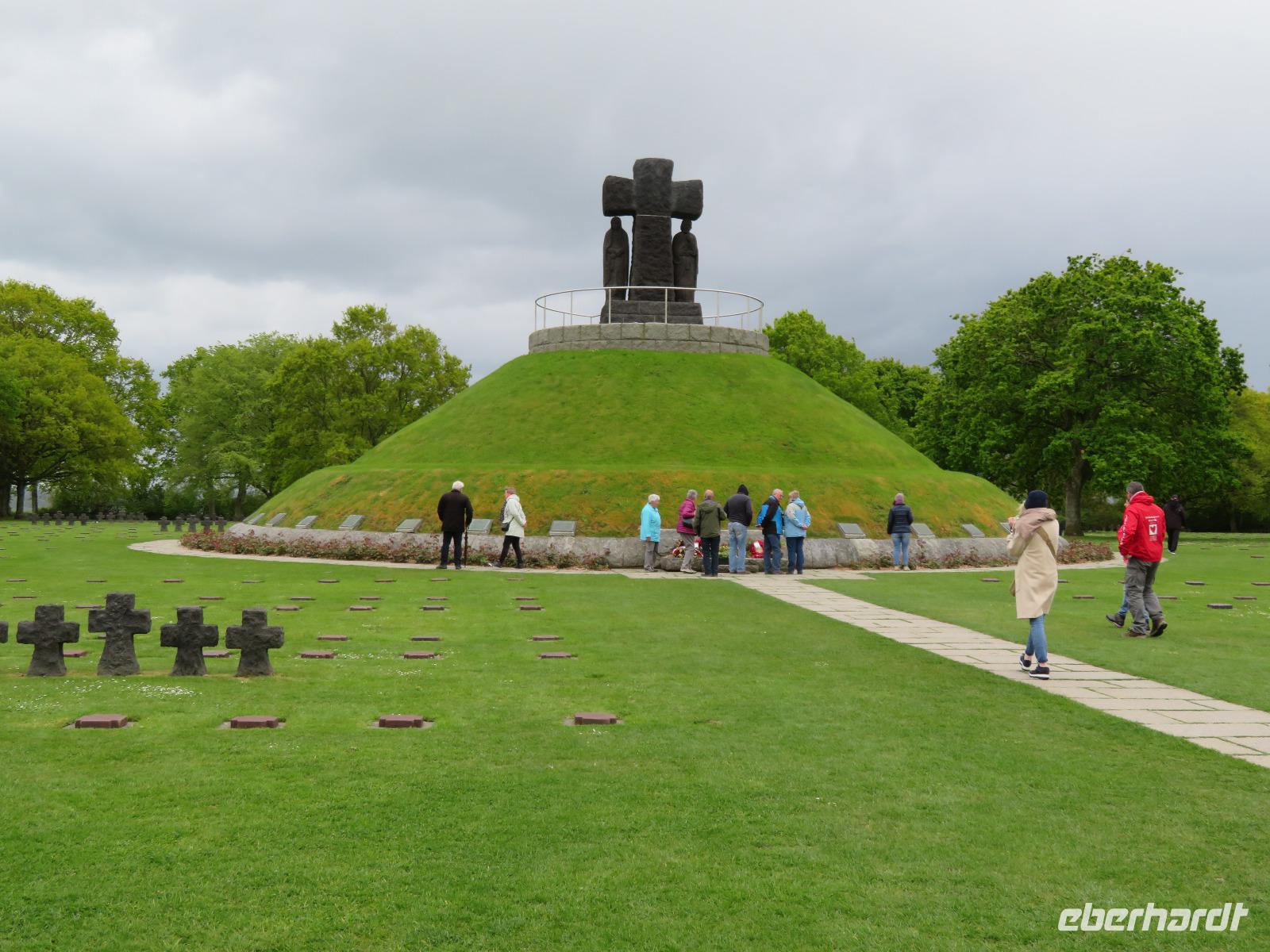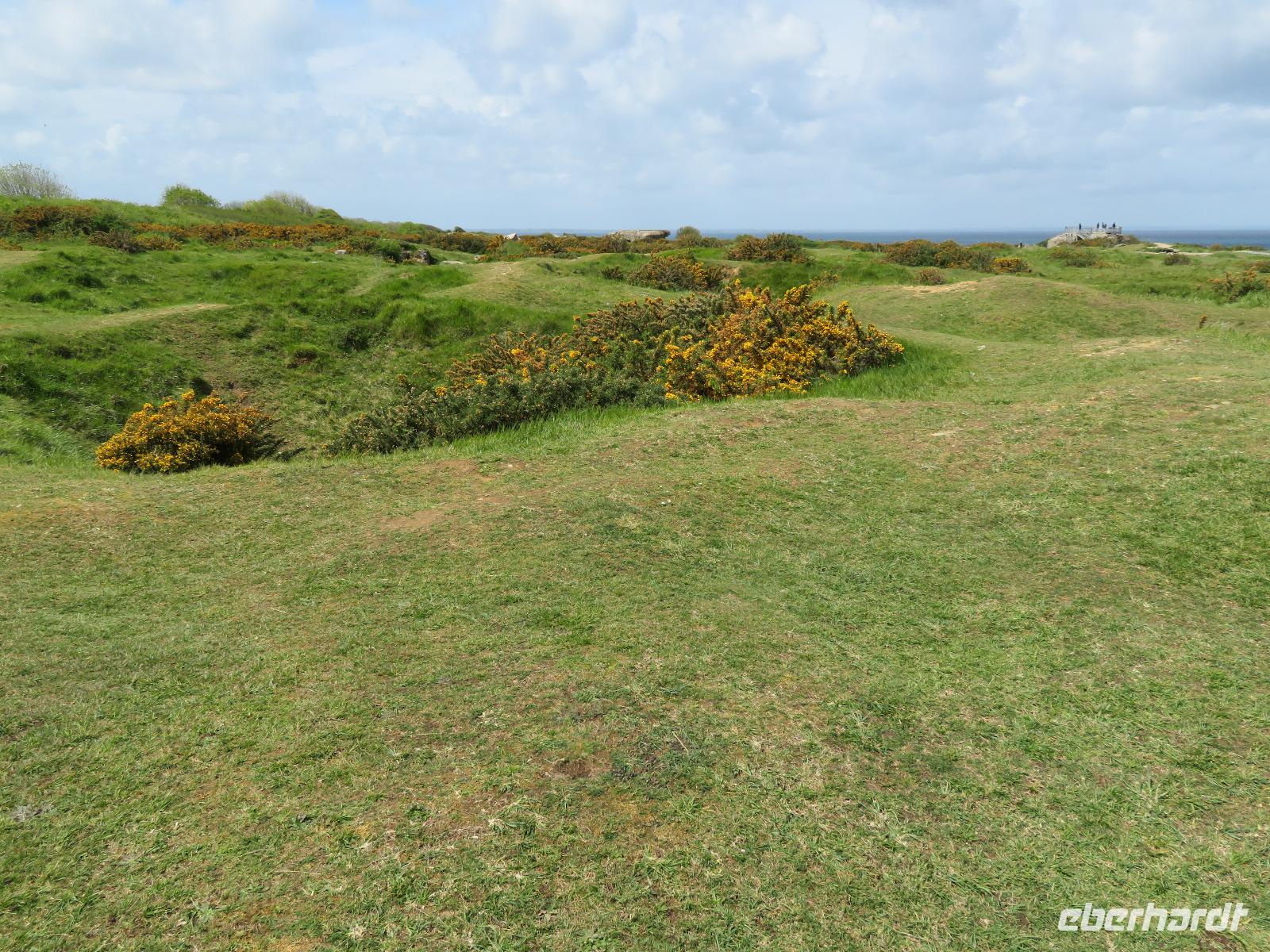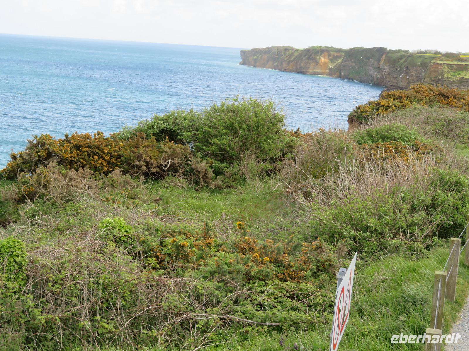 74. Jahrestag des Endes des 2. Weltkrieges.Mit dem Bus ging es von Caen in nur wenigen Kilometern an die Atlantikküste. Um den D-Day, die Aktion „Overlord" , also die Landung der Alliierten am 6. Juni 1944 historisch korrekt zu erklären, fuhren wir zunächst zur Pegasusbrücke, wo einst durch britische Soldaten die Ostflanke der Landungsstrände gesichert wurde. In Ouistreham umfuhren wir den sechsetagigen Hochbunker, eine Kommandoleitzentrale der deutschen Besatzer. Dann ging es zu den Stränden der Anlandung mit den militärischen Bezeichnungen wie Sword, Juno, Gold und Omaha. Bei Arromanches blickten wir auf die Reste des künstlichen Hafens Mulberry, in dem 1944 binnen weniger Wochen mehr als 200.000 Soldaten und 40.000 Fahrzeuge anlandeten. Im 360° - Kino konnten wir uns einen filmischen Eindruck vom Geschehen machen. Im nahen Longues sur Mer stoppten wir an den Resten deutscher Bunker bis uns ein kräftiger Regenschauer vertrieb. All die bisher besichtigten Punkte waren zumeist Programm bisheriger Eberhardt-Travel-Reisen an die Landungsstrände. Nunmehr waren wir gefordert, im erweiterten Programm gemeinsam Weiteres zu erkunden.