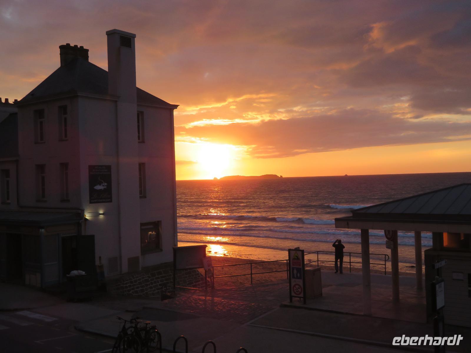Dann waren es noch reichlich zwei Stunden Busfahrt bis nach St. Malo. Im Anblick von Mont St. Michel überquerten wir die „Grenze" von der Normandie zur Bretagne und erreichten das Hotel escale oceana direkt an der Strandstraße von St. Malo noch vor achtzehn Uhr - Zeit, um noch auf das ansteigende Meer direkt vor der Tür zu schauen.