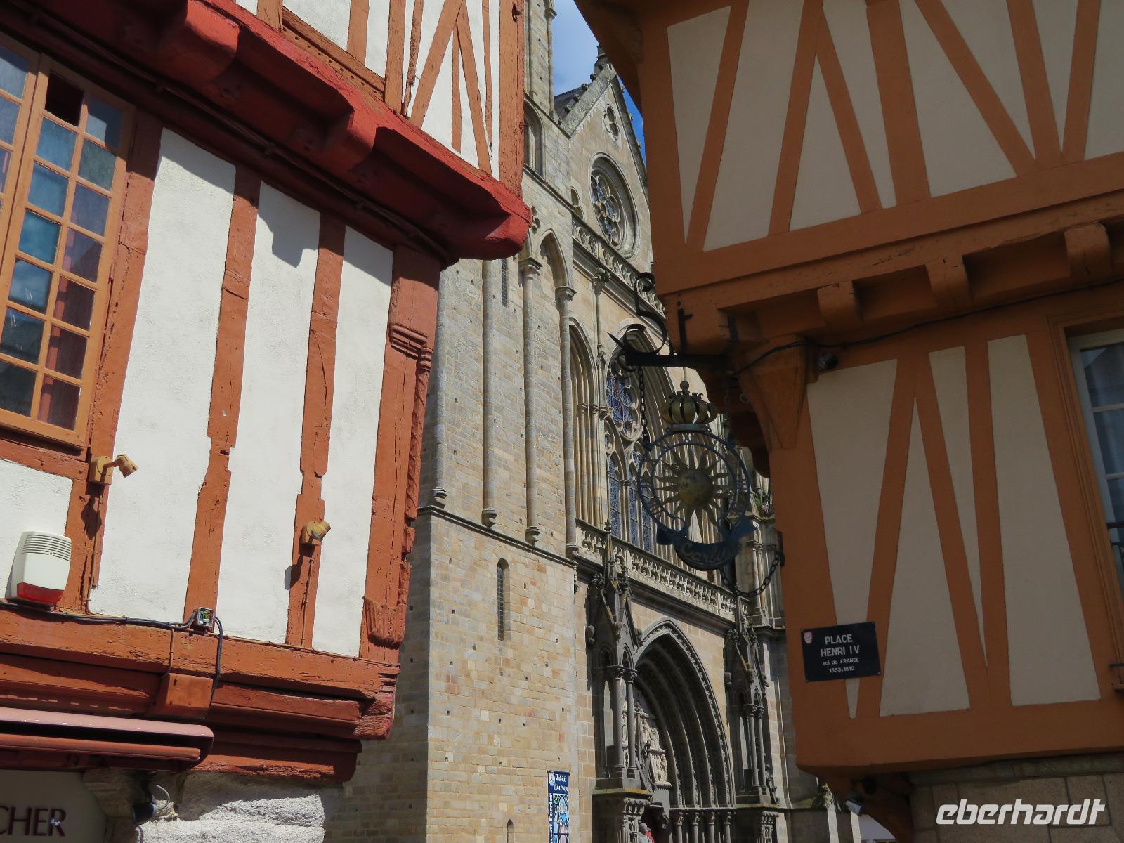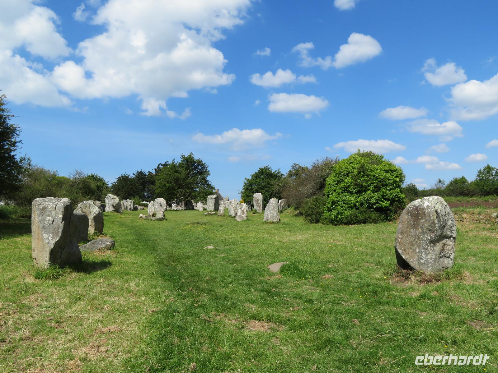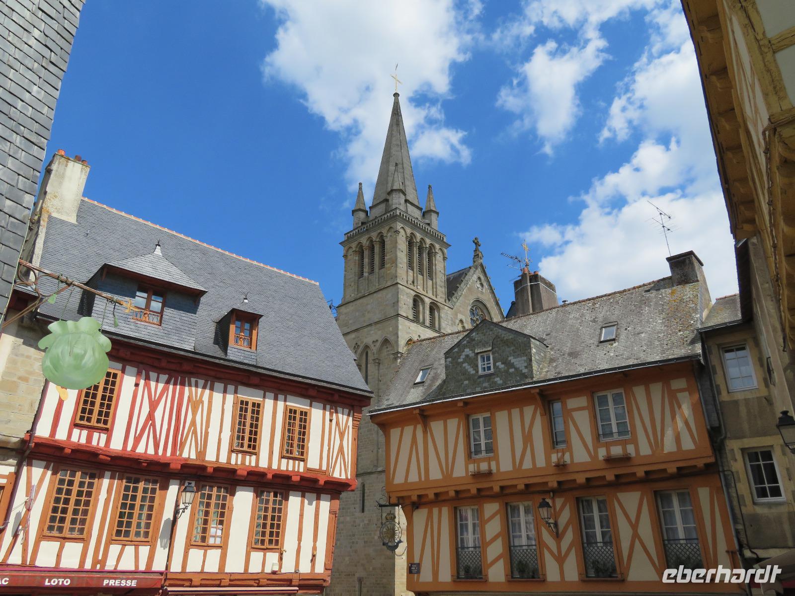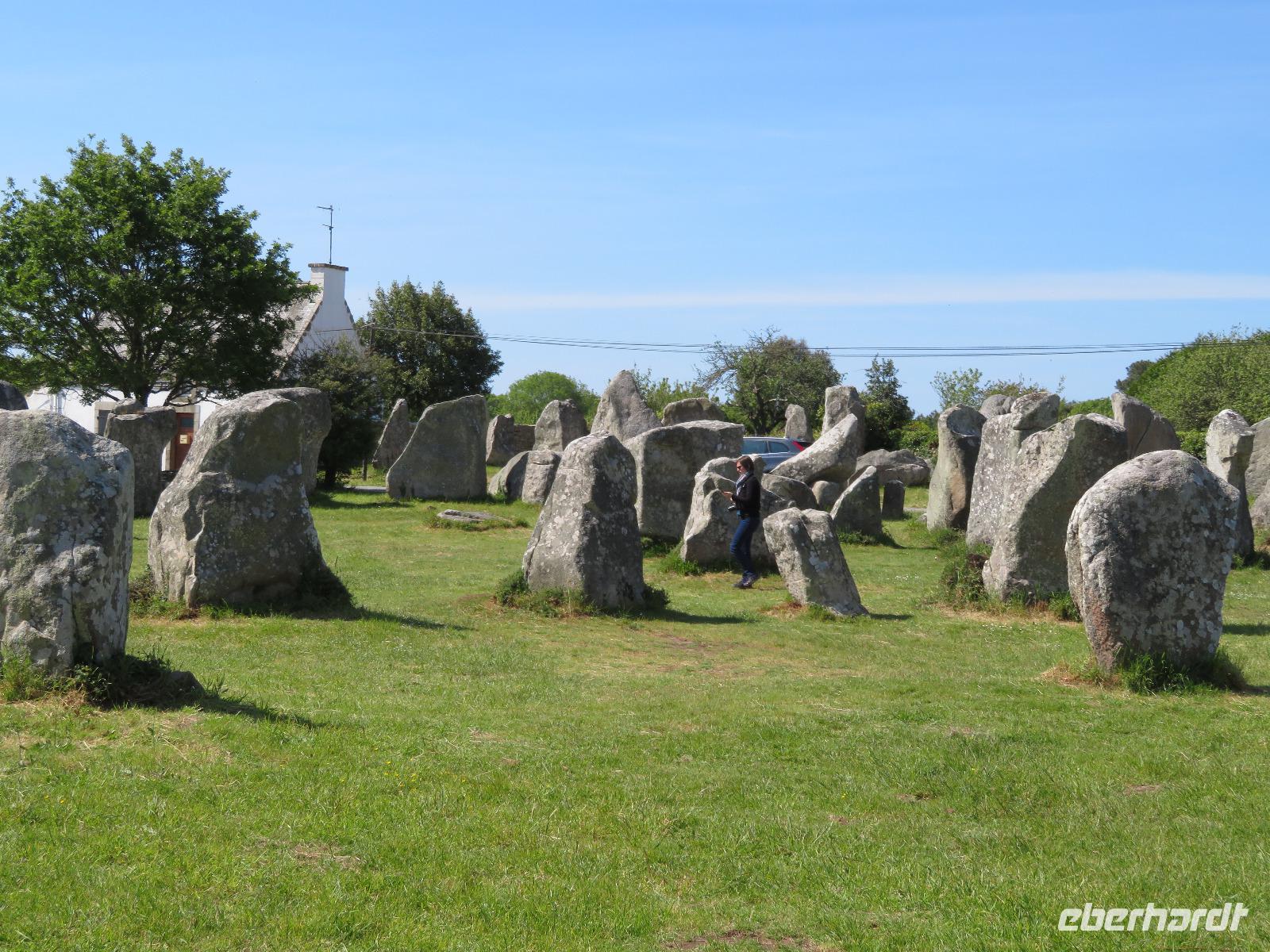 Am frühen Vormittag erreichten wir den Fischerort Concarneau mit seiner einst geschlossenen Stadt, einer Altstadt im Festungsring auf einer Halbinsel im Meer. Ohne Touristen und noch mit geschlossenen Geschäften hat der Ort durchaus seinen Reiz, weil man die ursprüngliche Bausubstanz viel besser erkennen kann als im Gewimmel von Touristen und Auslagen. Auf üblichem Weg durch die Altstadt erreichten wir das Weintor. Der übliche Aufstieg auf die östliche Festungsmauer Festungsmauer war uns jedoch verwehrt, weil Bogenschießwettbewerbe im historischen Ensemble stattfanden. Bei lockerer Bewölkung fuhren wir weiter an die Südküste der Bretagne Richtung Carnac. Die Ortsbezeichnung gründet sich auf dem englischen Wort carns für Steine. Vor mehr als fünftausend Jahren stellten hier die Menschen teils behauene Findlinge auf und richteten sie in parallelen Reihen aus. So sind heut noch sechs der sogenannte Menhirfelder nördlich von Carnac mit je ca. 950 - 1150 Steinen zu besichtigen. Im bereits vor Carnac liegenden Feld bei Erdeven kann man sogar zwischen den Steinen gehen und entdeckt Dolmen von fünf bis sieben Metern Höhe, umgeben von Eichenbäumen mit Vogelgezwitscher. Am zeitigen Nachmittag erreichten wir Vannes und starteten zum Stadtrundgang mit Regula. Regula war an diesem Tag ganz außer Sicht, weil die örtliche Rugby-Mannschaft um den Aufstieg in die 1. Liga spielte; so kämpften wir in der ersten halben Stunde etwas mit Menschenauflauf und Openair-Übertragung. Vom alten Hafen zog es uns durch das Hafentor, in den doppelwandigen Stadtmauerring - heute eine blühende Gartenanlage nach französischer Gartenarchitektur - an der Waschstelle vorbei und dann hinauf über den Platz der Ritterturniere zur Kathedrale. Nach sechzehn Uhr war Zeit für individuelles Bummeln - leider war die Stadt am Sonntagnachmittag doch recht verweist und das gastronomische Angebot in der Stadt wohl unter dem von Weiswasser.