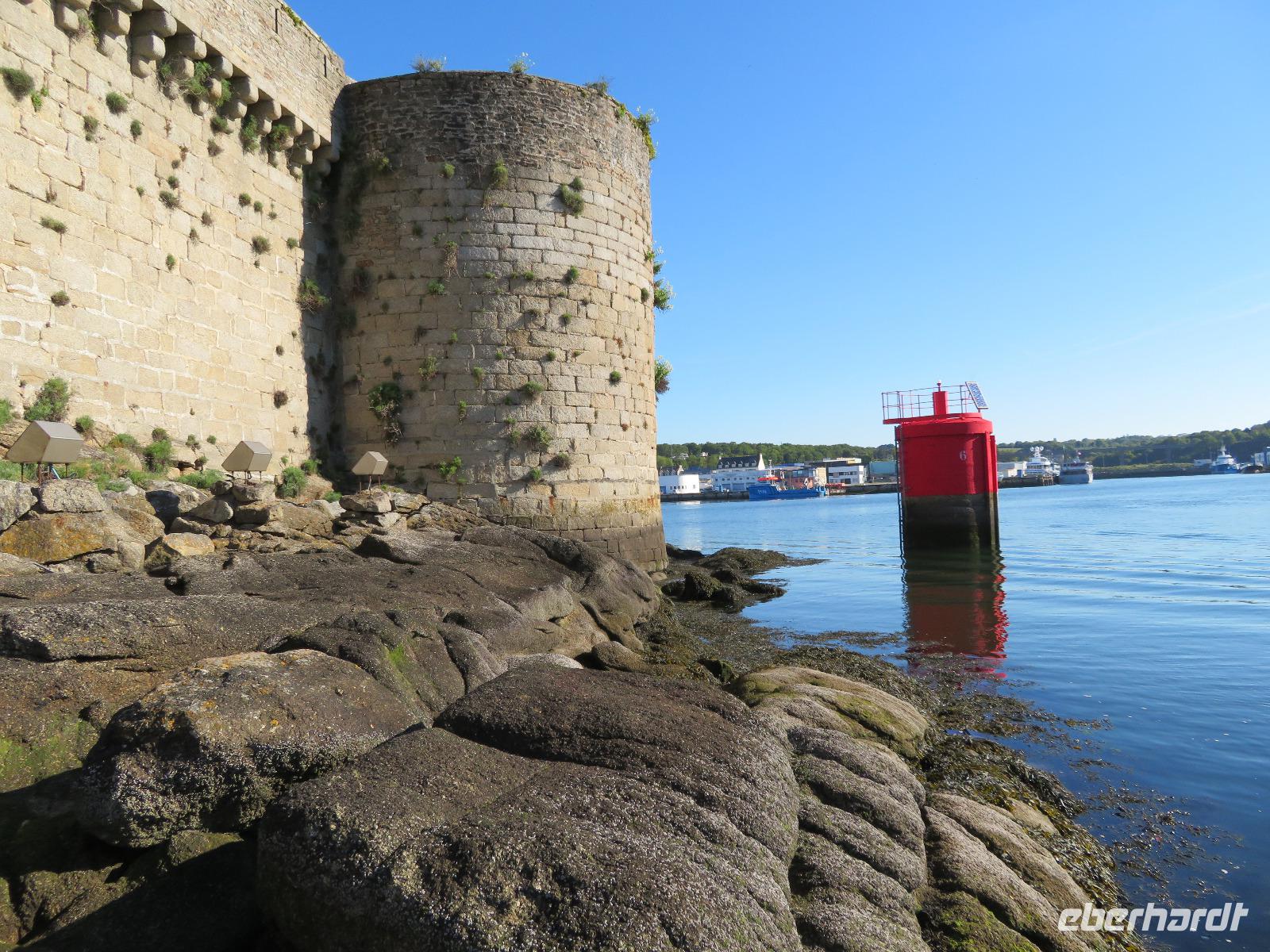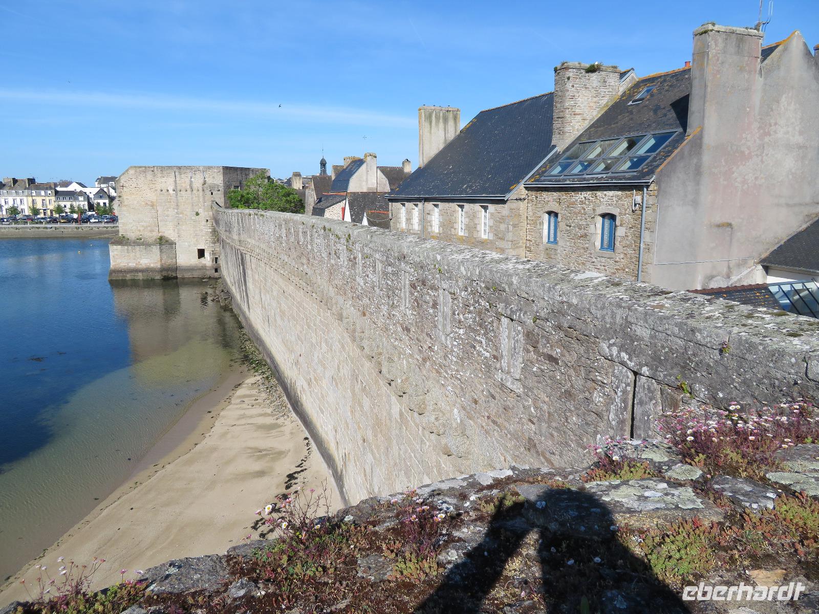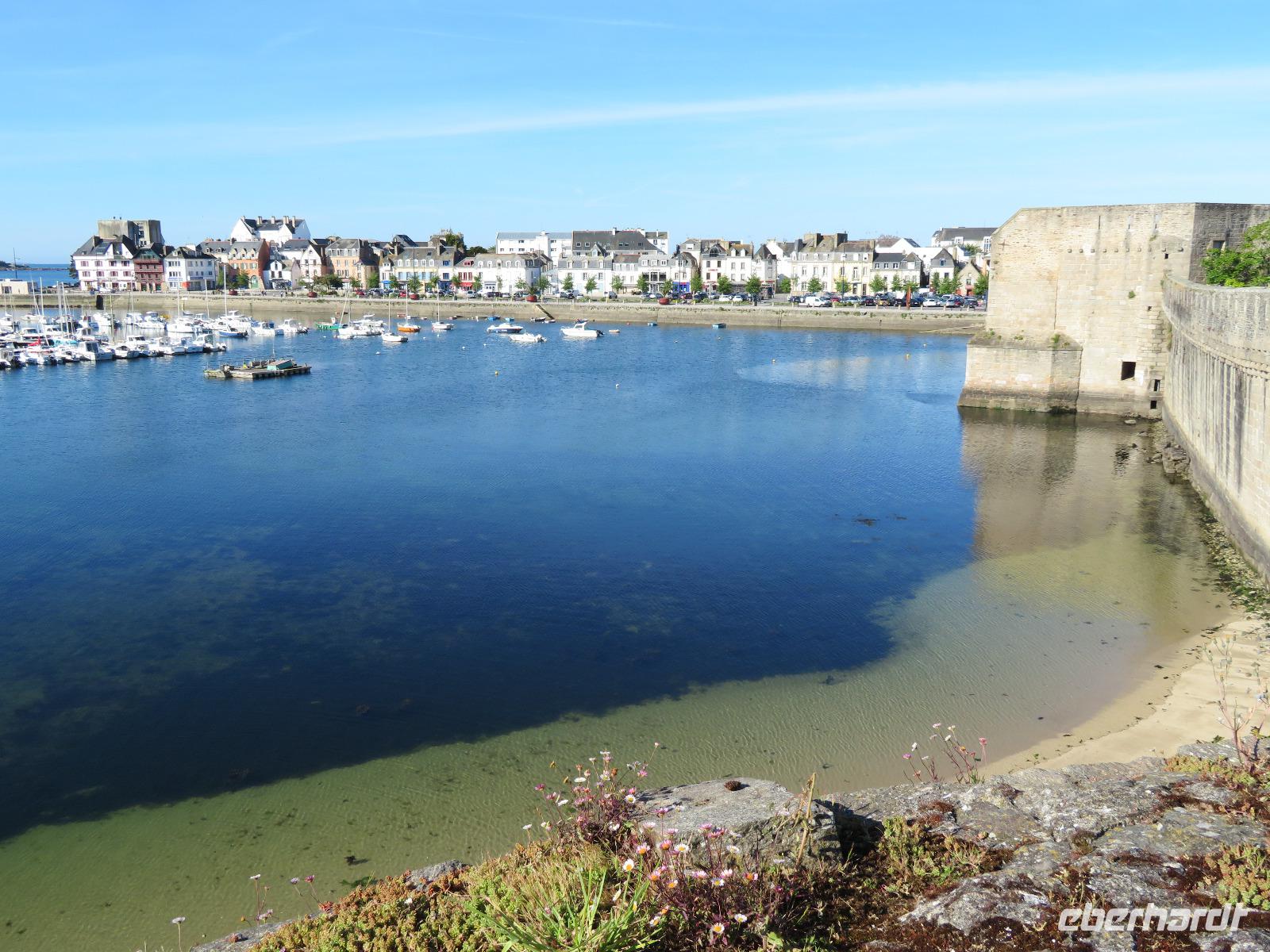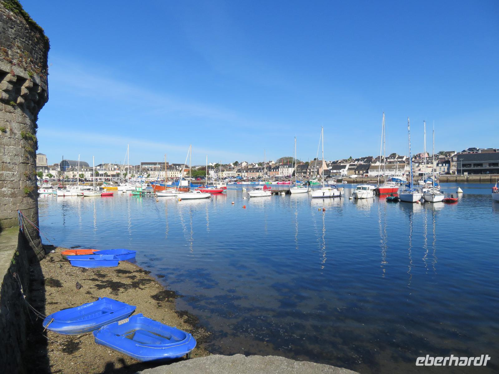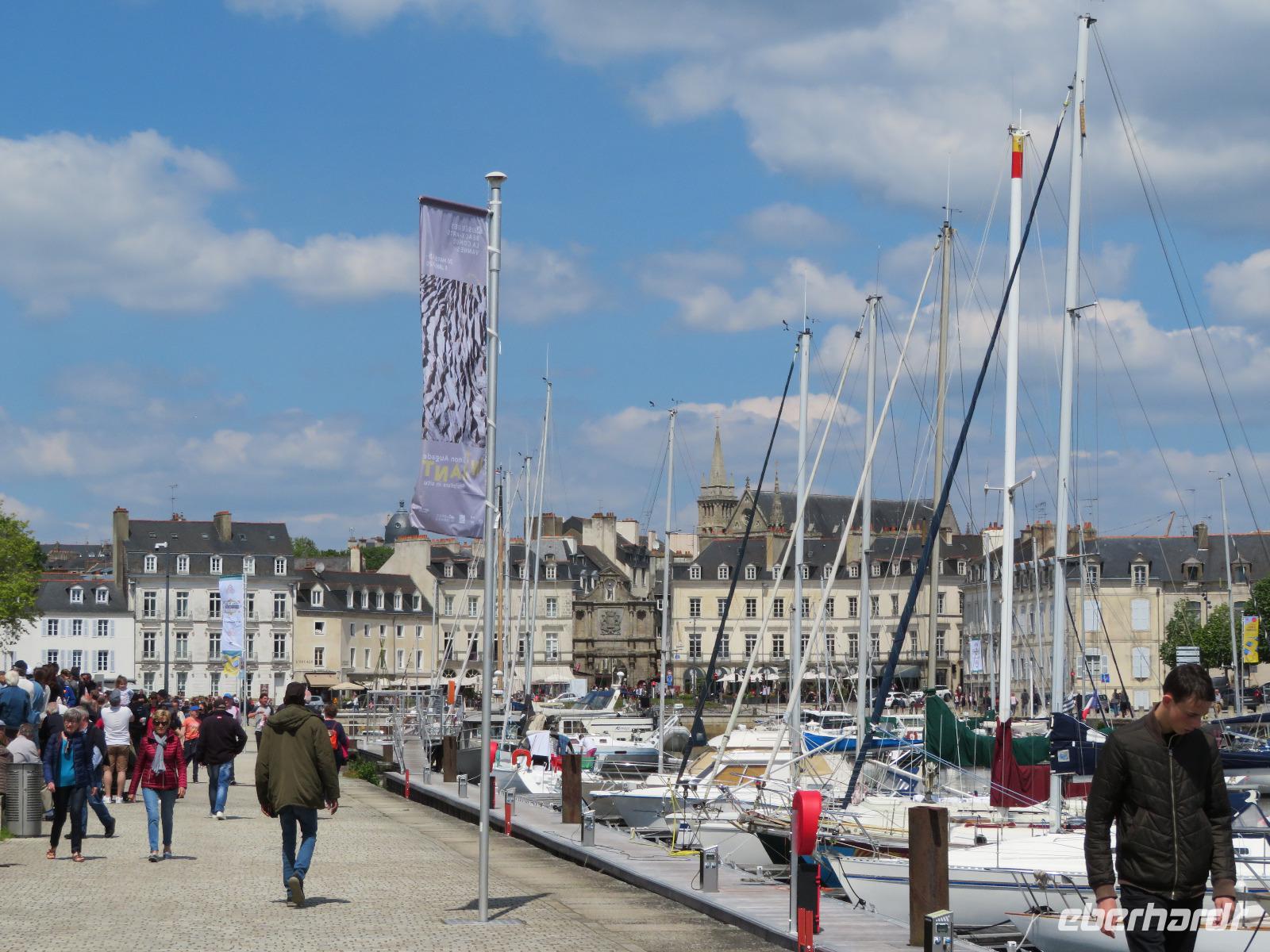 Am frühen Vormittag erreichten wir den Fischerort Concarneau mit seiner einst geschlossenen Stadt, einer Altstadt im Festungsring auf einer Halbinsel im Meer. Ohne Touristen und noch mit geschlossenen Geschäften hat der Ort durchaus seinen Reiz, weil man die ursprüngliche Bausubstanz viel besser erkennen kann als im Gewimmel von Touristen und Auslagen. Auf üblichem Weg durch die Altstadt erreichten wir das Weintor. Der übliche Aufstieg auf die östliche Festungsmauer Festungsmauer war uns jedoch verwehrt, weil Bogenschießwettbewerbe im historischen Ensemble stattfanden. Bei lockerer Bewölkung fuhren wir weiter an die Südküste der Bretagne Richtung Carnac. Die Ortsbezeichnung gründet sich auf dem englischen Wort carns für Steine. Vor mehr als fünftausend Jahren stellten hier die Menschen teils behauene Findlinge auf und richteten sie in parallelen Reihen aus. So sind heut noch sechs der sogenannte Menhirfelder nördlich von Carnac mit je ca. 950 - 1150 Steinen zu besichtigen. Im bereits vor Carnac liegenden Feld bei Erdeven kann man sogar zwischen den Steinen gehen und entdeckt Dolmen von fünf bis sieben Metern Höhe, umgeben von Eichenbäumen mit Vogelgezwitscher. Am zeitigen Nachmittag erreichten wir Vannes und starteten zum Stadtrundgang mit Regula. Regula war an diesem Tag ganz außer Sicht, weil die örtliche Rugby-Mannschaft um den Aufstieg in die 1. Liga spielte; so kämpften wir in der ersten halben Stunde etwas mit Menschenauflauf und Openair-Übertragung. Vom alten Hafen zog es uns durch das Hafentor, in den doppelwandigen Stadtmauerring - heute eine blühende Gartenanlage nach französischer Gartenarchitektur - an der Waschstelle vorbei und dann hinauf über den Platz der Ritterturniere zur Kathedrale. Nach sechzehn Uhr war Zeit für individuelles Bummeln - leider war die Stadt am Sonntagnachmittag doch recht verweist und das gastronomische Angebot in der Stadt wohl unter dem von Weiswasser.
