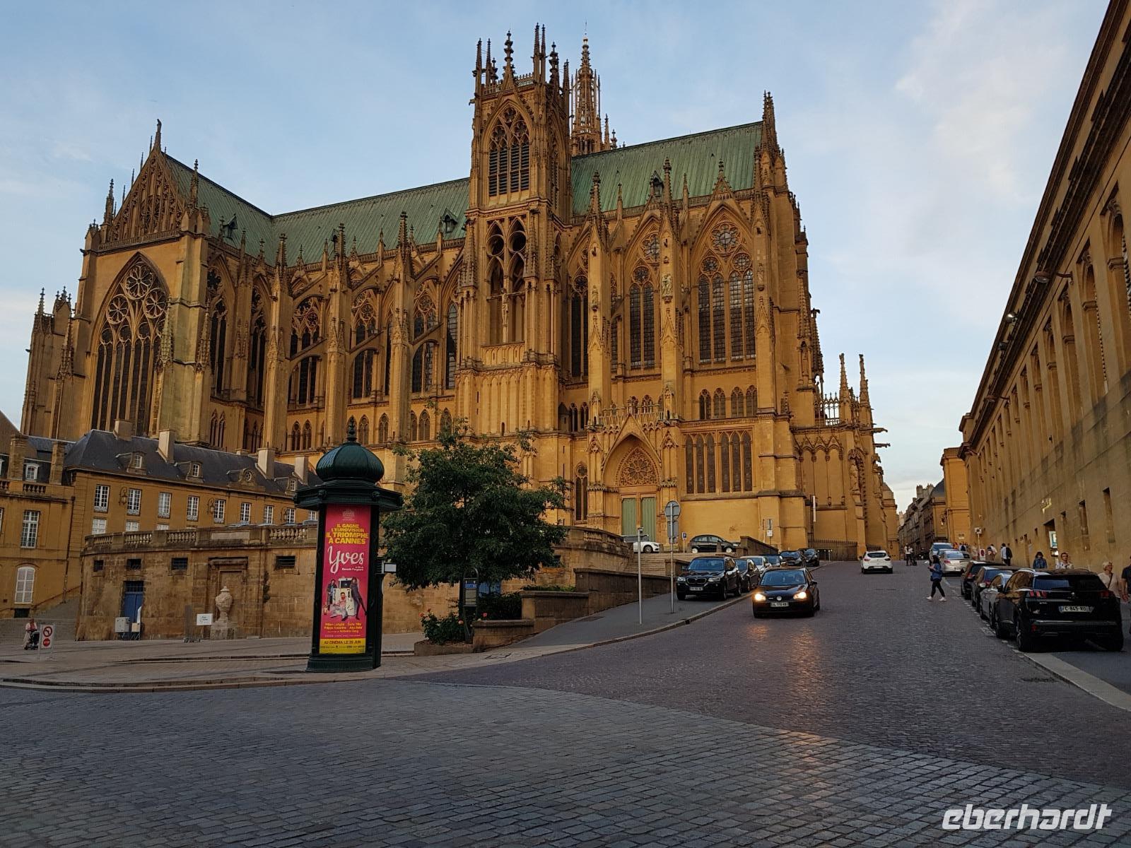 Noch vor Sonnenaufgang starteten wir am Dresdner Flughafen mit unseren ersten Reisegästen. Bei sonnigem Morgenlicht genossen wir die Fahrt durch die wunderschöne Vogtländische Landschaft und begrüßten später weitere Gäste an den Raststätten und Autohöfen von Chemnitz-Mitte, Meerane, Gera-Langenberg, Teufelstal und Neudietendorf . Nach dem um die Mittagszeit weitere Gäste in Hessen und Rheinland-Pfalz zugestiegen waren, ging es rasch durch das Saarland nach Frankreich. Am späten Nachmittag erreichten wir Metz, die Hauptstadt der historischen Region Lorraine (dt. Lothringen) und der heutigen Region Grand Est. Noch vor dem Check-Inn im Hotel besichtigten wir die prächtige Kathedrale Saint-Etienne, die gerade noch geöffnet war. Das 1220 begonnene, imponierende Bauwerk besitzt das dritthöchste Kirchengewölbe Frankreichs und ist für seine wunderbaren Glasfenster bekannt. Besonders stark beeindruckten uns in der Kathedrale die prachtvollen Glasfenster von Marc Chagall.