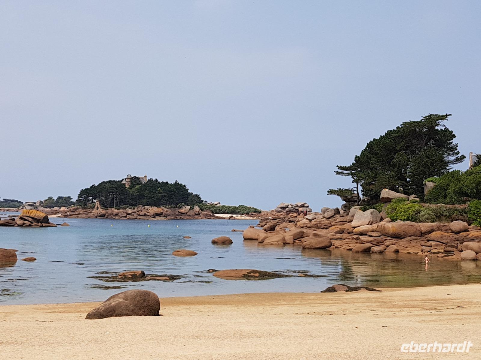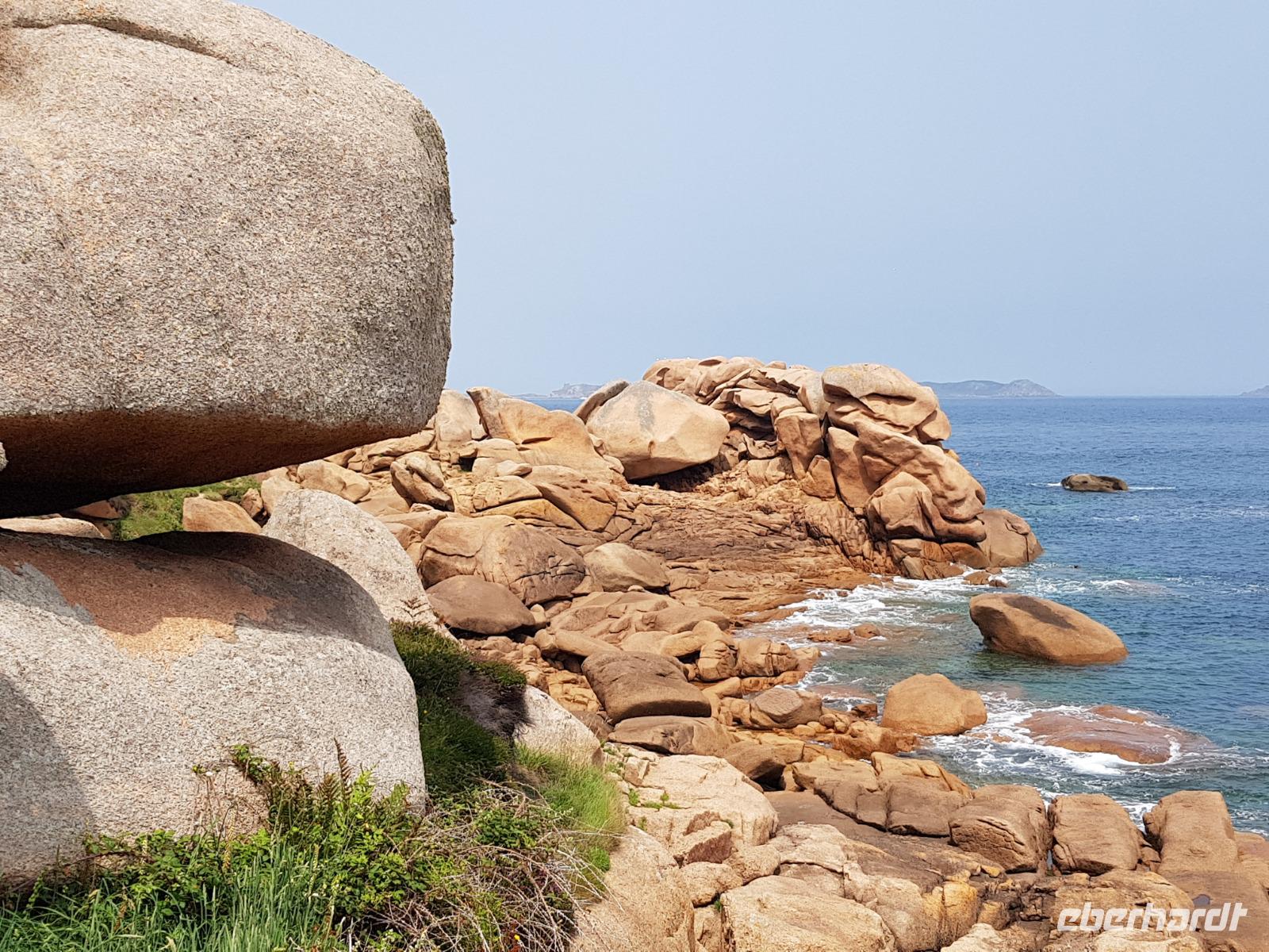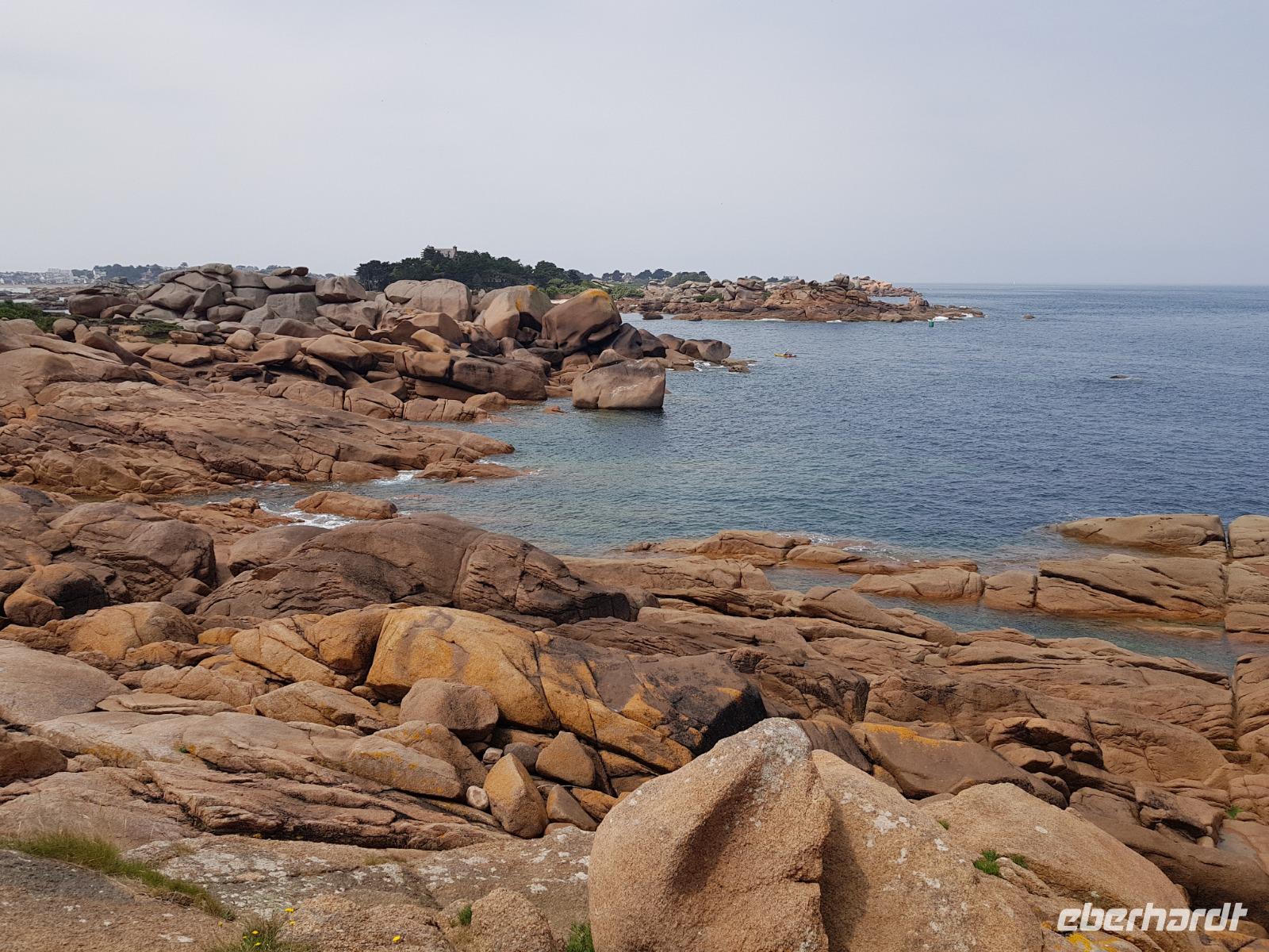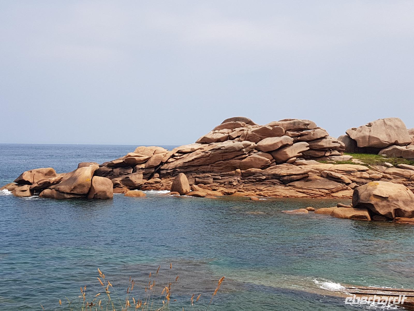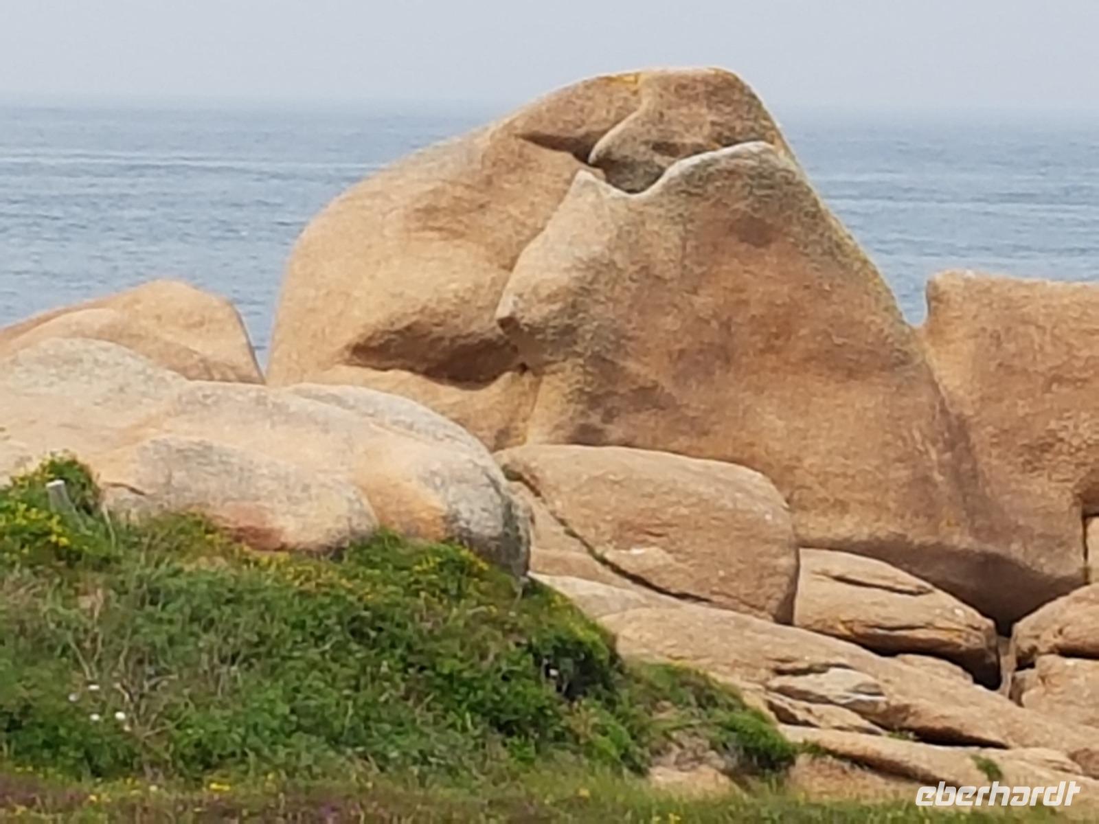 Von dieser Küste ging es dann gleich zur nächsten Küste der Bretagne. Dies sollt nun die Granitküste, die Côte d'Granit Rose, sein. Gegen Mittag kamen wir in Ploumanac'h an. Nach einer Mittagspause am Bus wanderten bei wie schönstem Sommerwetter auf dem alten Zöllnerpfad und waren fasziniert der spektakulären Felsenlandschaft, deren bizarre Formen uns begeisterten.