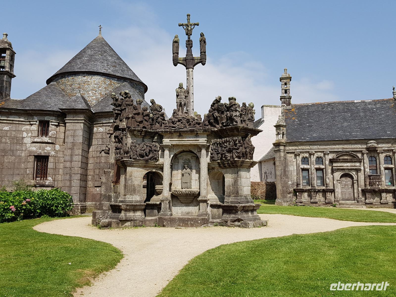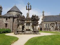 Nach diesen Eindrücken von der Vielgestaltigkeit bretonischer Küsten erreichten wir das Departement Finistère, um dort das Dorf Guimiliau mit einem der berühmtesten Kalvarienberge der Bretagne zu besuchen. Den Eingang zum umfriedeten Kirchhof, auf dem sich der Kalvarienberg befindet, markiert ein hoch auftragendes Triumphtor. Der Kalvarienberg selbst wurde zwischen 1581 und 1588 geschaffenen. Er zeigt unter einem mächtigen Kreuz ca. 200 Figuren in eindrucksvollen Szenen der Passion. Die Kirche stammt ebenfalls aus dem 16. Jahrhundert und ist mit einer reichen Ausstattung wie z.B. einer wunderschönen Taufe versehen. Am frühen Abend erreichten wir unser Hotel Escale Océania in Quimper, in dem wir wieder für zwei Nächte blieben.