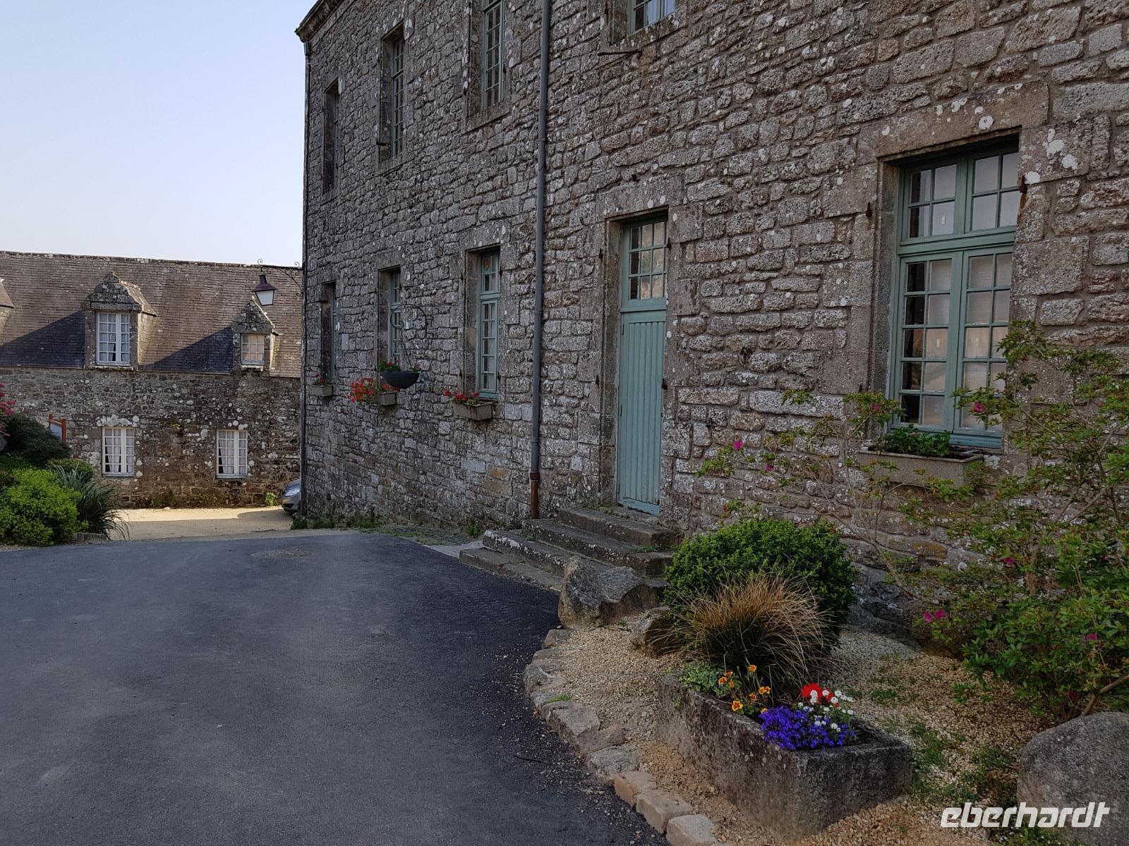 Während unseres Aufenthalts in Locronan wurde gerade eine Bühne vor der Kirche für die Sonntagsmesse aufgebaut. Viele im Dorf verteilte Aufsteller mit Fotos großer Prozessionen wiesen schon auf die „Große Troménie", eine der wichtigsten Wallfahrten der Bretagne, die nur alle sechs Jahre stattfindet, hin. Am Sonntag in 14 Tagen wird es wieder soweit sein.