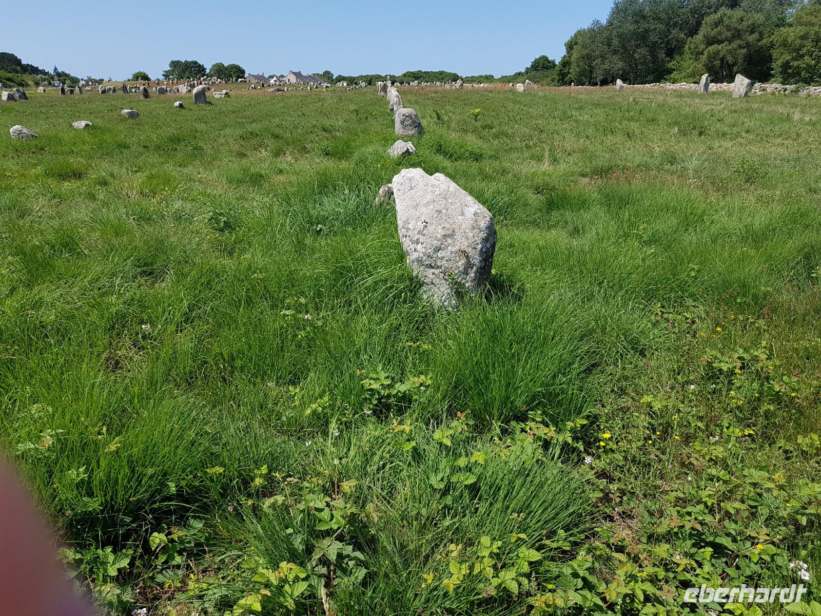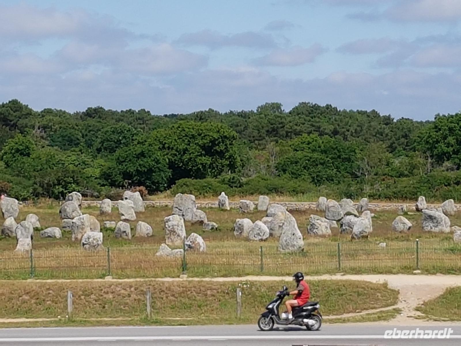 Wenig später erreichten wir das Departement Morbihan, das weltweit berühmt ist für seine, aus der Jungsteinzeit stammenden Megalithanlagen von Carnac. In Le Ménec, ein Dorf bei Carnac, umfassen die zwischen dem 5. und dem 3. Jahrtausend v. Chr. entstandenen Steinreihen 1050 Steine, die sich über eine Länge von 950 m erstrecken. Hier enden die 11 Reihen der bis zu 4 Meter hohen Menhire. Die Deutung der Megalithanlage von Carnac liegt noch immer im Dunkeln. Sicher ist jedoch, dass es sich hier um eine der ältesten bekannten Kultstätten der Menschheit handelt.