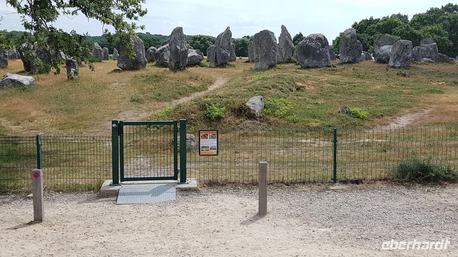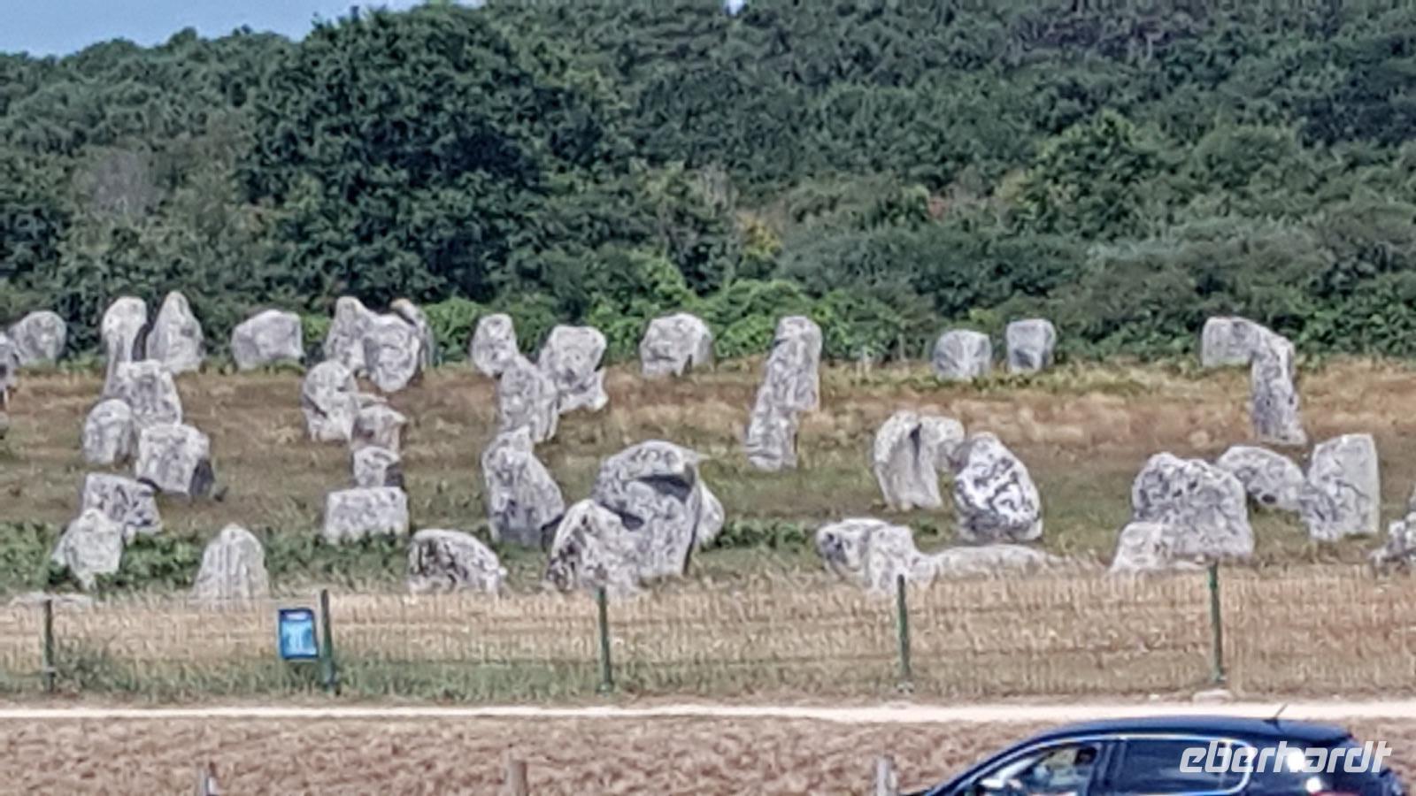 Bald darauf erreichten wir das Departement Morbihan, das weltberühmt ist für seine, aus der Jungsteinzeit stammenden Megalithanlagen von Carnac. In Le Ménec, ein Dorf bei Carnac, umfassen die zwischen dem 5. und dem 3. Jahrtausend v. Chr. entstandenen Steinreihen 1050 Steine, die sich über eine Länge von 950 m erstrecken. Zu Fuß, mit dem Touristenzug oder mit dem Besichtigungsbus erkundeten wir die weiträumigen Anlagen, deren Deutung immer noch im Dunkeln liegt. Offensichtlich ist jedoch, dass es sich hier um die älteste bekannte Kultstätte der Menschheit handelt.