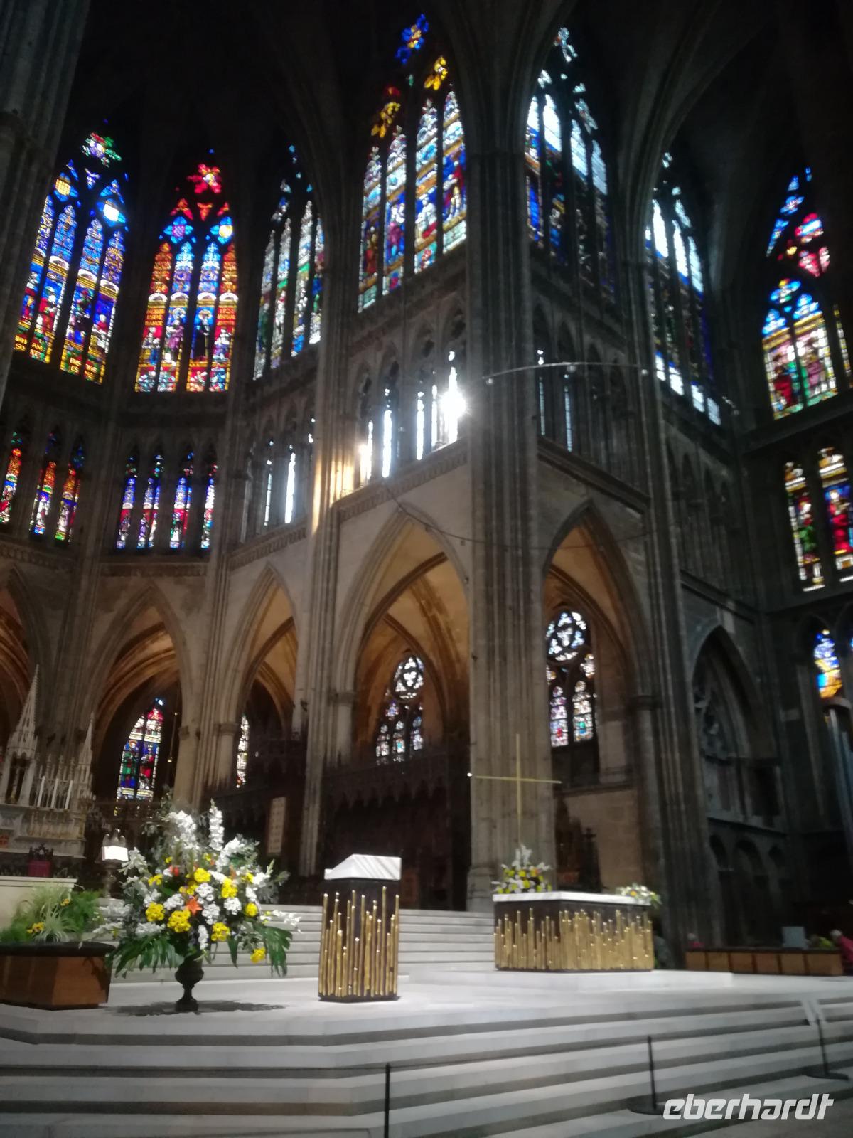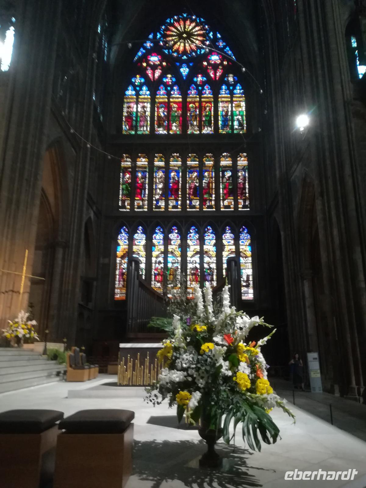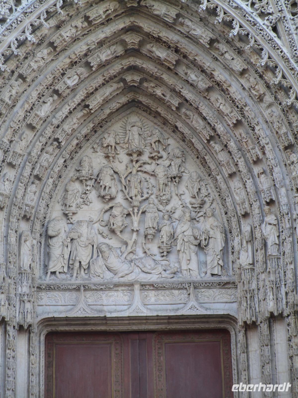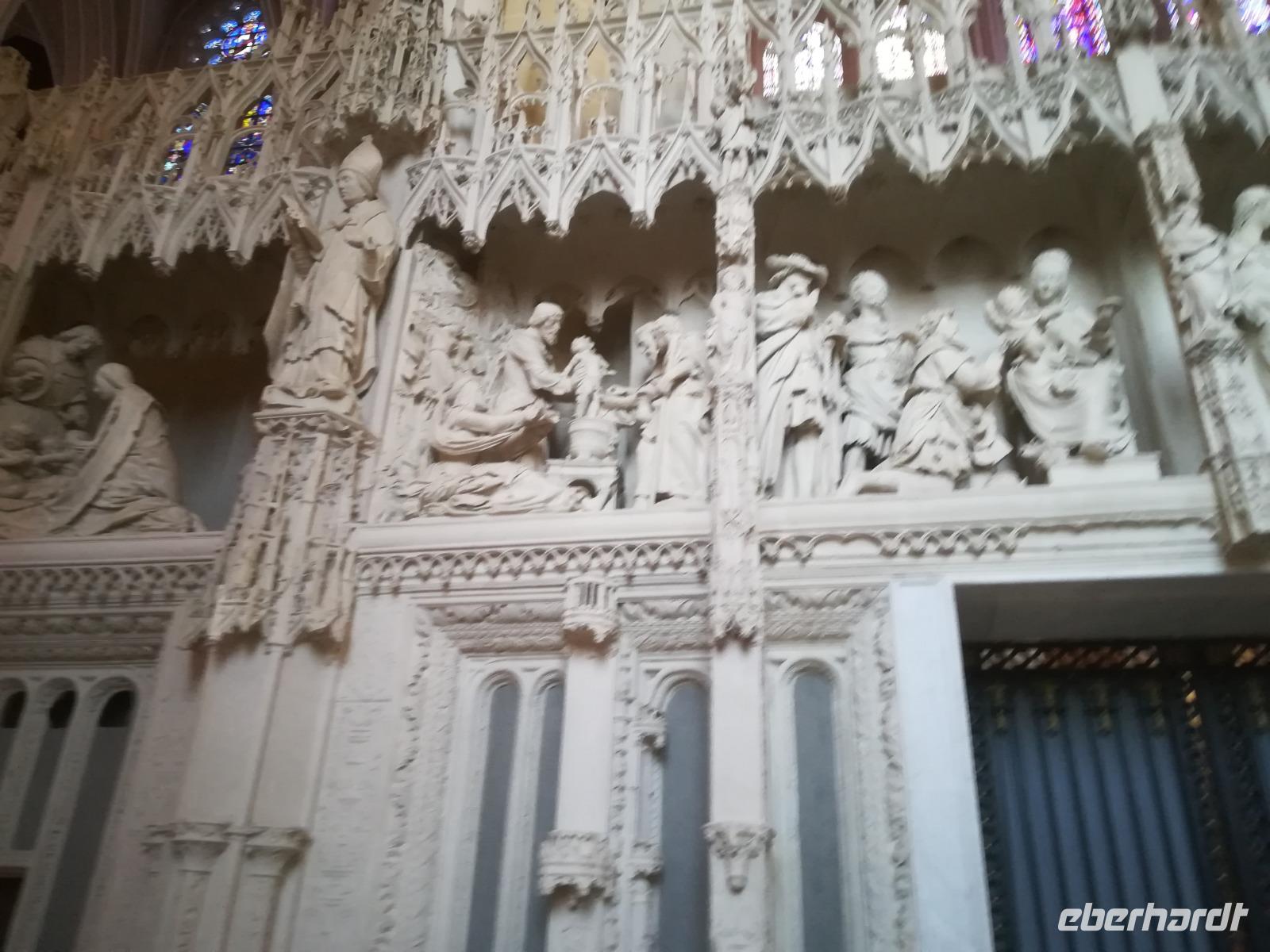 Noch einmal unterbrechen wir die Fahrt in Chartres, um dieser herrlichen Kathedrale einen kurzen Besuch abzustatten. Der Figurenreichtum seiner Portale, die in der Sonne des Spätnachmittags aufleuchtenden Glasmosaiken der Fenster, die beiden große Rosetten in den Querschiffen, das leuchtende Blau der Notre-Dame-de-la-Verrerie, die filigranen Figuren und das Zierrat des Chorumganges, der als Reliquie verehrte Brautschleier, den Maria getragen haben soll, das seltene Labyrinth im Mittelschiff und auch die Ruhe und Kühle dieses großen Raumes - sie werden lange in Erinnerung bleiben.