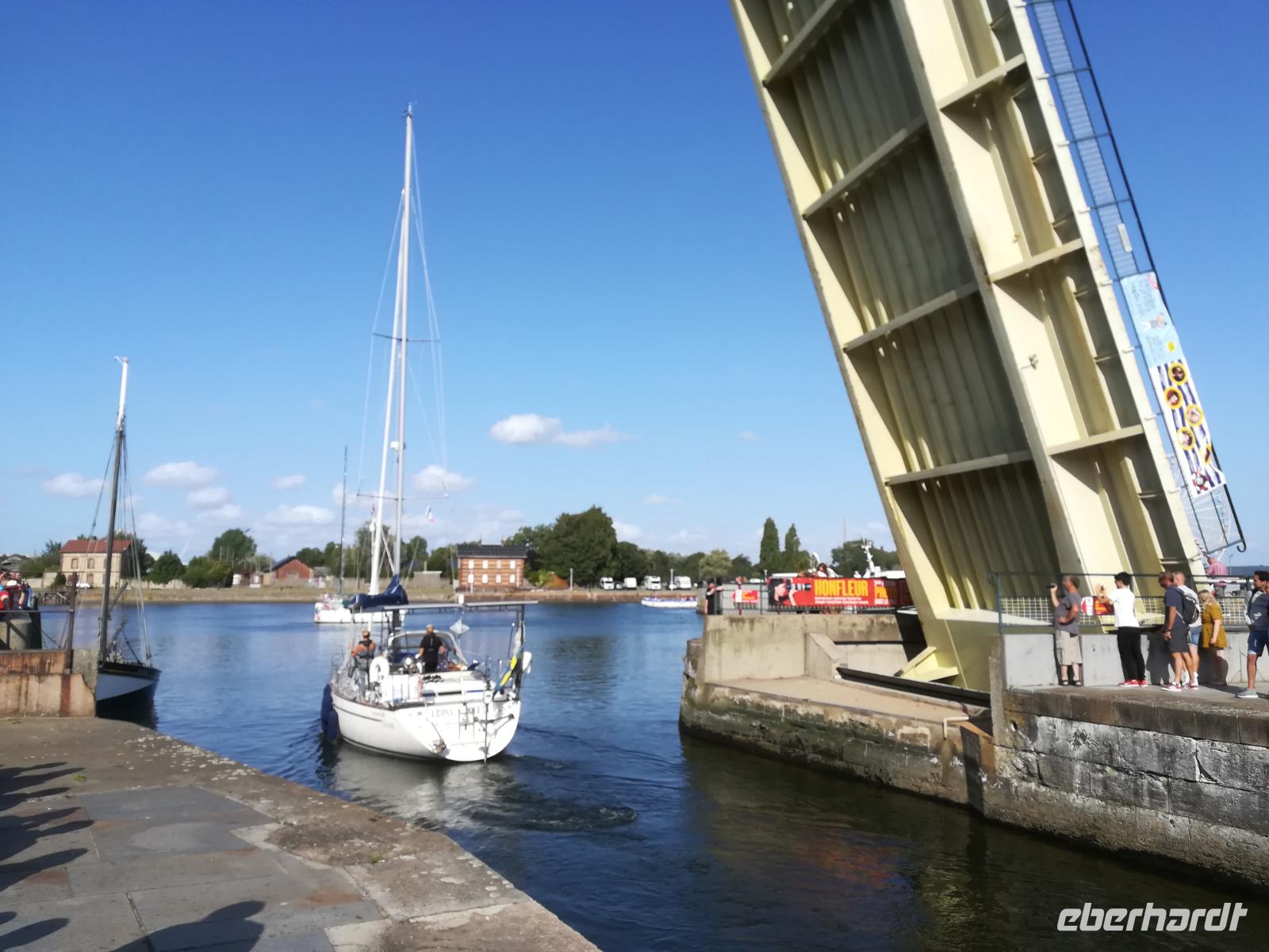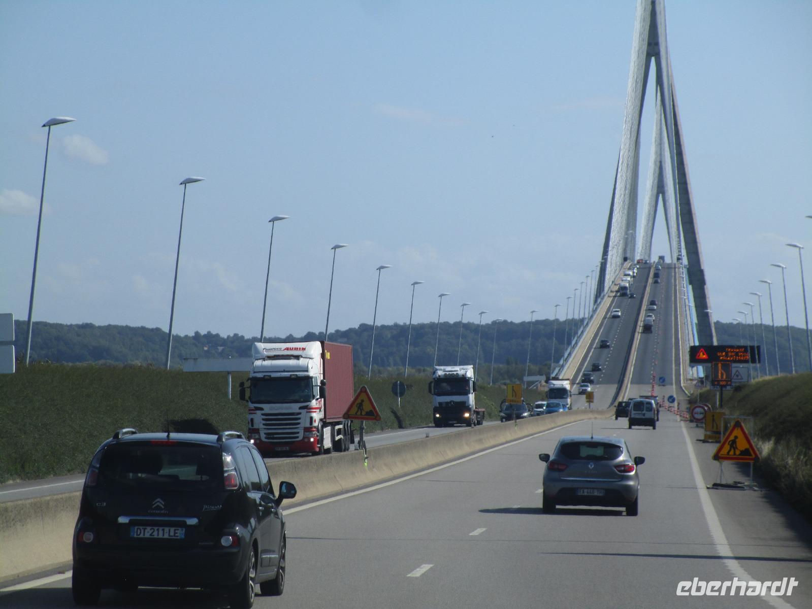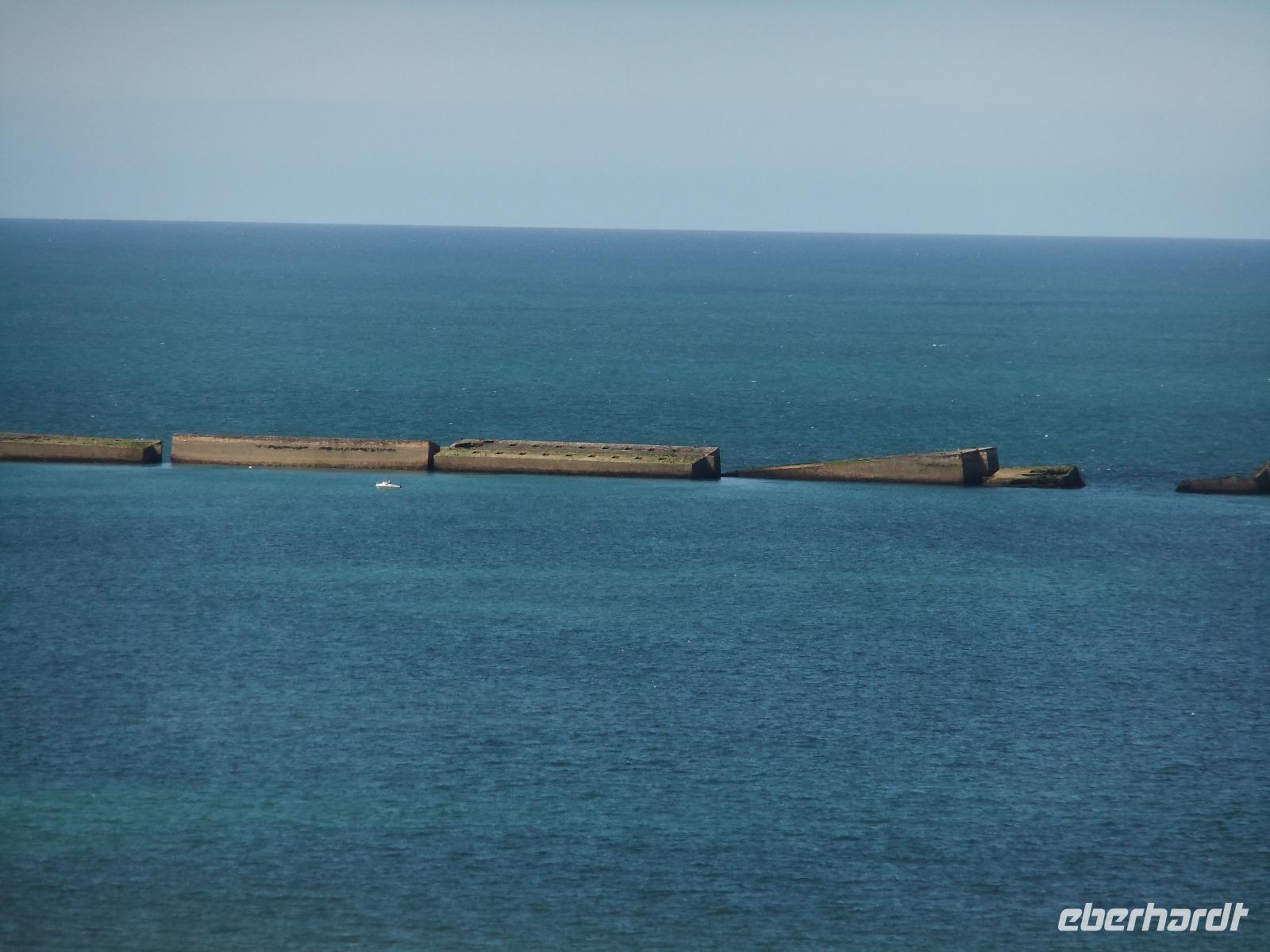 Wir fahren weiter, überqueren die Seine auf dem Pont du Normandie, 1995 zur Einweihung war es die größte Schrägseilbrücke der Welt. Auf dem anderen Ufer liegt eine idyllische kleine Hafenstadt: Honfleur. Hier startete Samuel de Champlain, der Gründer von Quebec/Kanada. Der Ort zog namhafte Maler an, Monet malte hier seine ersten Freiluftbilder, Schriftsteller kamen. Baudelaire sagte. „ Honfleur ist immer der teuerste meiner Träume". Und auch wir konnten uns bei einem Bummel durch das reizende Städtchen am Gewimmel der Menschen am alten Hafen, an Schaufenstern von Kunstgalerien und alten Gebäuden erfreuen. Wir übernachten in einem Vorort von Caen, wenige Kilometer vor der Küste des Ärmelkanals.