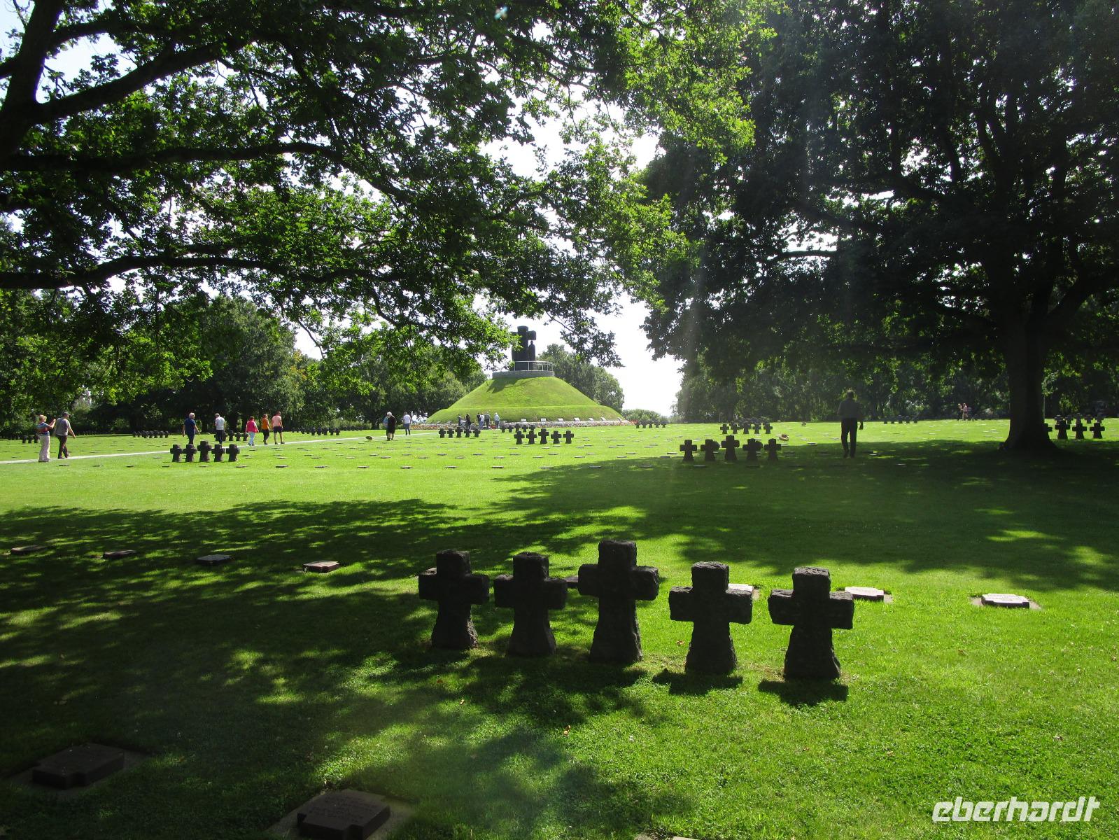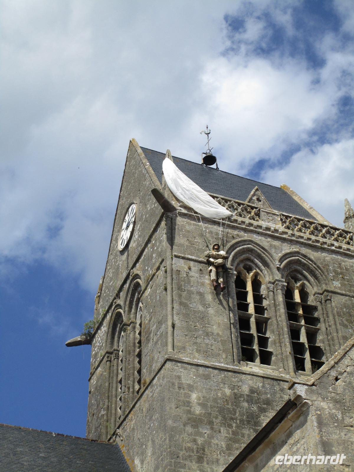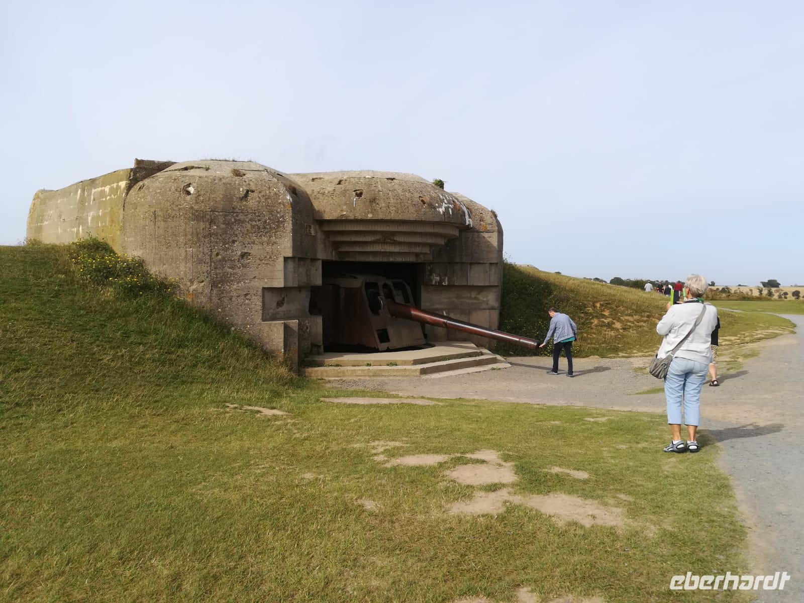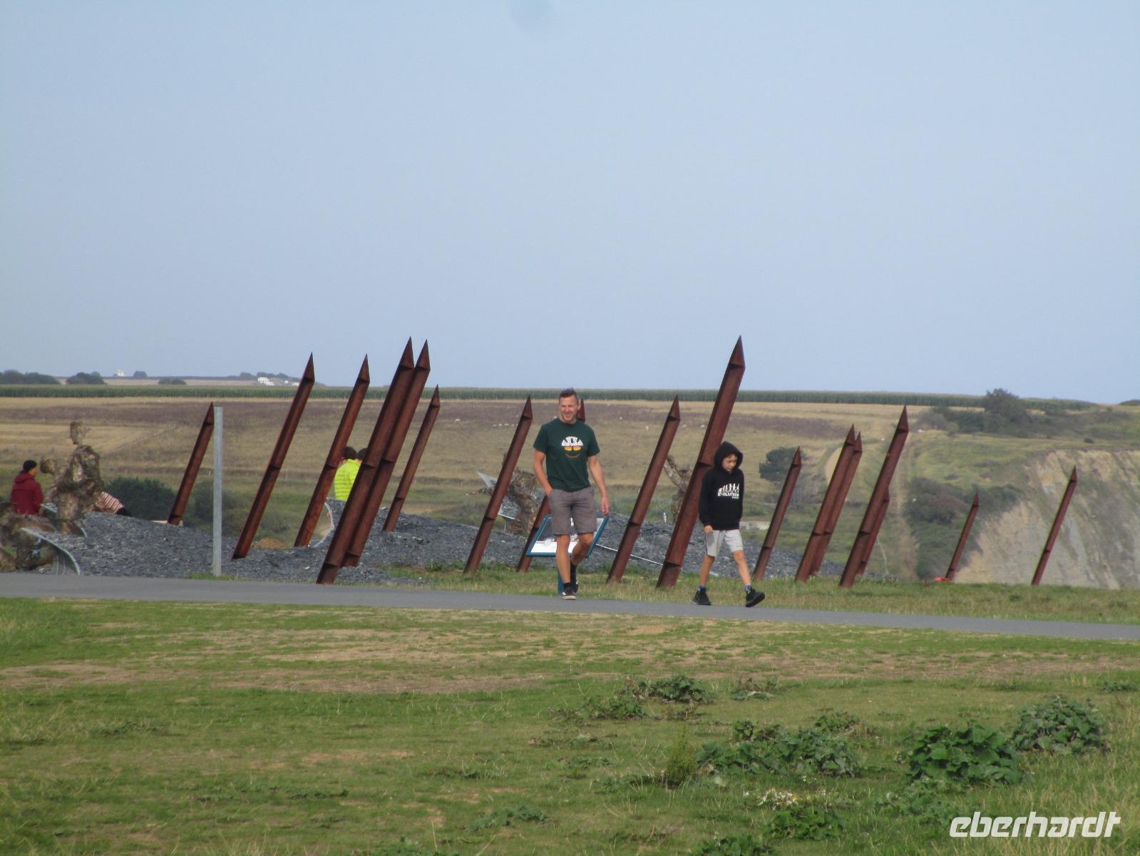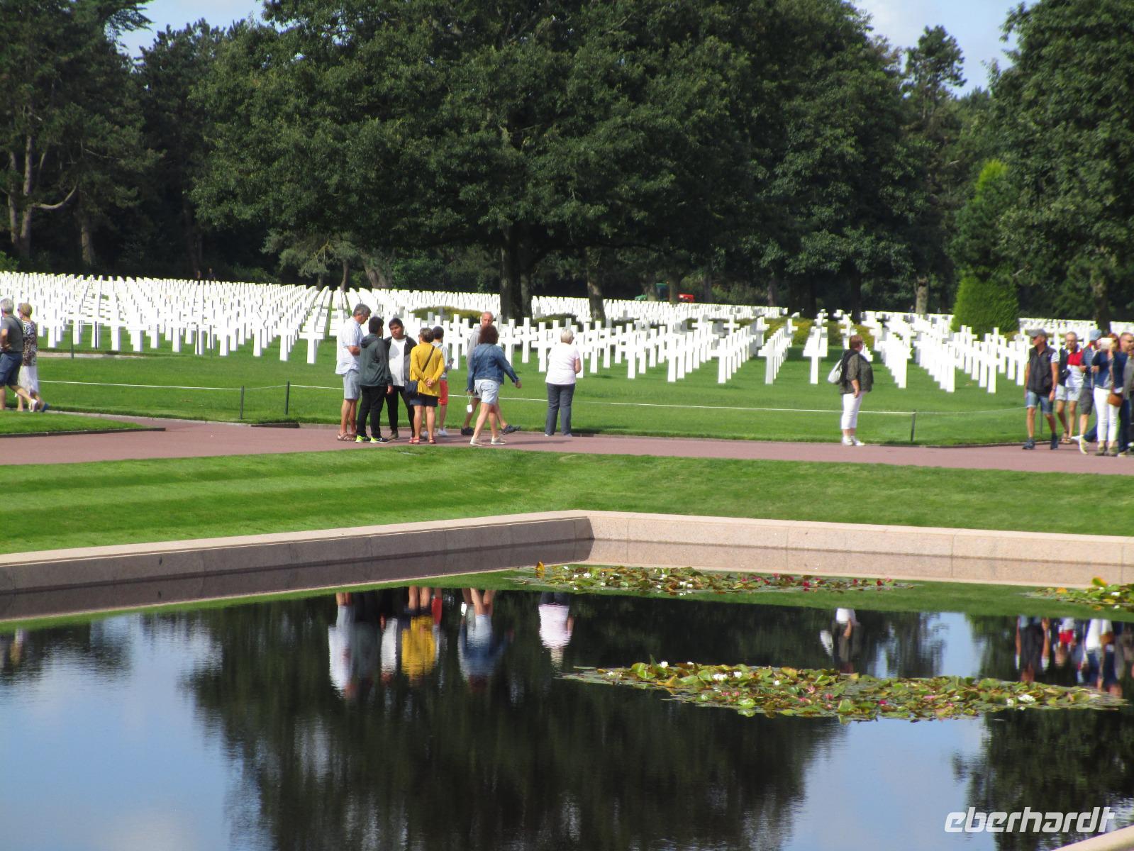 Und nicht vergessen werden soll, das in den Kämpfen auch deutsche Soldaten gefallen sind, darunter neben der Jugend viele ältere Familienväter, die alles andere als diesen Krieg wollten und ebenso wie ihre Kameraden aus den besetzten Ländern Osteuropas gezwungen wurden, hier in einer Phase des Krieges ihr Leben zu lassen, dessen Anfang vom Ende schon vorher eingeleitet war. Dieser Tag galt nicht vordergründig der Waffentechnik, den erfolgreichen und erfolglosen Feldherren, den Ursachen von Sieg und Niederlage, dem präzisen Verlauf des D-Days sondern vor allem auch dem Gedenken an diese Menschen auf beiden Seiten. Wir sahen die wichtige Pegasusbrücke, die britische Fallschirmjäger eroberten und damit den Rückzug deutscher Truppen abschnitten. Wir sahen einen klotzigen Hochbunker und ein Landungsboot in Oistrehem, die Reste des künstlichen Hafens in Arromanches, die zerschossenen Küstenbatterie von Longues, den „blutigen" Omahastrand, die von Trichtern übersäte Landschaft der Pointe du Hoc und die Kirche in Ste.-Mère-l'Eglise, an deren Turm sich der Fallschirm eines amerikanisches Soldaten verfing. Wir sahen, wie die Amerikaner in einer großen, prächtigen Anlage ihre Opfer des D-Days ehrten und den deutschen Soldatenfriedhof in La Cambe mit seinen schlichten Gedenksteinen und seinen bedrückenden Gruppen verwitterter dunkler Steinkreuze auf dem gepflegten Rasen.
