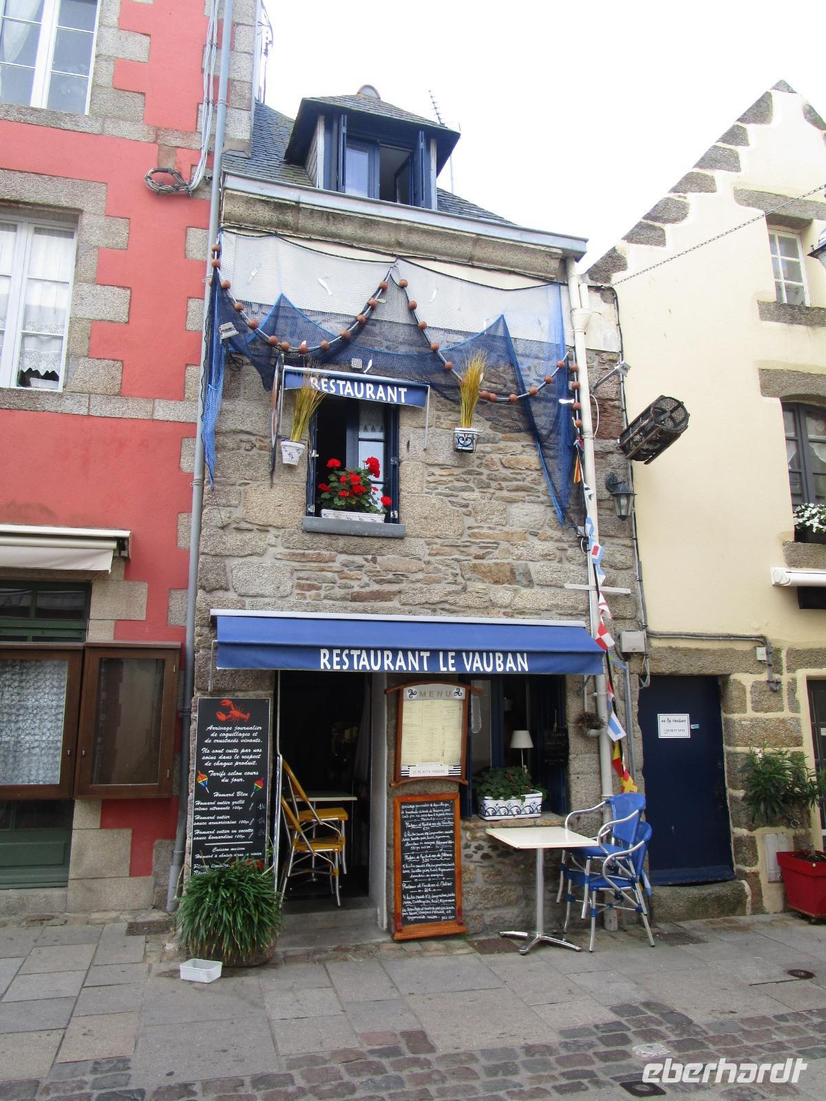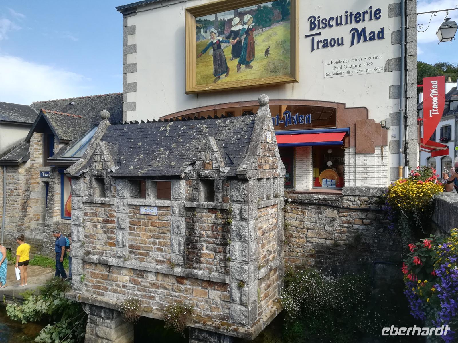 Noch so eine Stadt am Meer: Concarneau, von die Altstadt Mauern umschlossen wie St.-Malo. Es ist einer der größten Fischereihäfen Frankreichs, früher vor allem für Sardinen, und Europas größter Anlande- und Verarbeitungsplatz für Tunfisch. Und wer es süßer mag: die Geschäfte locken mit Naschwerk aller Art.Das größte zeigt preisgekrönte Kunstwerke aus Schokolade und Zuckerwerk. Kleine Restaurants zeigen, dass man hier auch wegen einer Fischsuppe, der Cortriade oder anderen bretonischen Spezialitäten herkommt.