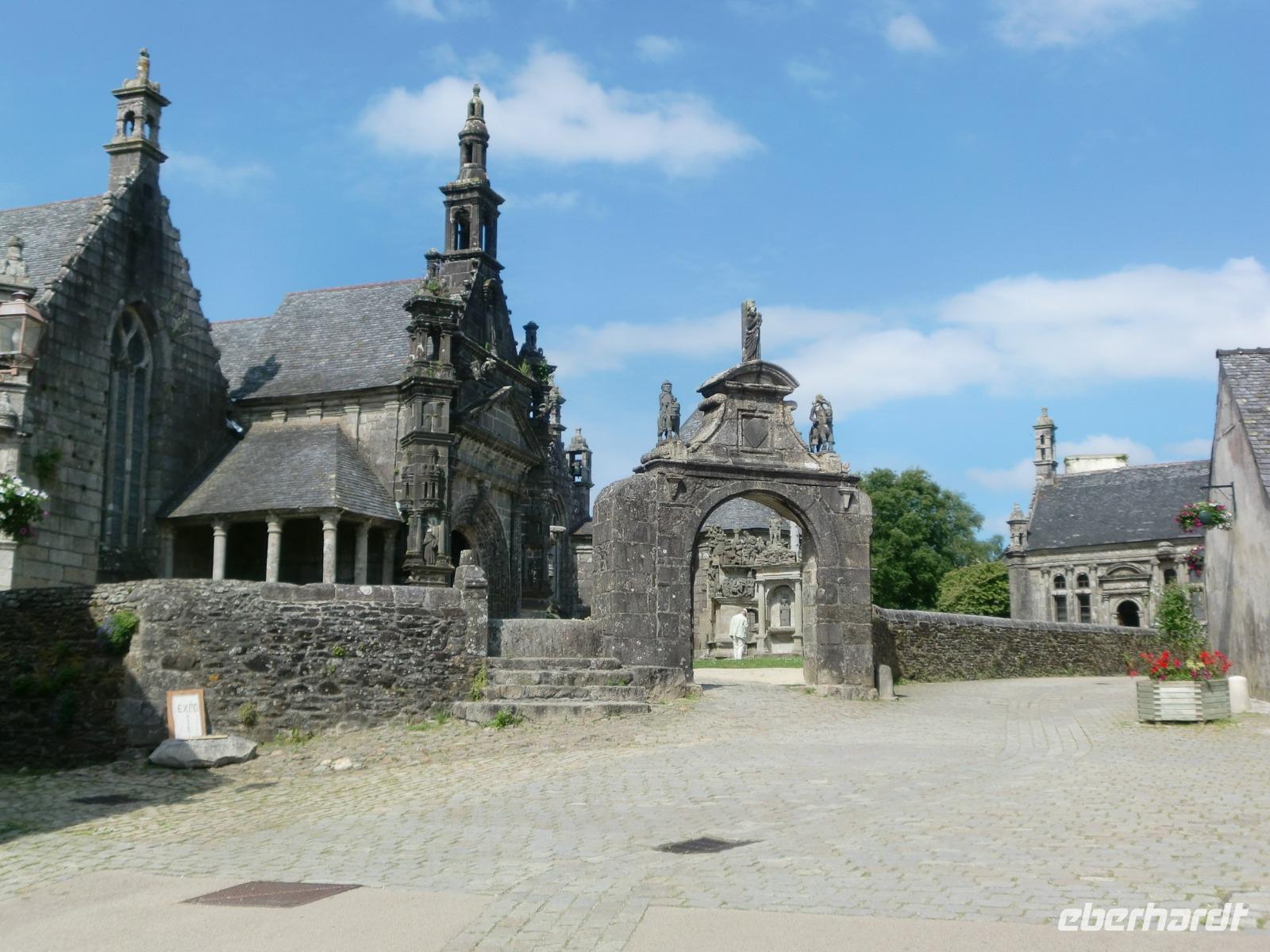 Doch nun geht es in Landesinnere der großen bretonischen Halbinsel. Eine Besonderheit bilden die umfriedeten Pfarrbezirke, ein Ensemble von Kirche, Friedhof, Beinhaus und Kalvarienberg, umgeben von einer Mauer mit einer Triumphpforte. Das Christentum, meist von Missionaren aus anderen keltischen Gebieten (Cornwall, Wales Irland, Schottland) hierhergebracht, ist im Volk tief verwurzelt. Es hat auch Vorstellungen aus heidnischer Zeit