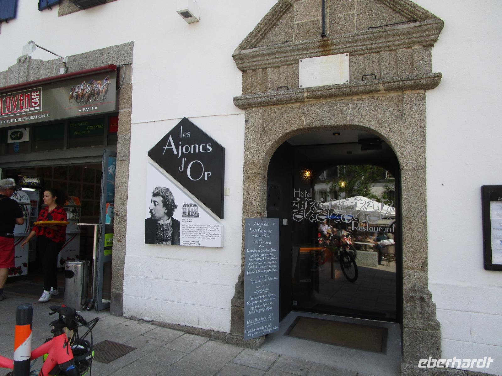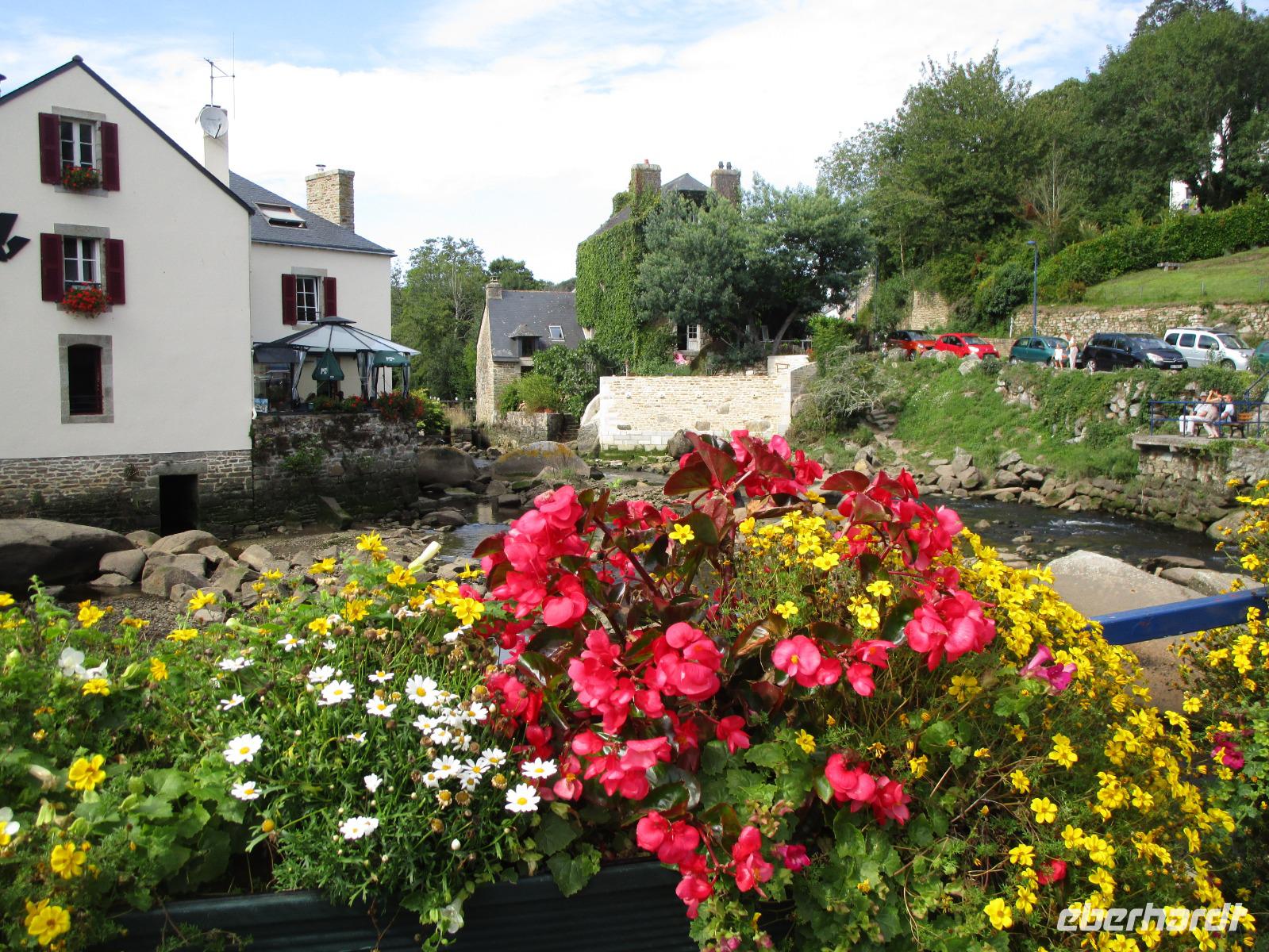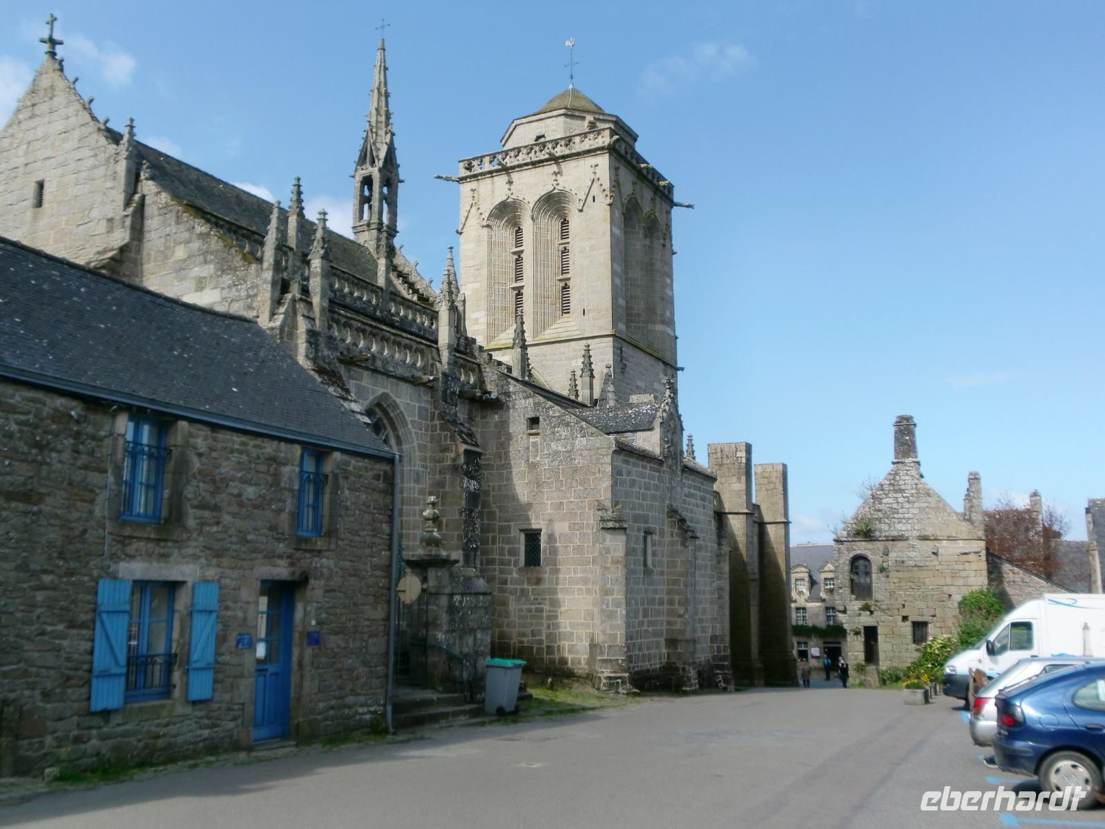 Für einige Gäste Gibt es die Möglichkeit, einmal etwas auszuruhen und eigene Wege zu gehen. Die meisten nahmen jedoch am fakultativen Ausflug teil. Er führte zuerst nach Locronon, einem der 20 „Petite Cité de Caractère" (kleinem Ort mit Charakter) und damit einem der meistbesuchten Orte der Bretagne. Der Ort mit seinen festen Granithäuser zeugt von dem früheren Reichtum des Ortes, erst war es das Gold, dann die Herstellung von Segeltuch. Heute ist es der Tourismus und die Bedeutung des Ortes als Kulisse einer Reihe von Filmen. Auch Locronon hat seinen berühmten Heiligen, den Ronan. Von seinen Taten berichten bunte Bilder an der Kanzel der Prioriatskirche und in der Büßerkapelle daneben