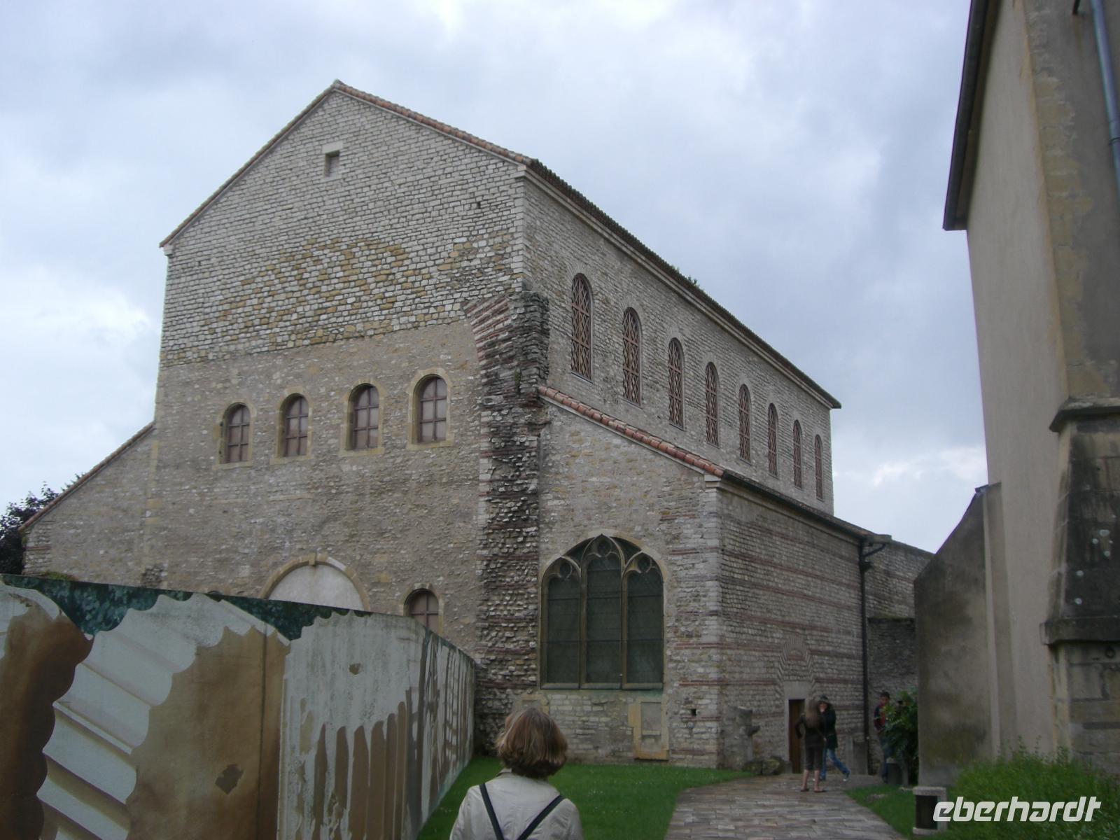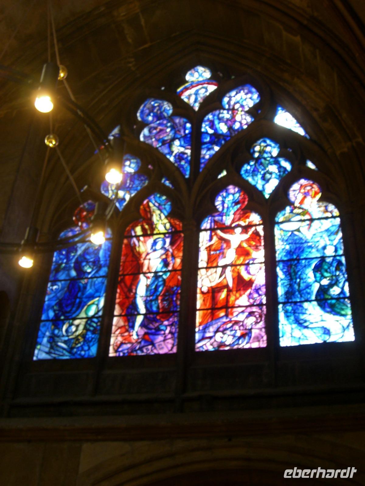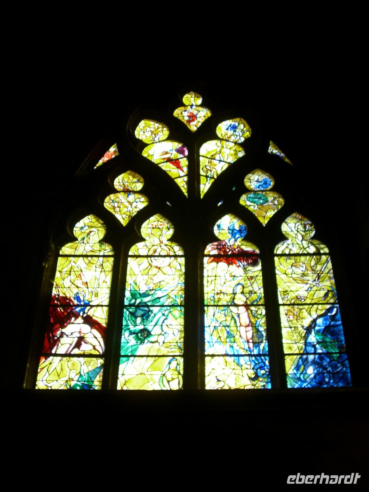 Die über 2000 Jahre alte Stadt Metz erreichen wir am Nachmittag und haben noch Zeit, einen gemeinsamen Stadtrundgang zu unternehmen. Kelten, Römer und Franken haben die Stadt bewohnt, dann wechselte sie zwischen und Deutschland und Frankreich. Erst Teil des Heiligen Römischen Reiches Deutscher Nation, dann durch Moritz von Sachsen an Frankreich verkauft, 1648 endgültig französisch, 1870-1918 im Reichsland Elsass- Lothringen, wieder französisch und 1940-44 wieder unter deutscher Besetzung. Man sieht das im Stadtbild: die gallorömische Kirche St.-Pierre-aux-Nonnais, älteste Frankreichs, 3 Frauenköpfe in einer Mauer aus römischer Zeit, aus der deutschen Zeit die Porte des Allemands, der Place St.-Louis mit der Laubengasse und natürlich die Kathedrale. Mit ihr erreicht die Gotik ihren Höhenpunkt. Riesige Fensterflächen (5.600 m²) machen sie zu einer „Laterne Gottes". Mit 41 m erreicht das Gewölbe nie vorher erreichte Höhen. Die beiden Fenster von Marc Chagall werden bewundert. Französische Architektur an der Mosel, am Arsenal und dann wieder das am besten erhaltene Gründerzeitviertel der Wilhelminischen Ära und der trutzige Bahnhof.