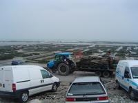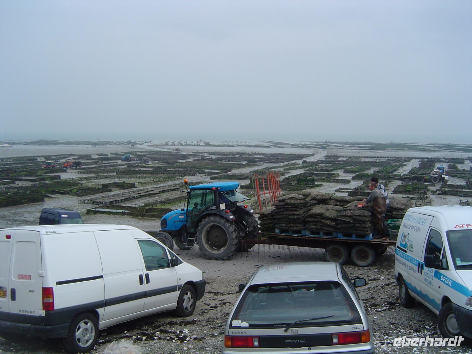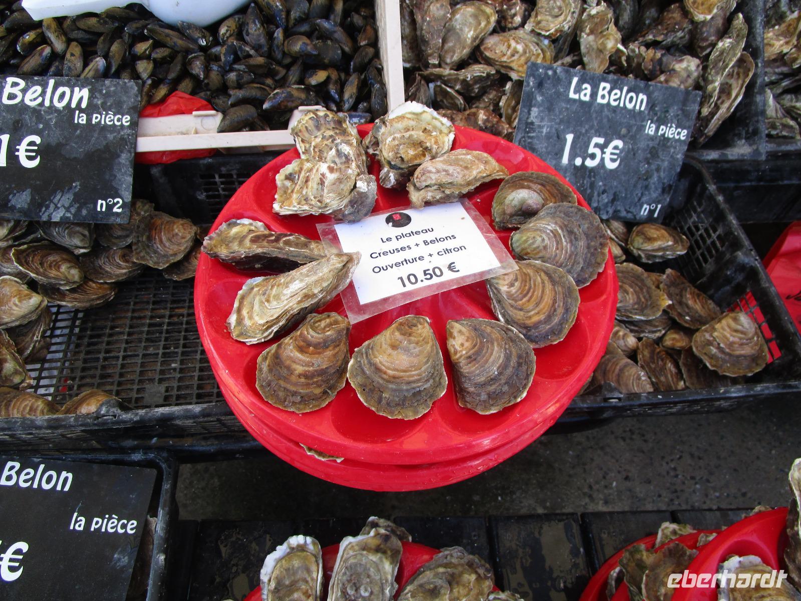 Man kann ja lange über die Entstehung von Ebbe und Flut sprechen aber man muss ihre Wirkung einfach gesehen haben. Gerade hier am Kanal sind sie besonders auffällig. Der Tidenhub kann bis zu 13...14 m betragen. In St.-Malo haben wir es schon erlebt und hier in Cancale ist es wie in einem langsam ablaufenden Film. Boote liegen noch im Trockenen, wir sitzen auf den Steinstufen am Meer, sehen wier allmählich die Austernzuchtbecken und Austernbänke aus dem Meer auftauchen. Dazu kosten wir Austern, das Muskelfleisch der flachen, glatten Belons und das der größeren Creuses ,it den bizarren schalen, einen passenden Weißwein. Für manche ist es das erste Mal. So schmeckt Meer.