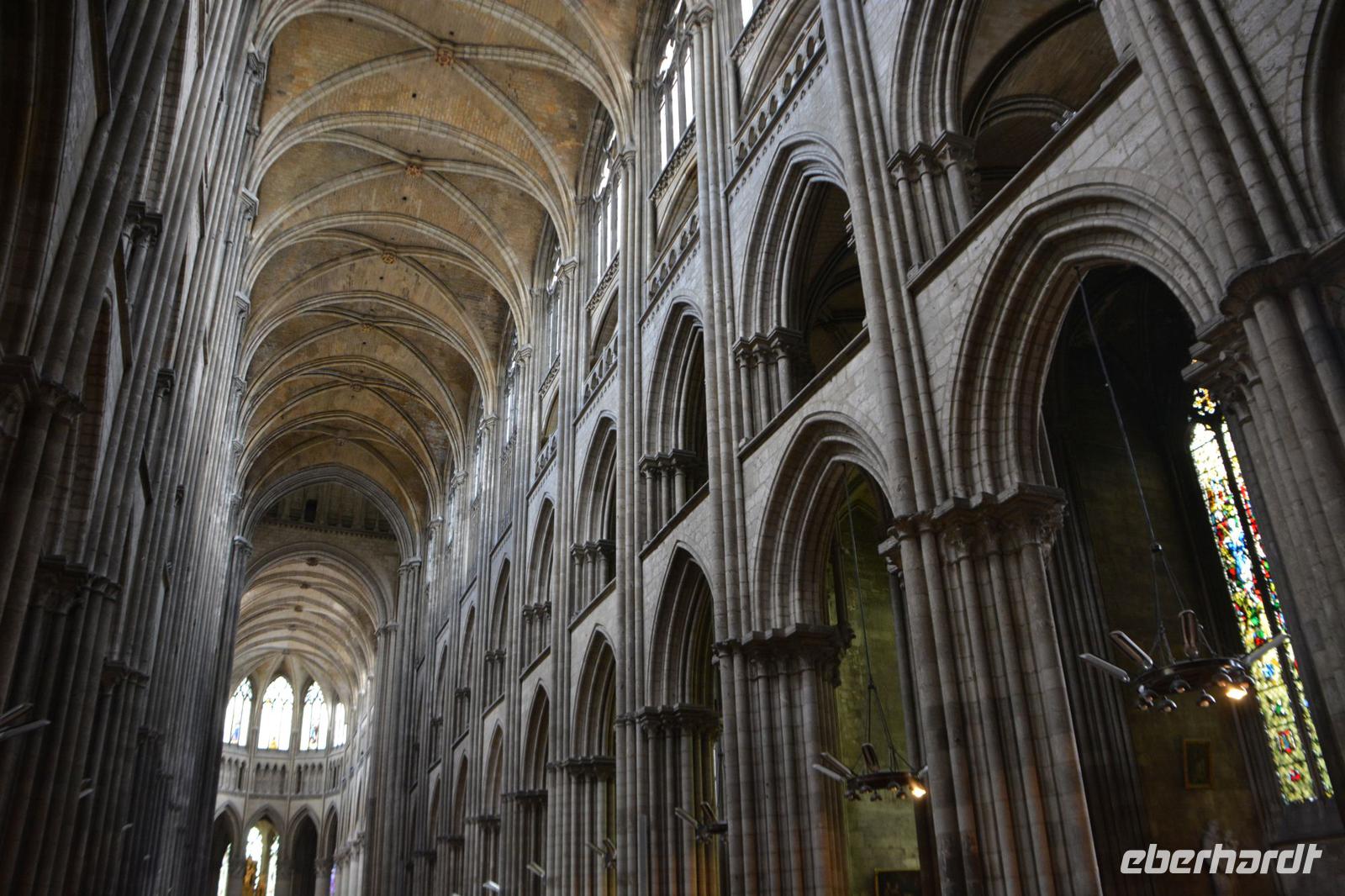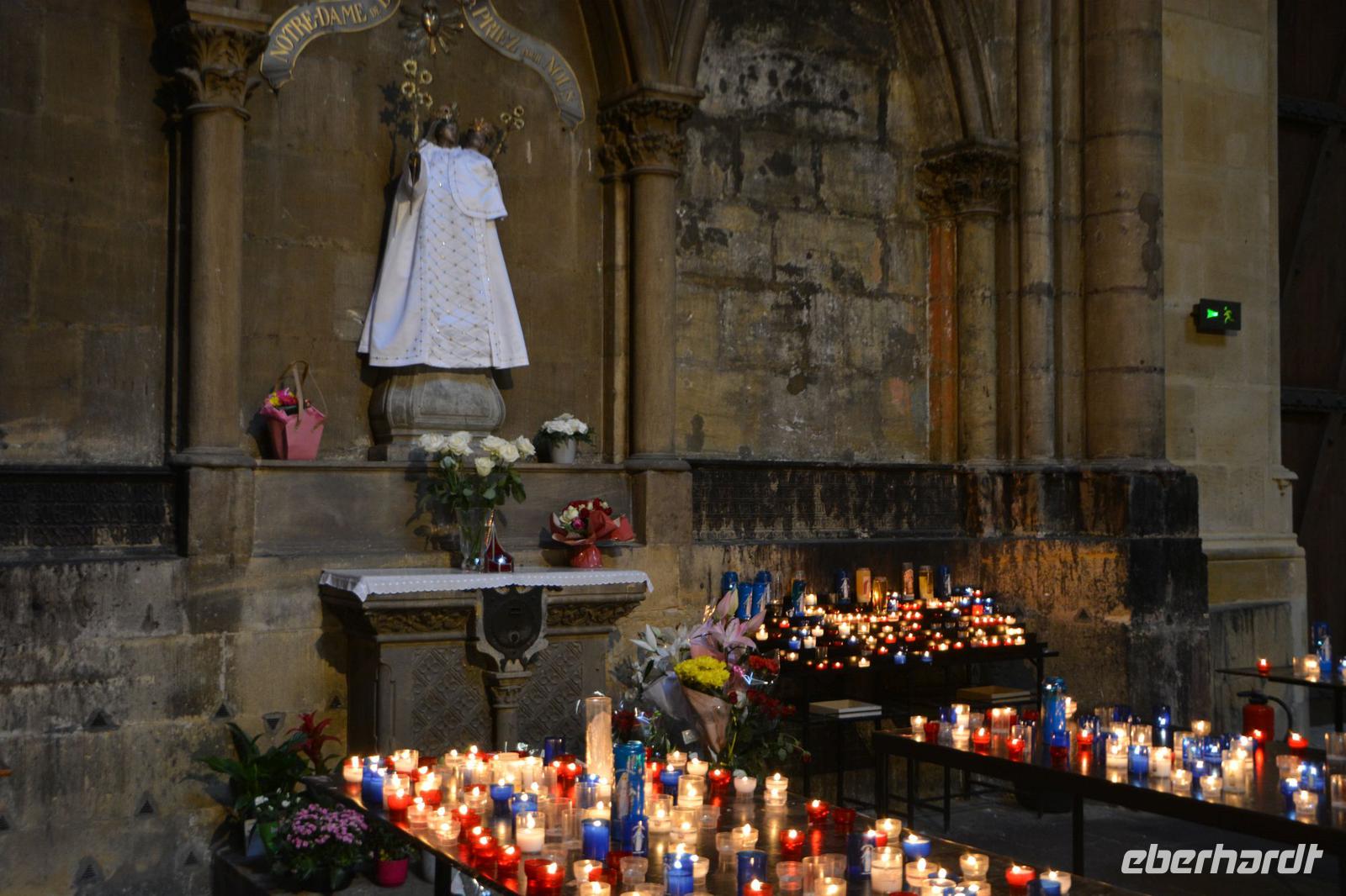 Heute geht es nach dem Frühstück in einen für alle Europäer bedeutenden Abschnitt der Geschichte: wir besichtigen die Schlachtfelder von Verdun, den Schauplatz einer der grausamsten Schlachten des 1. Weltkriegs. Wir treffen in Verdun unsere lokale Reiseleiterin, die mit uns eine Rundfahrt in der Region unternimmt. Wir fahren zu dem Bunker von Douaumontin dem heute ein Museum untergebracht ist. Unheimlich ist es in den unterirdischen Gängen wo einst die Soldaten fast wie in einem Grab ausharren mussten. Fast irreal ist der Spaziergang über die Dächer der Anlage, die fast lieblich erscheinen würde, wenn nicht die Gewehrsalven von einem naheliegenden Schießstand zu uns dringen würden. Makaber - angesichts dieser Gedenkstätte. Anschließend geht es zu dem berühmten Beinhaus in dem die Reste der nicht identifizierten Toten beerdigt sind. Auch heute noch findet man in der Region menschliche Überreste und Blindgänger. Der Friedhof mit seinen unzähligen Kreuzen und auch Gedenksteinen für die Muslime die dort gefallen sind bietet einen ästhetischen Hintergrund mit grausamen Inhalten. Es waren hauptsächlich junge Soldaten die ihr Leben in Verdun verloren. Es gibt auf dem Gelände auch zerstörte Dörfer und ehemalige Schützengräben mit Versorgungstunneln. Vom ausgezeichneten Weg abzugehen wird nicht empfohlen. In unserer Gruppe entstehen verschiedene Diskussionen, geht es doch um unsere Großväter und Urgroßväter von denen viele in den beiden Weltkriegen ihr Leben verloren. Mit ein wenig gedämpfter Stimmung nähern wir uns am Nachmittag dem schönen Städtchen Rouen. Unser Hotel liegt ein wenig abseits und so können wir in Ruhe diesen etwas nachdenklichen Tag ausklingen lassen. Wir werden mit einem sehr guten Essen verwöhnt und sind gespannt auf morgen und unsere Stadtbesichtigung von Rouen.