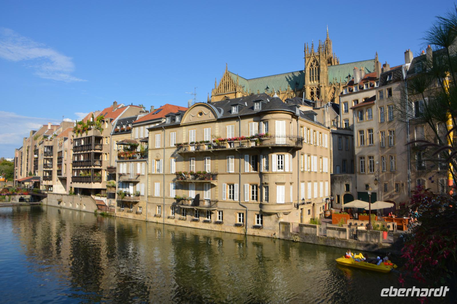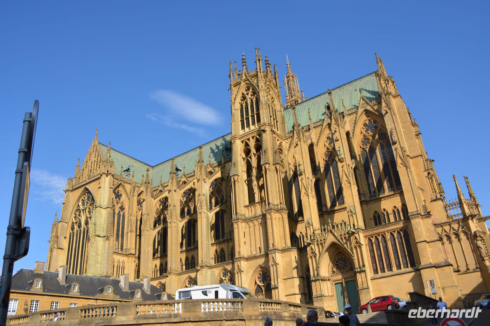 Trotz widriger Umstände aufgrund der Corona-Epidemie treffen sich 20 Teilnehmer zu dieser schönen Reise durch eine ursprüngliche und bodenständige Region Frankreichs. Im Norden des Landes zeigen Normannen und Bretonen ihre Natur und was das Land an Kultur zu bieten hat. Langsam sammelt sich die Gruppe, deren Teilnehmer aus verschiedenen Teilen Deutschlands stammen, um die Normandie und die Bretagne kennenzulernen. Der letzte Reiseteilnehmer trifft kurz vor Grenzübertritt bei Saarbrücken zu uns und wir erreichen schnell unser erstes Quartier in Metz, eine Stadt deren Bewohner von französischen und deutschen Einflüssen geprägt wurden und unter den Grenzkonflikten zwischen beiden Staaten zu leiden hatten. Wir beziehen unser Hotel welches am Rande der Innenstadt liegt und machen uns dann gleich auf den Weg in das historische Zentrum. Metz war der Stammsitz der Karolinger und freie Reichsstadt die sich aus einer Siedlung der Kelten entwickelt hatte und birgt deshalb ein reiches Erbe.Wir gehen durch schön restaurierte Straßen in Richtung Kathedrale. Da Sonntag ist, bleibt es in der Stadt verhältnismäßig ruhig und an unserer ersten Station, dem Place St.Louis, können wir die schönen alten Fachwerkhäuser bewundern. Hier wurde im Mittelalter Geld gewechselt und es wurden Geschäfte getätigt, die den Händlern Reichtum bescherten. Metz hatte im Mittelalter und der beginnenden Neuzeit intensive Handelskontakte nach Italien. Wir schlendern weiter und nach kurzer Zeit erreichen wir die Kathedrale St.Etienne. Wir betreten diese lichtdurchflutete Kathedrale mit 41 Metern Gewölbehöhe und wunderbaren Glasfenstern, die auch als "Laterne des lieben Gottes" bezeichnet wird. Anschließend bummeln wir bei warmem und sonnenscheinreichem Wetter bis auf die andere Seite des Moselarmes zum Opernplatz. Wir können von Weitem den Temple Neuf, die protestantische Kirche von Metz, sehen. Dann geht jeder nach seinem Interesse des Weges, locken doch die zahlreichen Lokalitäten, die trotz "Corona" geöffnet haben. Später beschließen wir bei einem guten Abendessen im Hotel den heutigen langen Tag.