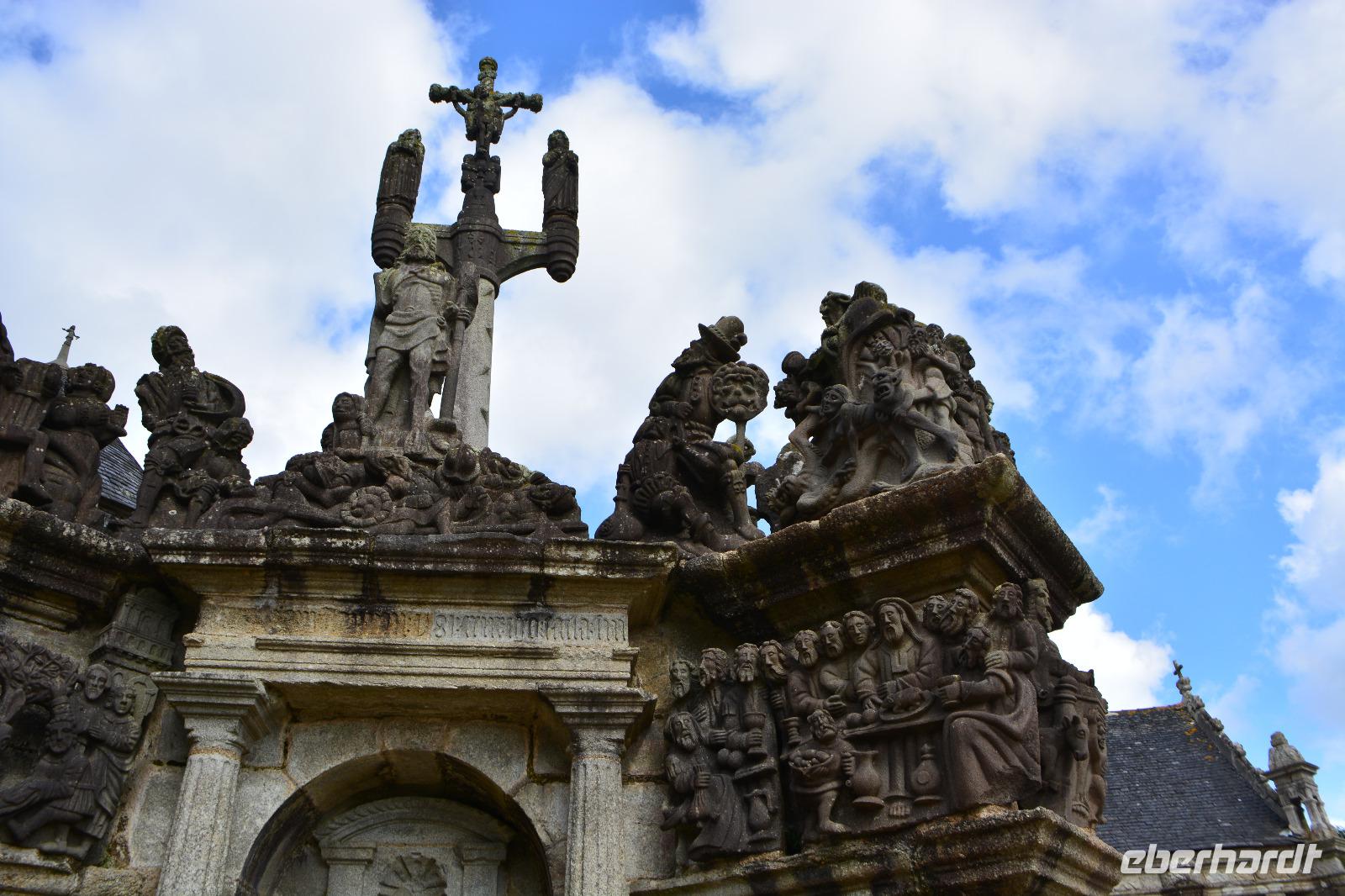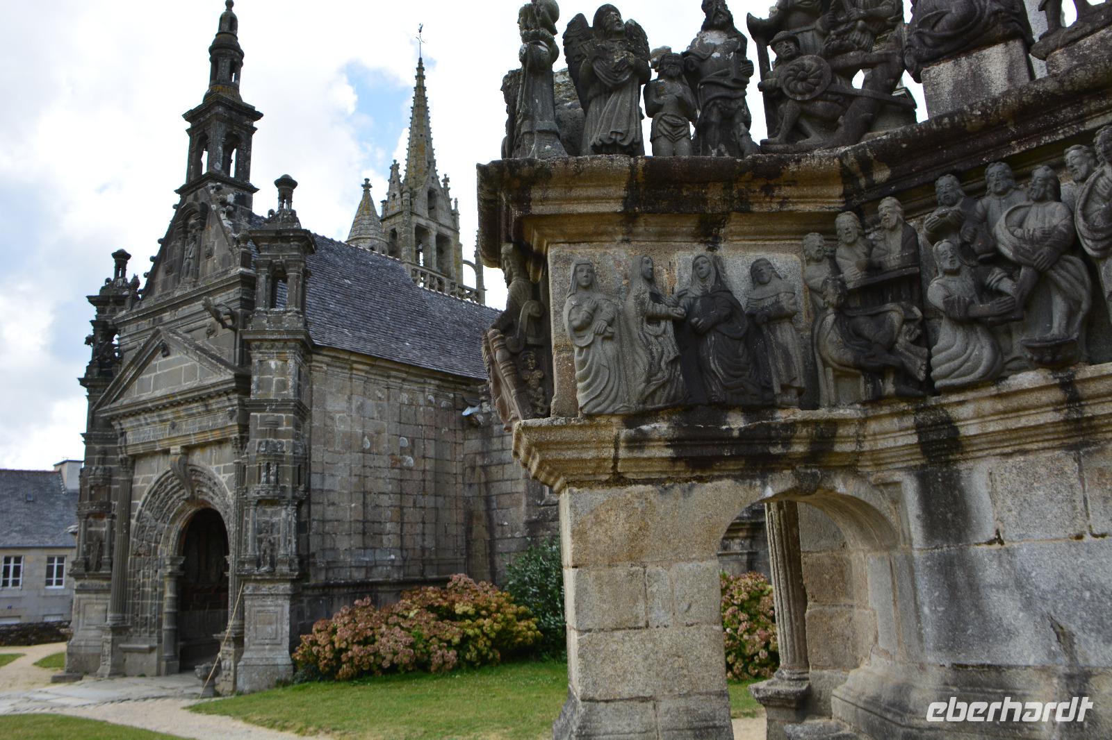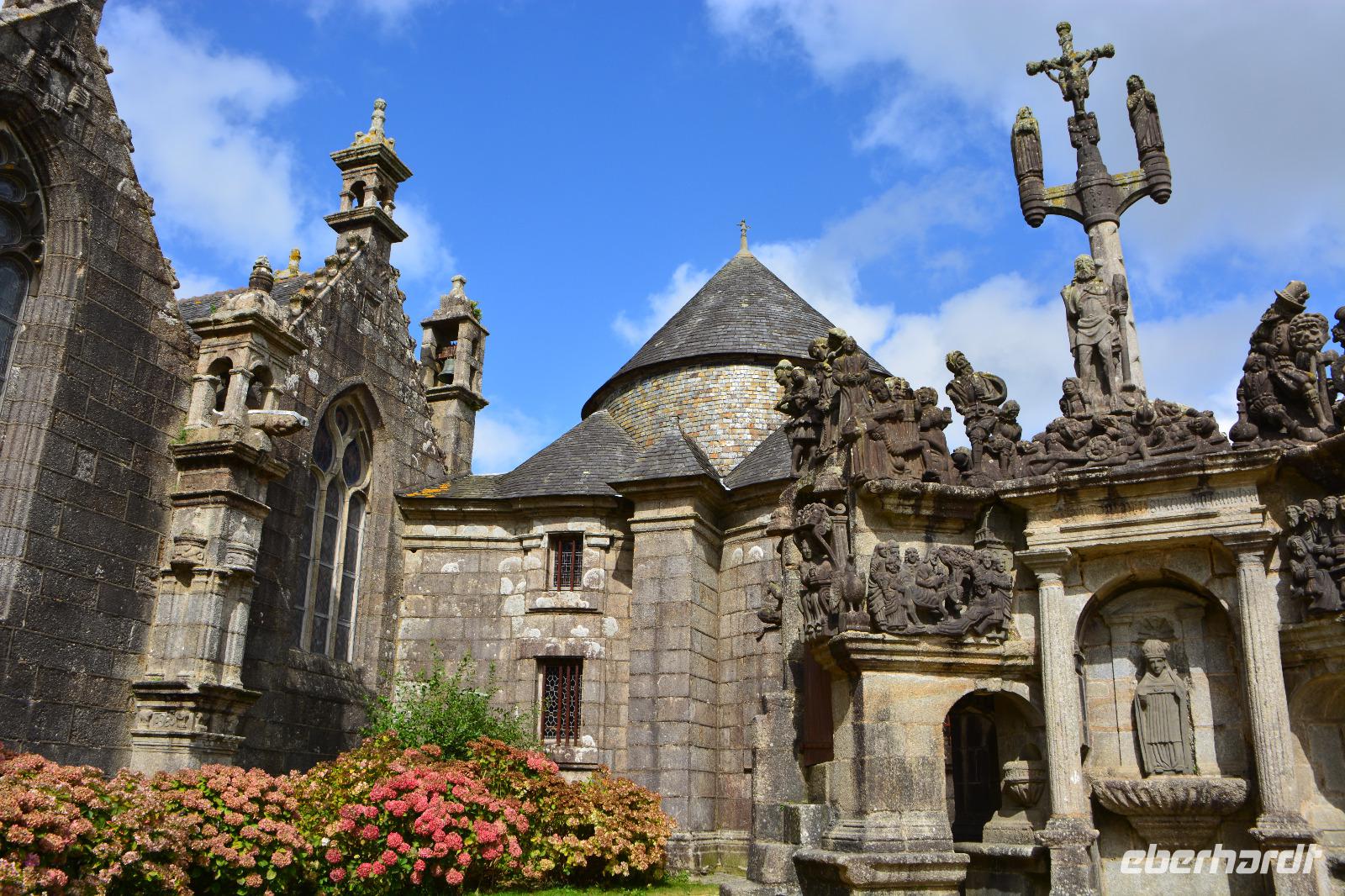 Am Cap Fréhel geniessen wir den Blick in die Weiten des Atlantiks. Gegen kleines Geld kann man den neuen Leuchtturm besteigen. Hier revolutionierte der französische Physiker Fresnet die Signaltechnik. Wenig entfernt blickt man zum alten Leuchtturm der vom Baumeiser Ludwigs XIV. Vauban mit dazugekauften Steinen errichtet wurde. Eine filmreife Szenerie die auch für Filme genutzt wurde und wird. Der bekannte französische Regisseur Claude Chabrol drehte hier einige seiner bekannten Streifen. Weiter geht es entlang der Granitküste, die bekannt ist durch ihren rosafarbenen Sandstein. Im Ort Ploumanach, dem meistbesuchten Ferienort an dieser Küste mit ungewöhnlich geformten Granitkolossen, die weit in das Meer hinausreichen, können wir auf einem angelegten Pfad laufen. Der Zöllnerpfad auf dem wir wandern ist nach den Männern benannt die einst den Schmugglern das Handwerk legen sollten. Kurzweilig ist der Spaziergang und anschließen lockt ein Cidre in einem der vielen Cafés. Weiter geht es zu dem wohl schönsten Kalvarienberg der Bretagne nach Guimiliau. Über 70 solcher Kalvarienberge gibt es in der Bretagne. Diese kunstvollen Kirchhöfe wurden einst von reichen Leinenhändlern gestiftet und es gab einen regelrechten Wettbewerb um den schönsten Kirchhof unter den Ortschaften. Die Leinenindustrie des 16.und 17. Jahrhunderts machte es möglich. Im Ort lockt eine Patisserie mit den köstlichsten Kuchen: Verführung am späten Nachmittag
