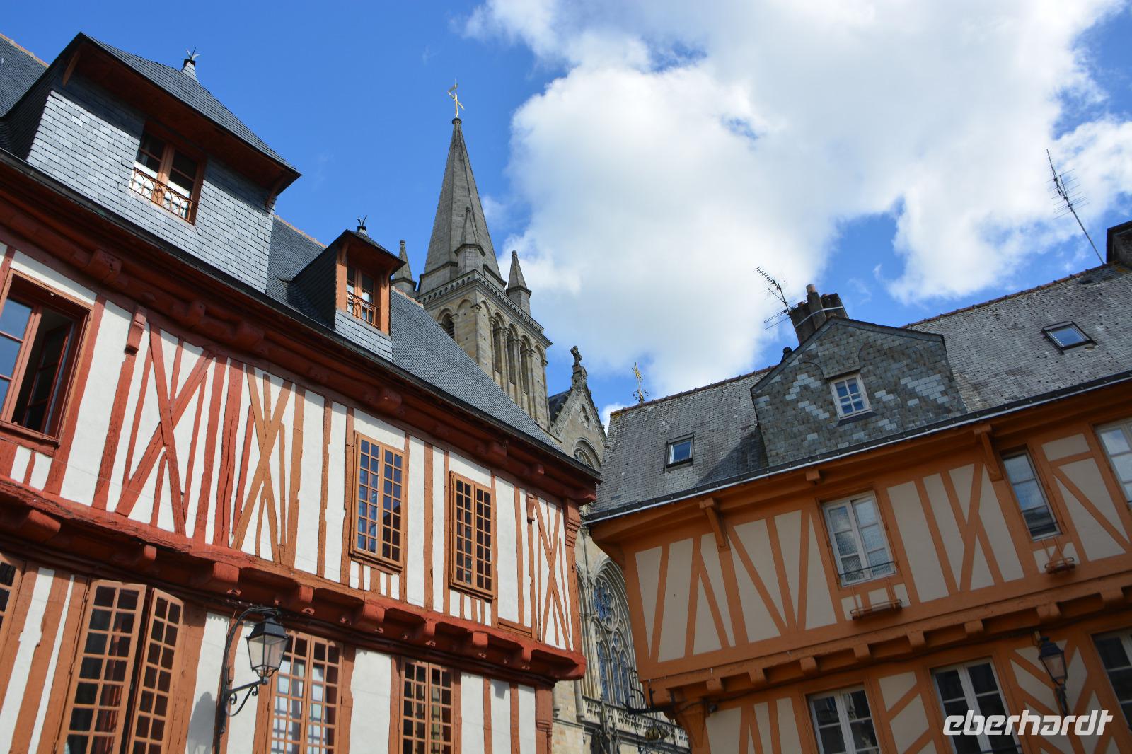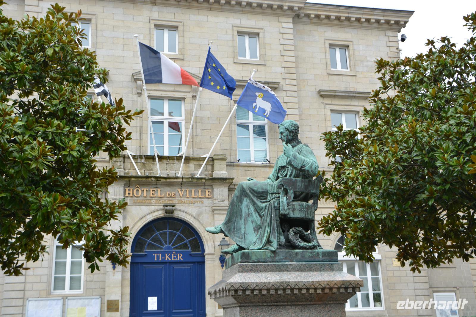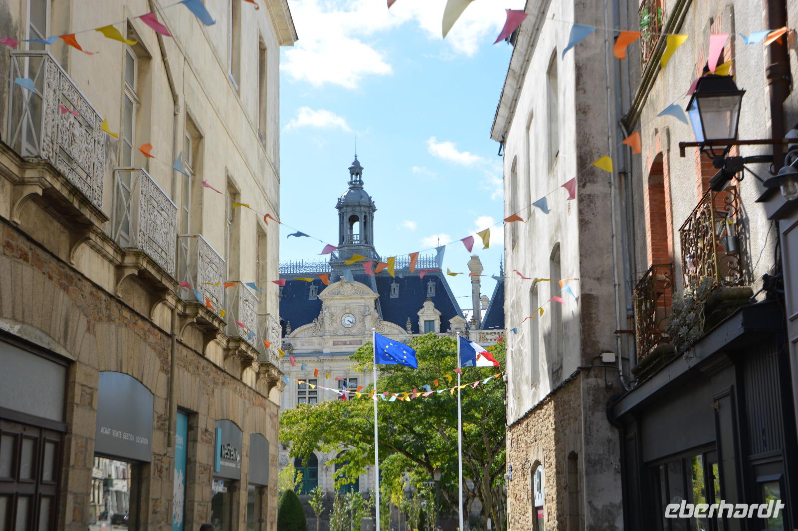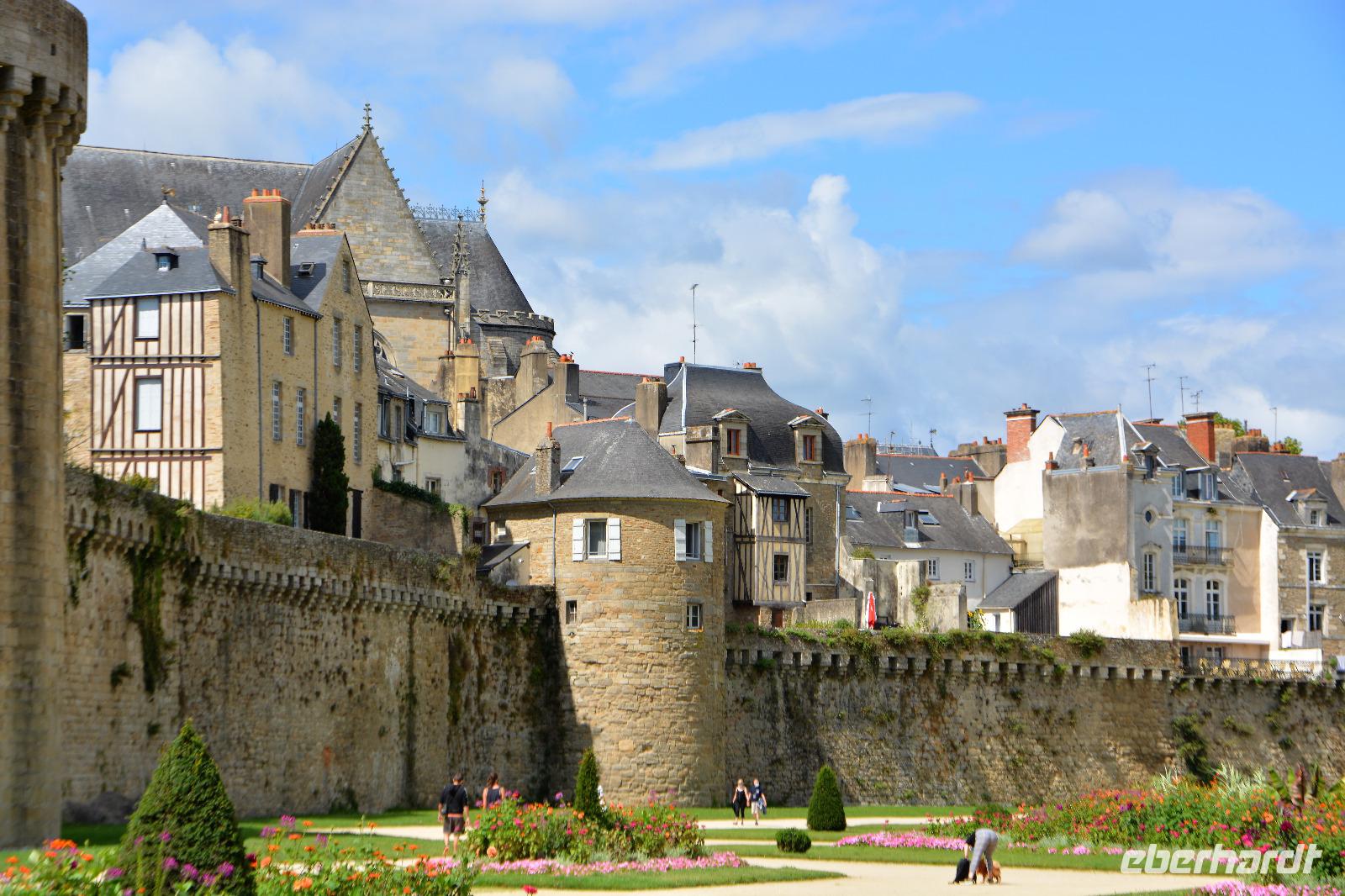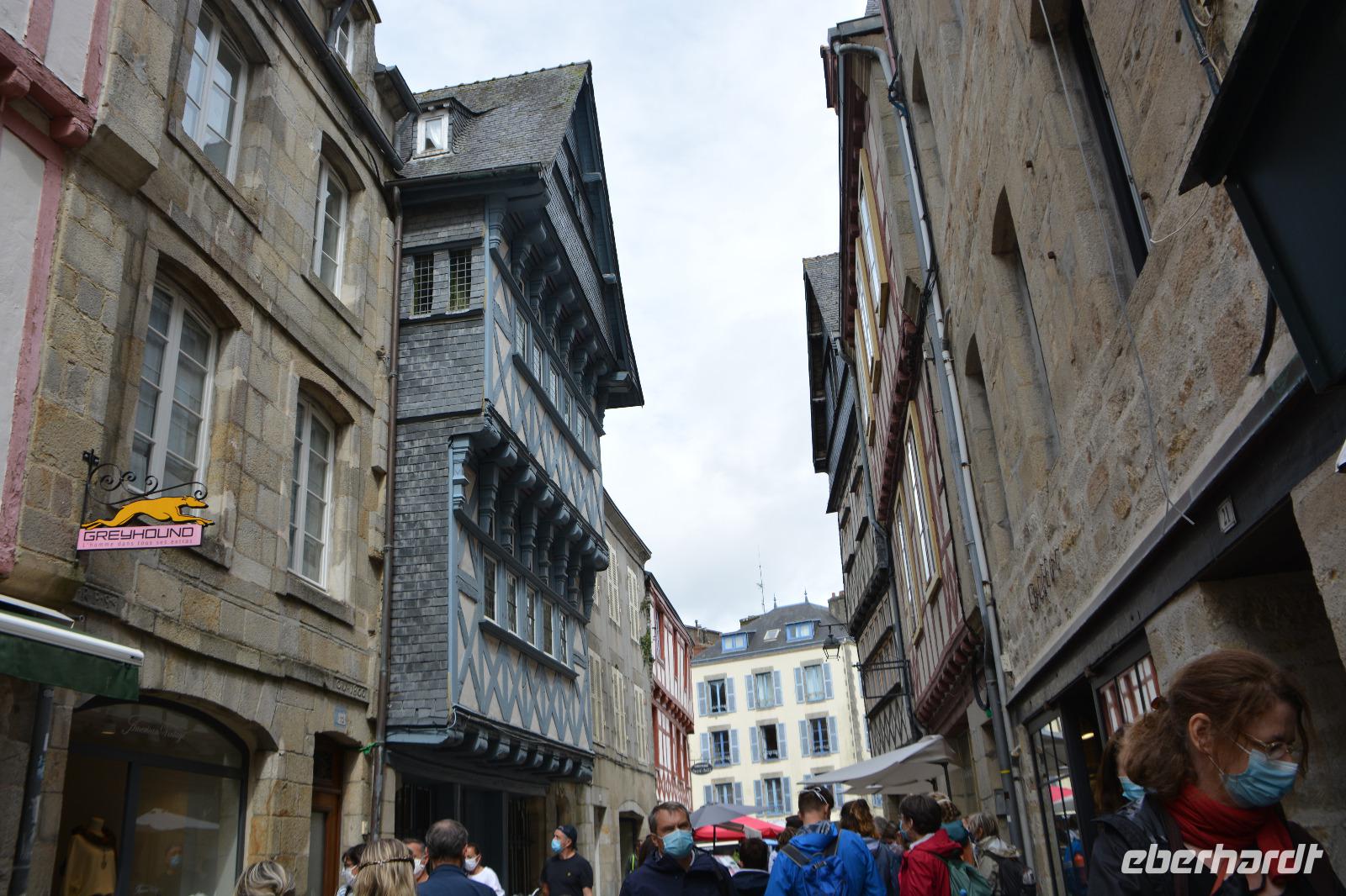 Heute geht es nach dem Frühstück erst einmal in Richtung Concarneau, der Name der "Unterschlupf der Bretagne" bedeutet. Er ist immer noch der erste Hafen für den Thunfischfang in Frankreich. Dieser Ort wurde im 14. Jahrhundert zu einer Festung ausgebaut und spielte eine Rolle im 100-jährigen Krieg. Vielleicht ist er aber auch jemanden aus eine Fernsehserie im ARD bekannt. Die Serie mit Komissar Dupin die auf den Büchern von Jean-Luc Banallek (Pseudonym)basiert wurde unter anderem hier in Concarneau gedreht. Es ist noch früh und die Stadt erwacht gerade. Wir spazieren über die Brücke, die den einzigen Zugang zur Stadt bildet, vorbei am alten Krankenhaus bis zur heutigen Kirche. Es gibt ein extra Tor, wo früher die Waren angeliefert wurden, die so nicht durch die ganze befestigte Stadt transportiert werden mussten. Von der Stadtmauer hat man einen schönen Blick auf den Hafen. Vor der Brücke am Festland ist heute ein kleiner Flohmarkt aufgebaut, wo es einiges Originelles zu erwerben gäbe. Aber wir haben nur beschränkte Zeit denn heute warten noch "ganz alte Steine" auf uns. Fast alle entschließen sich, mit dem Minizug durch die Anlage von Carnac zu fahren, welche eine der berühmtesten Orte der Menhire und Dolmen keltischer Völker ist. Langsam zuckelt der Zug enlang der Küste und wir durchqueren erst einmal La Trinité -sur-Mer einer der bekannten Orte an der Küste und fahren dann vorbei an den Steinen von Kerlescan, Kermario und schließlich Menec. Alle Steinareale sind eingezäunt und man kann von Weitem schauen. 6500 Jahre Kultur blicken uns mit diesen Steinen an. Tausende von Steinen hat man in dieser speziellen Region gefunden. Auch Tumuli, künstliche Erdhügel mit Gräbern, können betrachtet werden, heutzutage allerdings nur von Außen, da sie einsturzgefährdet sind. Von Carnac geht es weiter in Richtung Westen nach Vannes, welches am Golf von Morbihan, einem inselreichen Binnenmeer liegt. Da die Verbindung zum Atlantik nur wenige Kilometer beträgt gibt es hier extreme Gezeitenströme mit einer Geschwindigkeit von 4 Metern pro Sekunde. Die Stadt Vannes hatte im Mittelalter eine große Bedeutung und war auch einmal die Hauptstadt der Bretagne. Unsere Stadtführerin wartet am Fremdenverkehrsamt auf uns und von dort starten wir nach einer kurzen "technischen Pause" unseren Rundgang. Die Sonne kommt hervor. Wir schlendern zur "Place Gambetta" welcher vor dem Haupttor der befestigten Altstadt und am Hafen liegt. Am Stadttor gruesst der Heilige Vinzenz von Ferrer, ein spanischer Wanderprediger aus dem 14.Jahrhundert. Vom Wehrgang blicken wir bis zur Porte de Prison auf die Gärten die im ehemaligen Graben angelegt wurden. Wir gehen an den historischen Waschhäusern vorbei und werfen einen Blick hinein. Wir überlegen, dass es noch nicht so lange Waschmaschinen gibt und an die mühsame Arbeit der damaligen Hausfrauen oder Hausmädchen die einmal in der Woche den Tag in der Waschküche verbracht haben. Wir durchqueren das "Musée de la Cohue", einst die Markthalle von Vannes. Im Moment gibt es hier eine Lichtinstallation eines Künstlers welche wir beim Durchlaufen betrachten können. In der spätgotischen Kathedrale ist das Grab des Wanderpredigers Vincenz Ferrer der auf seiner letzten Wanderreise in die Bretagne gelangte und hier verstarb. Eine Besonderheit an der Kathedrale ist die Renaissancekapelle welche später hinzugefügt wurde. Am Platz Henri IV. sind besonders schön restaurierte Fachwerkhäuser aus dem 15. und 16.Jahrhundert zu sehen. Auch fallen einige Stadthäuser aus Granit auf, die aus dem 17.Jahrhundert stammen. Unser Rundgang endet am Rathaus, einem Bau aus dem 19.Jahrhundert im Stil der Neo-Renaissance. Wir verabschieden uns von unserer Stadtführerin und laufen noch 200 m zu unserem Hotel wo schon unser Bus mit dem Gepäck auf uns wartet.