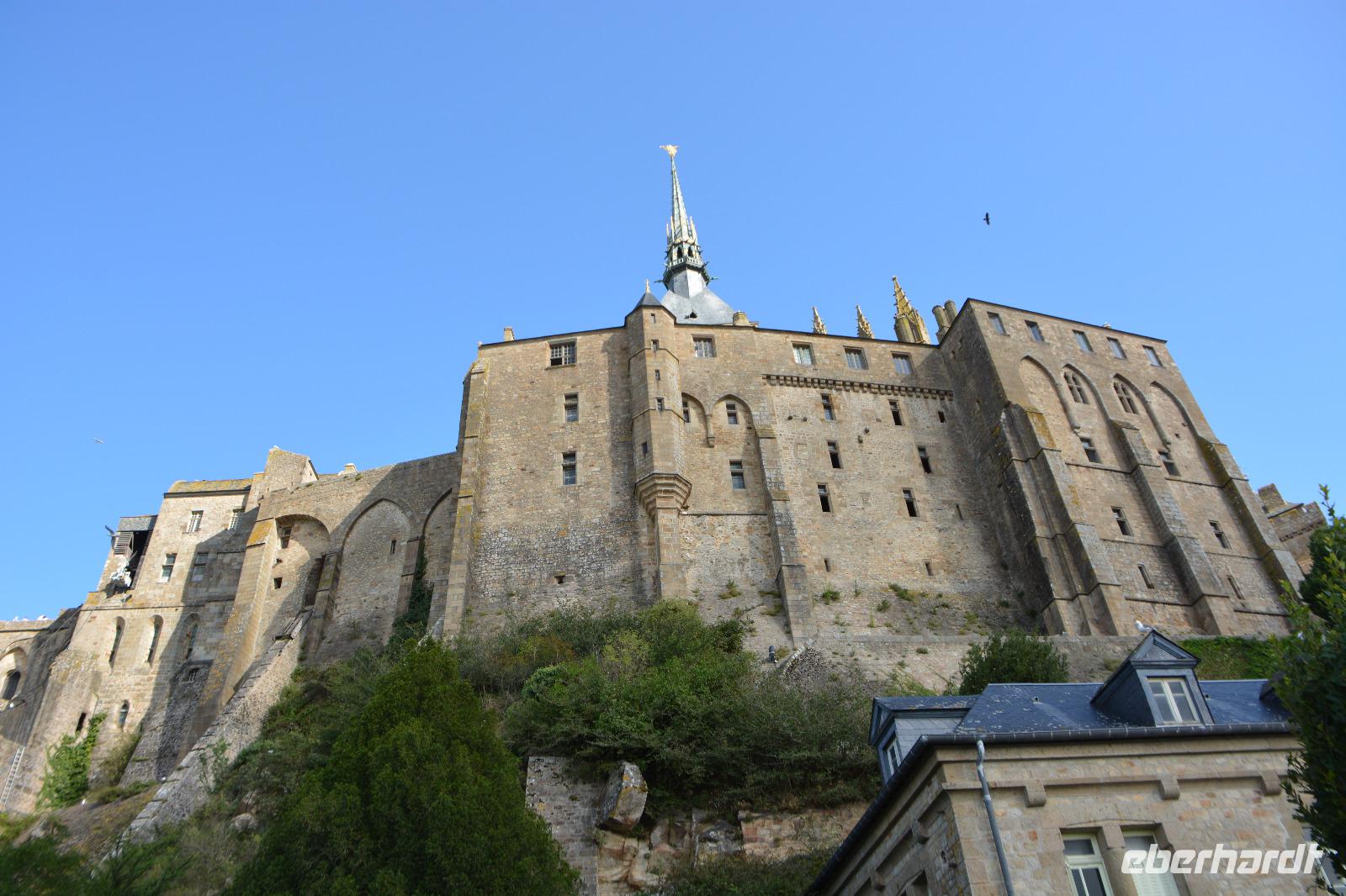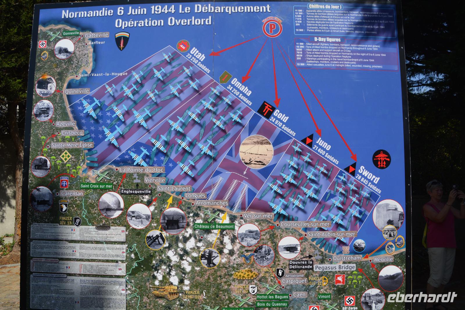 Heute werden wir wieder mit unserer jüngeren Geschichte konfrontiert. Die Normandie, welche im 2.Weltkrieg von der deutschen Wehrmacht besetzt war, wurde durch die verlustreiche Operation Overlord die am 06.06.1944 begann von den Nationalsozialisten befreit und mit ihr ganz Europa.Diesem Ereignis wird an den Landungstränden gedacht, die wir an dem ca. 100 km langen Küstenstreifen besuchen. An vielen Orten sind Denkmäler aufgestellt um an dieses Ereignis zu erinnern. Auch Reste der Bunkeranlagen und Geschützstellungen sind zu sehen und natürlich zahlreiche Soldatenfriedhöfe. Das Wetter passt heute dazu: es regnet und mehr als einmal müssen wir unsere Regenkleidung anziehen.Die Tour endet an der "Ste.-Mère-Église", die durch einen amerikanischen Fallschirmjäger, der auf dem Kirchturm landete, berühmt wurde. Er stellte sich tot und entging so der Erschießung durch die Deutschen. Bei unserem nächsten Stopp gibt es für alle eine Runde Calvados. Dieser aromatische Apfelbranntwein wird hier in der Normandie aus Cidre produziert und überall auch in den Supermärkten angeboten. Nach diesem informativen und besinnlichen Tag freuen wir uns auf wohl eine der bekanntesten Städte der Bretagne, St.Malo. Wir fahren vorbei an Mont St.Michel, welches wir morgen besuchen werden, die Sehenswürdigkeit Frankreichs schlechthin. Wir beziehen unser Hotel direkt innerhalb der Stadtmauer von St.Malo. Erst einmal aber heisst es Koffer schieben, denn in den engen Gassen gibt es leider keine andere Möglichkeit. Unser Bus würde schlichtweg stecken bleiben und das wollen wir natürlich alle nicht. Mal abgesehen davon, dass in St.Malo kein Busverkehr erlaubt ist. Dafür wohnen wir aber direkt in der alten Stadt. Ein wunderbares Abendessen wartet im Restaurant des wohl berühmtesten Hotels der Stadt, im "Hotel Chateaubriand". Der Schinken der lange Zeit in Cidre, dem wohlschmeckenden Apfelgetränk Nordfrankreichs, gegart wurde ist köstlich. Es gibt sogar Nachschlag. Das Dessert rundet das Essen ab und wir sind gespannt auf den morgigen Tag..... und das Wetter. Die Sonne blinzelt ja schon ein wenig und es hat aufgeklart.