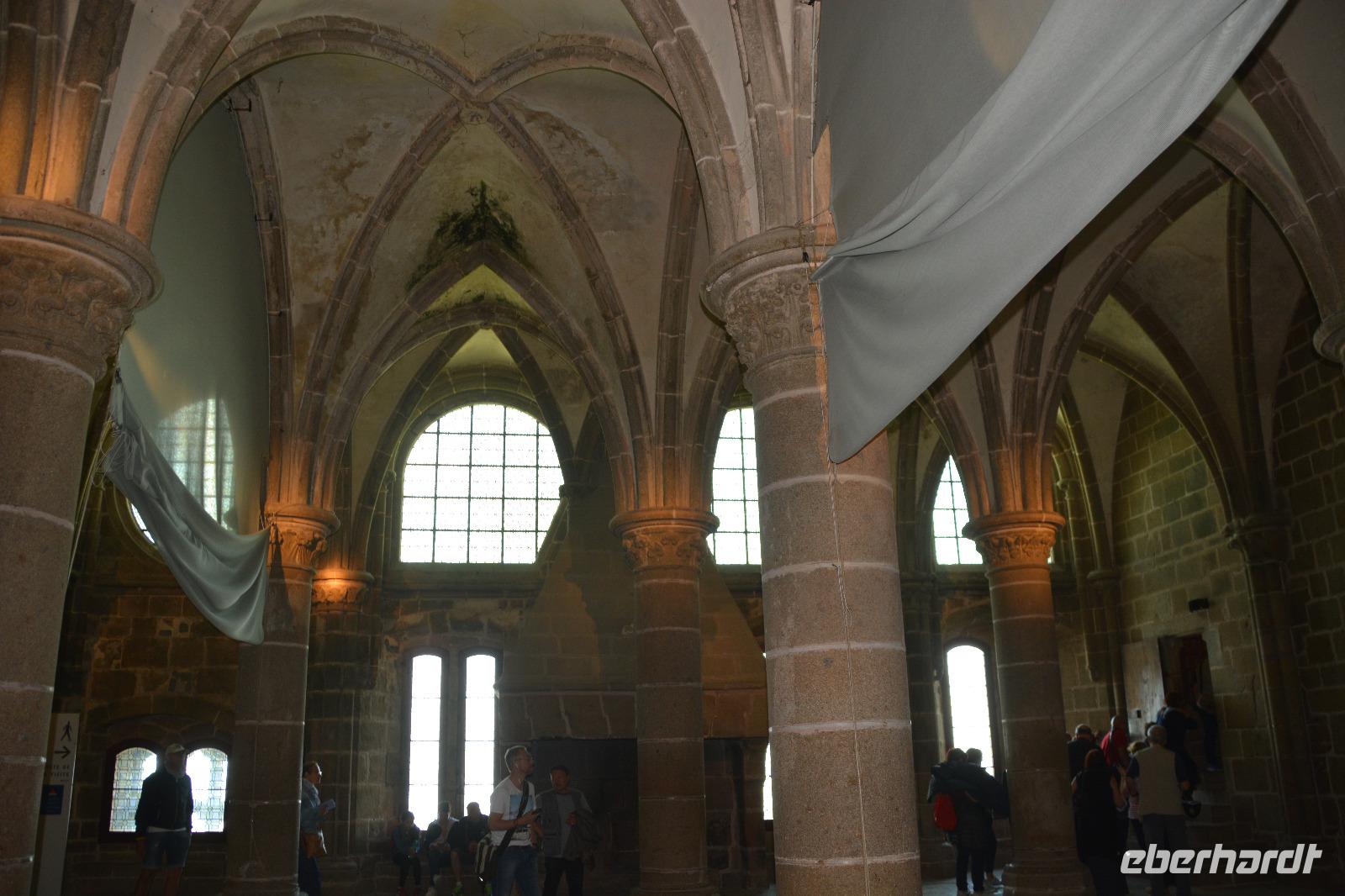 Nach einem etwas chaotischen Frühstück (es gab eine zweite Gruppe und nur eine Servicekraft) werden wir doch noch satt und fahren frühzeitig zum Mont St. Michel. Vor uns ist nur ein Reisebus am Parkplatz und wir fahren alle zusammen mit einem Bähnchen vom Parkplatz zum Eingang in Mont St.Michel. Wir gehen durch die Hauptstraße des kleinen Örtchens mit immerhin ca. 11 Einwohnern mit ihren Souvenirgeschäften, Kaffees und Restaurants. Auch am Pilgerbüro, in dem sich die Pilger registrieren lassen, kommen wir vorbei. Am Eingang zur Abtei heisst es erst einmal warten. Alles ist gut organisiert und schließlich werden wir eingelassen. Jeder bekommt ein Headset, von dem jeder individuell die Informationen zur Abtei und ihrer Geschichte abrufen kann. Dann geht es los in die imposante Anlage. Trutzige, dicke Mauern künden von einer bewegten Geschichte: Wallfahrtsstätte seit dem 8. Jahrhundert, Verteidigungsanlage im 100-jährigen Krieg, und sogar Gefängnis wurde die Anlage 1979 ein Welterbe der UNESCO. Sie ist nach dem Eifelturm die wichtigste Sehenswürdigkeit ganz Frankreichs. Nach der Besichtigung laden die Cafés zu einem Besuch ein. Nun geht es zurück zum Bus. Gina unsere Reiseleiterin und Andreas haben in der Zwischenzeit Baguette für die Gruppe gekauft. Nicht zu vergessen, die Lebensgefährtin von Andreas welche die beiden tatkräftig beim Service unterstützt. Wir fahren nach Cancale, dem Austernort an der Küste. Wir suchen uns ein geeignetes Plätzchen und Gina geht Austern für uns aussuchen. Sie werden geöffnet denn es erfordert fachmännisches Wissen den Muskel der Auster zu durchtrennen welcher die Schale wasserdicht schliesst. Die Frauen in dem Geschäft wissen Bescheid und in Kürze haben wir eine Auswahl von verschiedenen Qualitäten zum Kosten. Bei Austern gehen die Meinungen auseinander..... als Alternative gibt es Garnelen. Alle lassen es sich schmecken und ein köstlicher Cidre rundet das Ganze ab. Nach dieser gesunden eiweissreichen Mahlzeit fahren wir zurück nach St.Malo und ruhen uns ein wenig aus. Die meisten aus der Gruppe wollen alleine in St.Malo umherstreifen. Einige aber treffen sich mit der Reiseleiterin und machen einen Spaziergang. Von der Festung die nach Anne de Bretagne benannt wurde geht der Weg gleich hinter dem Hotel auf die Stadtmauer. Gut restauriert gibt die Stadt einen Eindruck vom 17.Jahrhundert in dem St.Malo der wichtigste Hafen Frankreichs war. Die Schiffseigner häuften so riesige Vermögen an. Die Piraten waren angesichts der möglichen Reichtümer nicht weit. Robert Surcouf war der berühmteste und konnte sich mit 35 zur Ruhe setzen. Vor der Stadtmauer blicken wir auf das Fort National, eines der 5 Küstenforts die im 18.Jahrhundert die Baie St.Malo schützen sollten. Es wurde vom Baumeister Vauban errichtet. Vorbei am Denkmal von Jacques Cartier der Kanada entdeckte und einige Jahre in St.Malo lebte geht es an der Porte de Dinan wieder Richtung Kathedrale, welche wir zum Abschluss des Rundgangs besuchen. Vieles an ihr erinnert an die Kathedralen in England: anglonormannische Architektur in Frankreich. Den Abend beschließen wir in dem schönen Speisesaal von gestern. Der Geist des Freigeistes und Schriftstellers Chateaubriand weht durch die Räume. Er ist der wohl berühmteste Sohn der Stadt (und er war kein Pirat).