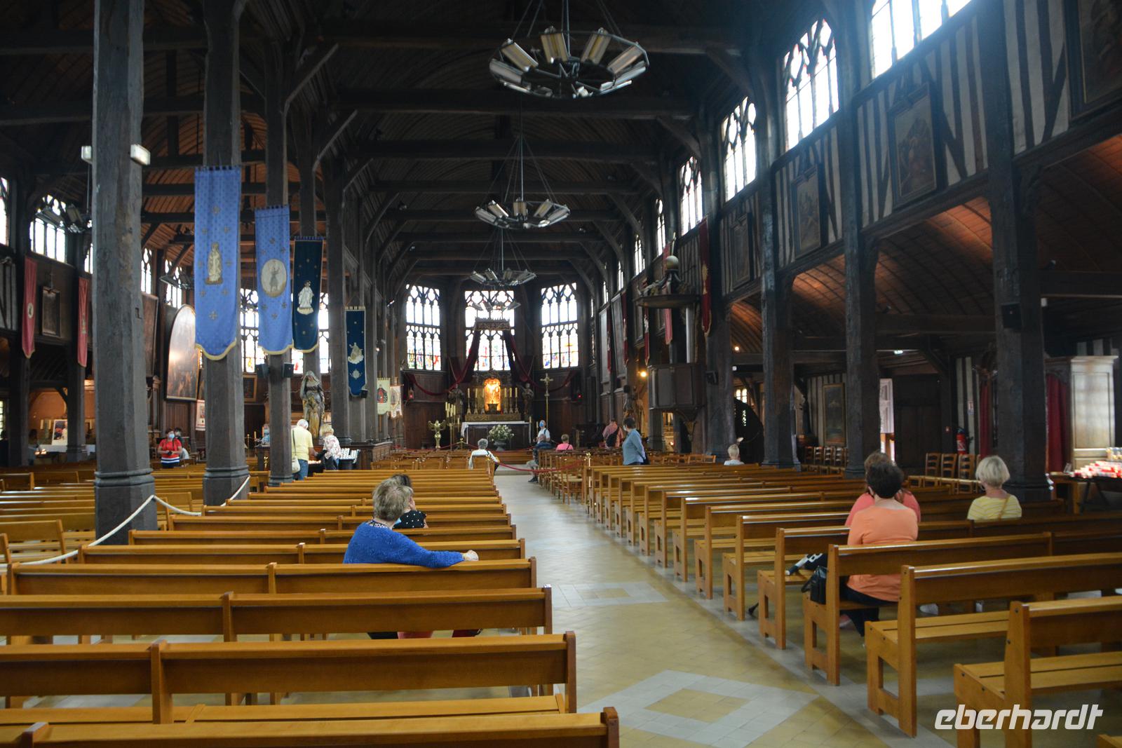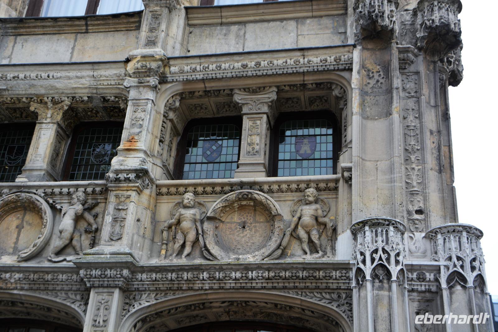 Nach einem ausgiebigen Frühstück fahren wir in die Innenstadt von Rouen, die von Viktor Hugo auch als die "Stadt der 100 Kirchtürme" bezeichnet wurde. Dort treffen wir am Fremdenverkehrsamt welches in einem schönen Renaissancebau untergebracht ist, unseren örtlichen Stadtführer. Es liegt direkt gegenüber der prachtvollen Kathedrale "Notre-Dame". Hier vor der Kathedrale saß einst der Maler Monet und malte seine berühmten Kathedralenbilder. Wir erfahren etwas von der Baugeschichte dieses Gebäudes, welche man an der Baufront ablesen kann: Romanik, Gotik, Renaissance und schließlich die Vollendung des Vierungsturms erst im 19.Jahrhundert. Wir schauen uns dieses Bauwerk von innen an und bewundern die schönen Glasfenster. Im Innenraum gehen wir an den Sarkophagen von Rollo und Richard Löwenherz vorbei. Hier ist das Herz von R.Löwenherz bestattet worden, befindet sich heute aber in einem Museum und dient weiter wissenschaftlichen Zwecken. Unsere Reiseleiterin Gina verlässt jetzt einen Teil der Gruppe um bei einigen Reiseteilnehmern einen Antigentest in der nahen Apotheke durchführen zu lassen. Der größte Teil der Gruppe aber geht weiter in Richtung der Kirche "St.Maclou" die von alten Fachwerkhäusern umgeben ist. Unterschiedliche Bautechniken kann man hier betrachten. Den Höhepunkt bildet ein Besuch des Beinhauses "Aitre St.Maclou" aus dem 14.Jahrhundert. Hier war der Friedhof der Pestkranken. Der Innenhof wird von Galerien gesäumt die mit außergewöhnlichen Holzschnitzerein verziert sind. Der Weg führt uns zum Justizpalast aus dem 16.Jahrhundert der das größte nicht sakrale gotische Gebäude Europas ist und schließlich vorbei an der "Gros Horloge", dem "Großen Uhrturm" mit einer Uhr aus dem 14.Jahrhundert nur mit Stundenzeiger. Minuten waren wohl damals nicht so wichtig.Nun aber wenden wir uns zum Place du Vieux Marché auf dem ein interessanter neuzeitlicher Kirchenbau dem wohl historisch wichtigsten Ereignis der Stadt gewidmet ist. Hier auf diesem Platz wurde am 30. Mai 1431 Jeanne d'Arc verbrannt. Sie kämpfte für ein von den Engländern befreites Frankreich. Schnell ist die Zeit vergangen und bald schon wartet unser Bus auf uns. Noch ein kleiner Spaziergang und etwas zu Essen gekauft und dann ist es auch schon soweit. Wir verabschieden uns von unserem Stadtführer, treffen auf unsere neu negativ getesteten Mitreisenden und fahren weiter in Richtung Etretat, dem bekannten Badeort am Ärmelkanal. Künstler und Literaten entdeckten schon Ende des 19.Jahrhunderts dieses nette Örtchen, welches von Klippen umrahmt wird. Da die Interessen variieren, geht jeder seinen eigenen Weg, denn verlaufen kann man sich in Etretat nicht. 2 Klippenwege führen zu den Aussichtspunkten 75 m über dem Meer: die "Porte d'Aval" und auf der anderen Seite die "Porte Amont". Die Klippen bestehen aus Feuerstein und werden schliesslich vom Meer zu rundlichen Kieseln geschliffen, die den Strand dominieren. Nicht umsonst heißt die Küste "Alabasterküste". Wir treffen uns nach diesem Ausflug wieder am Bus und fahren weiter. Vorbei an Le Havre, dort wo die Seine in den Atlantik mündet und über die "Pont-de-Normanie", der Schrägseilbrücke mit der einst größten Spannweite Europas, erreichen wir die Stadt Honfleur an der "Cote Fleurie". Der Maler Eugène Boudin wurde hier geboren und hielt die aufregenden Küstenlandschaften eindrücklich im Bild fest. Andere wie Pissarro, Cezanne und Renoir folgten und so wurde Honfleur zur Wiege des Impressionismus.Wir spazieren um den alten Hafen mit seinen Yachten zur Kirche Sainte Catherine, deren Dach komplett aus Holz von Schiffszimmerleuten in der Mitte des 15. Jahrhunderts erbaut wurde. Beeindruckend ist auch der einzeln stehende Glockenturm. Leider geht plötzlich ein enormer Wolkenbruch auf uns nieder und jeder der kann flüchtet sich zu einem Unterstand. Trotzdem werden wir etwas nass. Schade denn alle wären gerne noch ein wenig in diesem netten Künstlerstädtchen gebummelt. Zurück zum Bus fahren wir anschließend nach Caen. Die Geschichte dieser Stadt, die im 2.Weltkrieg besonders zur leiden hatte, stimmt uns auf den nächsten Tag ein. Erst einmal lassen wir uns aber unser verdientes Abendessen in unserem Hotel bei Caen schmecken.