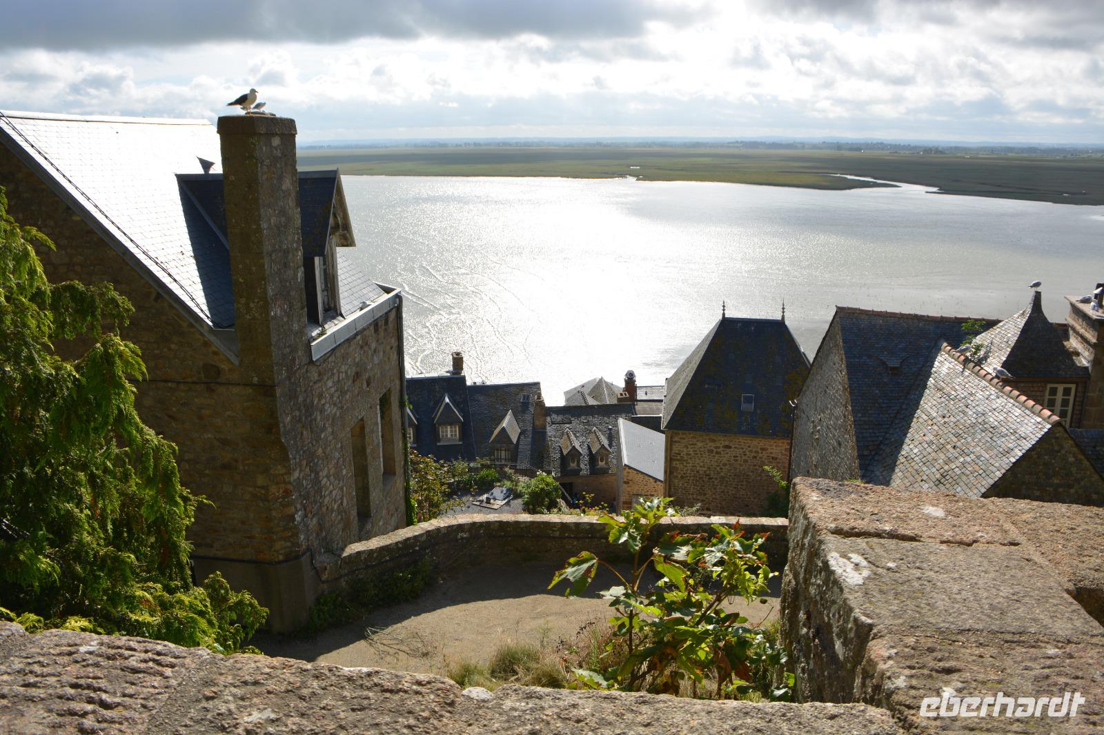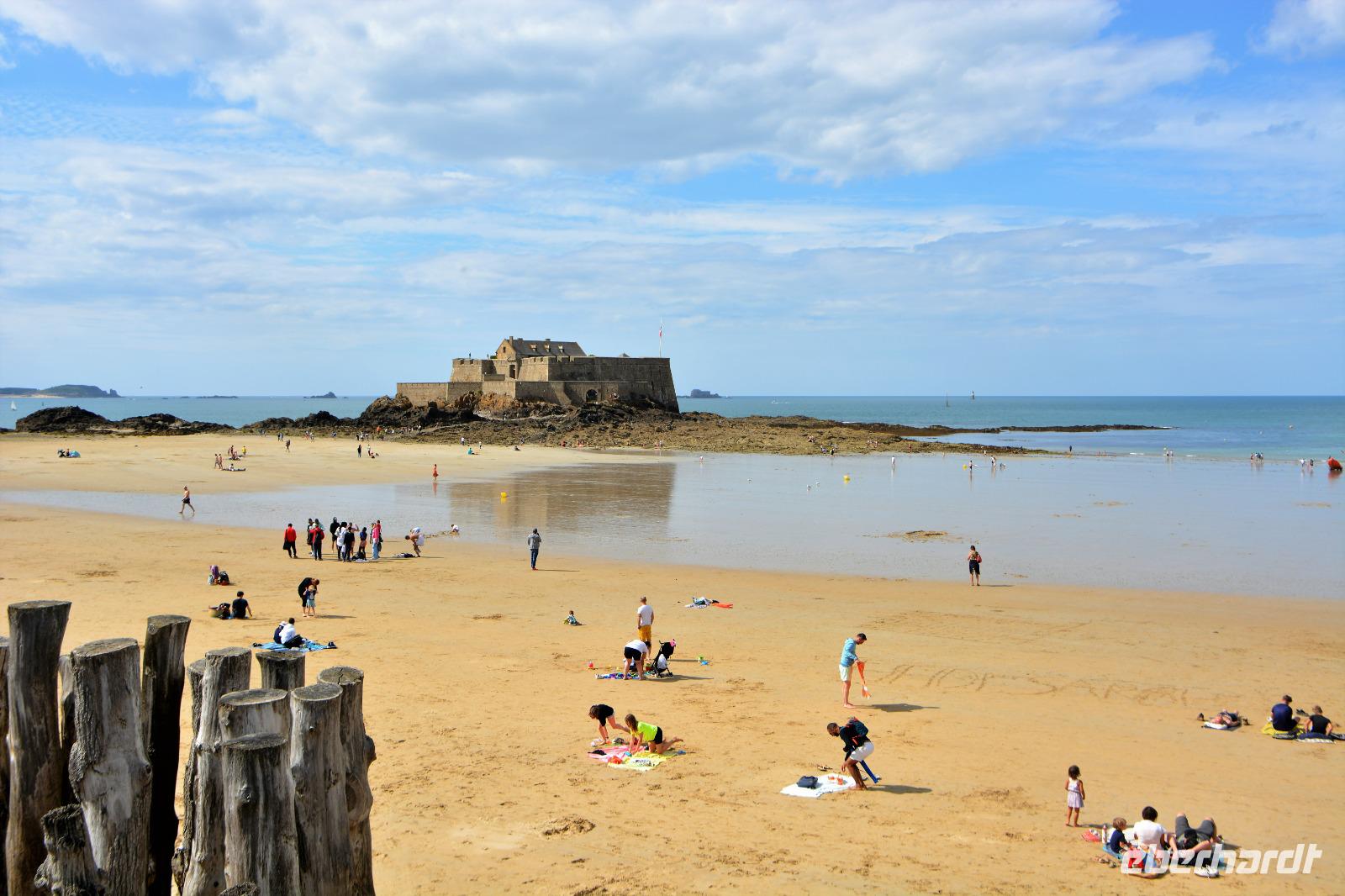 Heute werden wir wieder mit unserer jüngeren Geschichte konfrontiert. Die Normandie, welche im 2.Weltkrieg von der deutschen Wehrmacht besetzt war, wurde durch die verlustreiche Operation Overlord die am 06.06.1944 begann von den Nationalsozialisten befreit und mit ihr ganz Europa.Diesem Ereignis wird an den Landungstränden gedacht, die wir an dem ca. 100 km langen Küstenstreifen besuchen. An vielen Orten sind Denkmäler aufgestellt um an dieses Ereignis zu erinnern. Auch Reste der Bunkeranlagen und Geschützstellungen sind zu sehen und natürlich zahlreiche Soldatenfriedhöfe. Das Wetter ist heute wechselhaft aber letztendlich haben wir Glück und können diese Stätten ohne nasse Komplikationen besichtigen. Die Tour endet an der "Ste.-Mère-Église", die durch einen amerikanischen Fallschirmjäger, der auf dem Kirchturm landete, berühmt wurde. Er stellte sich tot und entging so der Erschießung durch die Deutschen.Nach diesem informativen und besinnlichen Tag freuen wir uns auf wohl eine der bekanntesten Städte der Bretagne, St.Malo. Wir fahren vorbei an Mont St.Michel, welches wir morgen besuchen werden, die Sehenswürdigkeit Frankreichs schlechthin. Wir beziehen unser Hotel direkt am Strand von St.Malo, 20 Gehminuten entfernt von der Stadt "Intramuros", der Stadt innerhalb der Mauer. Ein gutes Abendessen wartet im Restaurant des Hotels auf uns.Ein köstliches Dessert rundet das Essen ab. Einige von uns gehen noch an den Strand um die Abendstimmung zu geniessen. Wir freuen uns auf morgen. Es soll schönes Wetter geben und alle sind gespannt auf die berühmte Abtei Mont St.Michel.