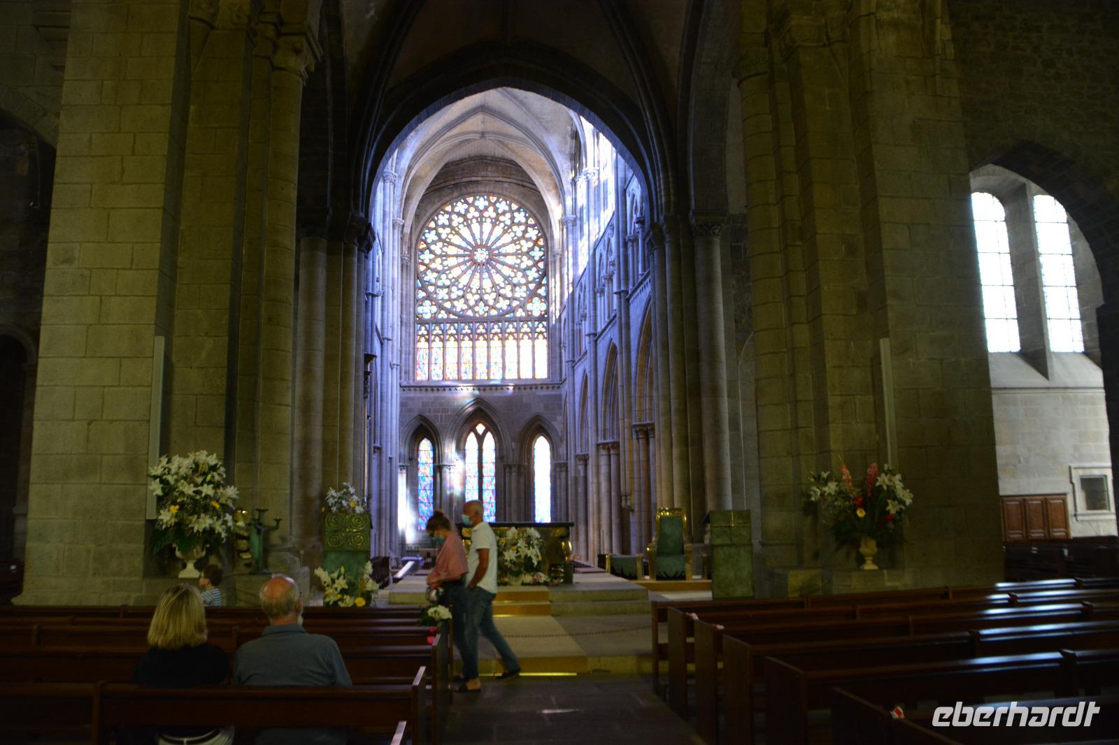 Fast alle haben sich zur heutigen Tour in den äußersten Westen der Bretagne dem "Pointe du Raz" angemeldet. Einige der Reiseteilnehmer möchten gerne einen ruhigeren Tag in Quimper verbringen. Das Wetter verspricht Sonne und so fahren wir denn positiv gestimmt nach Locronan, ebenfalls ein Ort welcher durch die Leinenindustrie zu Reichtum gelangte. Ein irischer Mönch, der heilige Ronan fand hier seinen Ort der Bestimmung und ihm ist auch die Kirche gewidmet. Während sich die Gruppe den Ort anschaut, fährt die "Mannschaft" zum Picknick einkaufen in den nahe gelegenen großen Supermarkt. Hier gibt es alles was wir für das Picknick brauchen.Anschließend geht es weiter zum "Pointe du Raz". Meerumtoste Felsen erheben sich bis zu 70 Meter in die Höhe. In der Ferne sieht man einen Leuchtturm, der den Fischern und Seeleuten auch heute noch den Weg weist. Viele Legenden ranken sich um den Ort. Hier soll das sagenhafte Lys gelegen haben welches vielfach in den bretonischen Legenden auftaucht. Das Denkmal zeigt Maria als Patronin der Schiffbrüchigen. Einige von uns machen auch hier eine kleine Küstenwanderung. Danach gibt es ein zünftiges bretonisches Picknick mit frischem Baguette und bretonischem Käse, was allen gut schmeckt. Der Wein mundet ebenso und alle sind satt und zufrieden. Wir fahren ueber kleine Orte zurueck nach Quimper und kommen in eine der in Frankreich zur Zeit zahlreichen Anti-Impfplicht Demos für medizinisches Personal. Nach einer Minipause laufen wir vom Hotel in das alte Zentrum von Quimper mit seinen schönen Fachwerkhäusern.Die "Kathedrale St-Corentin" ist eine der wichtigsten Kathedralen der Bretagne. Im 13.Jahrhundert wurde mit ihrem Bau in einer damals neuen Bautechnik mit Rippengewölbe und Strebepfeilern begonnen. Später kamen dann die gotischen Fenster dazu. Auch hier erinnern die Türme im bretonischen Stil an England.Beim Bummeln durch den Ort kommt man unter Anderem an den "Butterplatz" mit schönem Fachwerk. Das Örtchen vermittelt geschäftiges Treiben und es gibt einige interessante Geschäfte. Ein schoener Tag geht zu Ende.