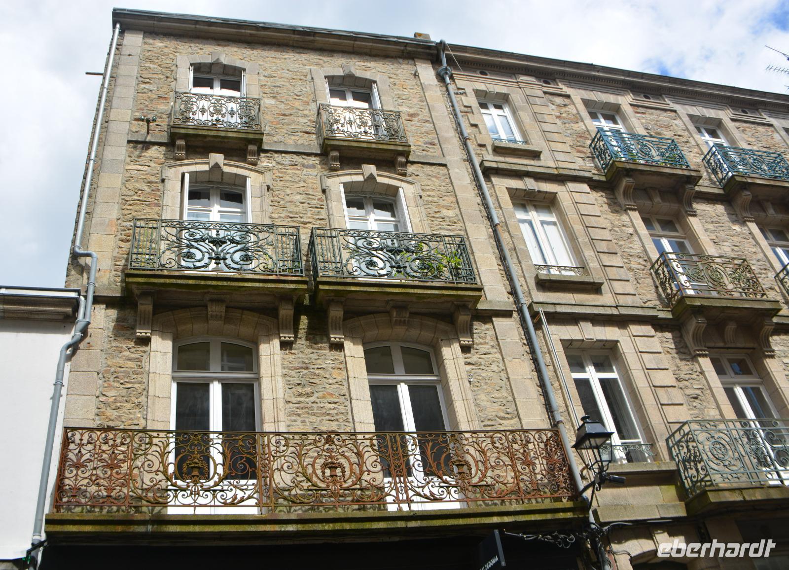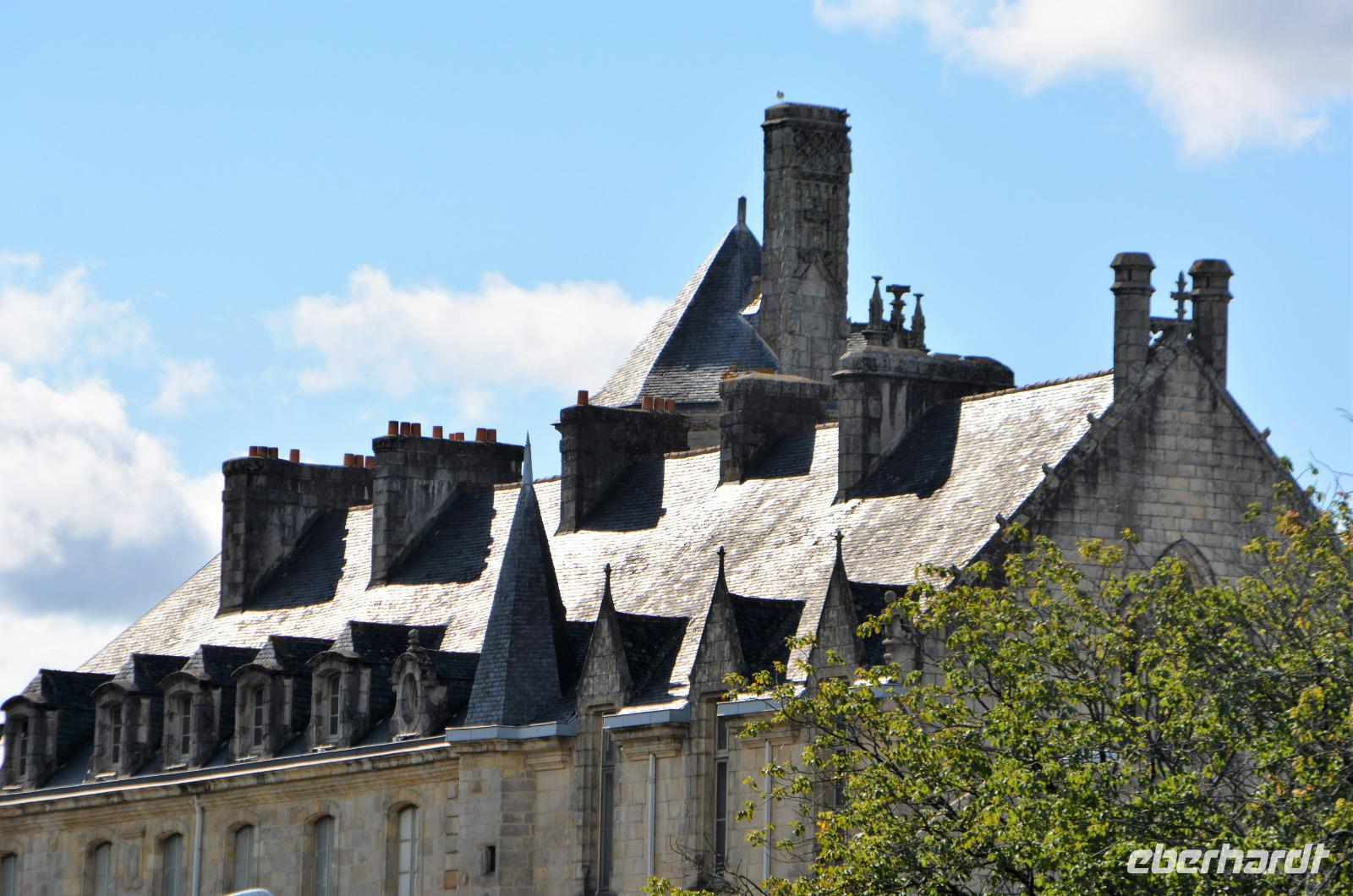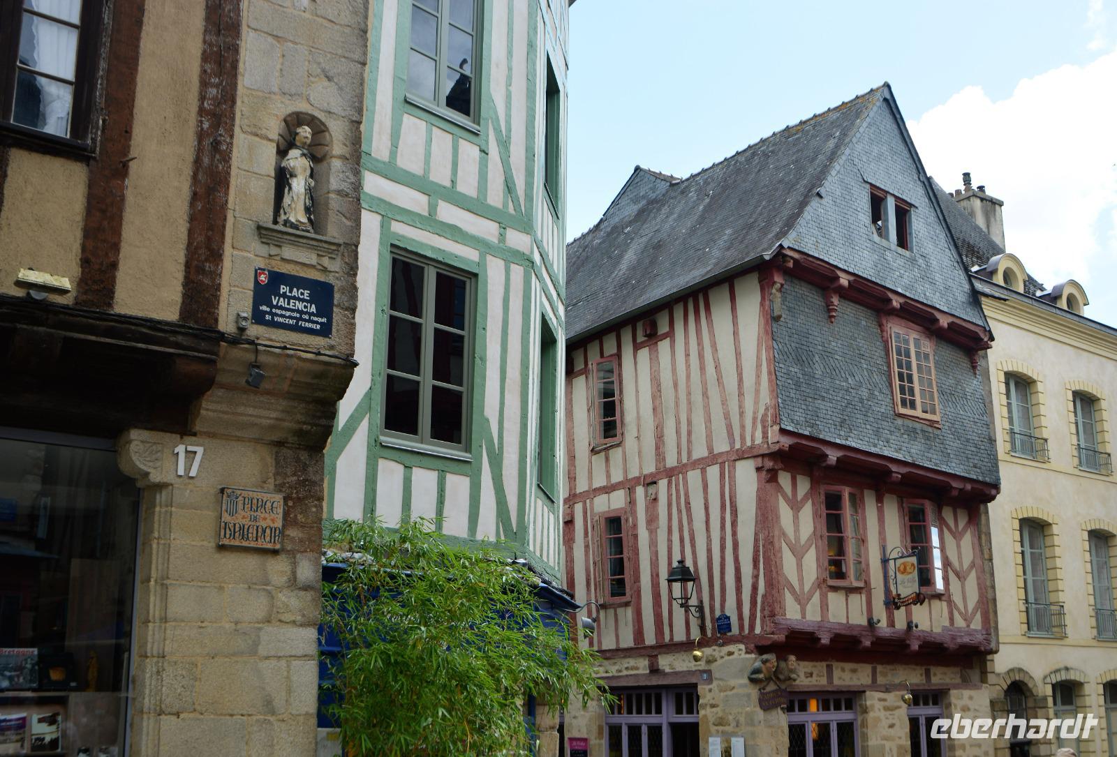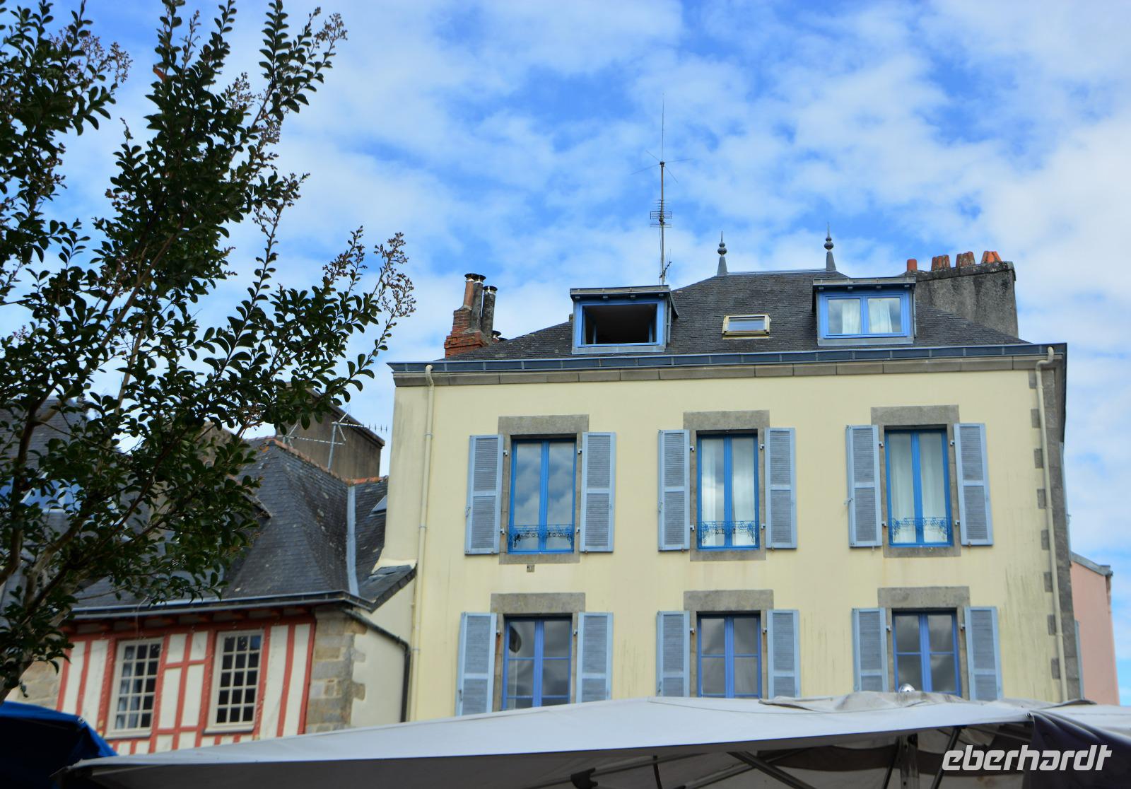 Heute geht es nach dem Frühstück erst einmal in Richtung Concarneau, der Name der "Unterschlupf der Bretagne" bedeutet. Er ist immer noch der erste Hafen für den Thunfischfang in Frankreich. Dieser Ort wurde im 14. Jahrhundert zu einer Festung ausgebaut und spielte eine Rolle im 100-jährigen Krieg. Vielleicht ist er aber auch jemandem aus eine Fernsehserie im ARD bekannt. Die Serie mit Komissar Dupin, die auf den Büchern von Jean-Luc Banallek (Pseudonym)basiert, wurde unter anderem hier in Concarneau gedreht. Es ist noch früh und die Stadt erwacht gerade. Wir spazieren über die Brücke, die den einzigen Zugang zur Stadt bildet, vorbei am alten Krankenhaus bis zur heutigen Kirche. Es gibt ein extra Tor, wo früher die Waren angeliefert wurden, die so nicht durch die ganze befestigte Stadt transportiert werden mussten. Von der Stadtmauer hat man einen schönen Blick auf den Hafen. Einige von uns gehen noch zur Markthalle in der neueren Stadt. Hier gibt es auch am Sonntagmorgen frische Lebensmittel. Austern, Fisch und auch ausgesuchte Fleischangebote findet man hier. In Frankreich gibt man schon einmal etwas mehr für gutes Essen aus.Nach diesem schönen Städtchen wird es jetzt steinig, denn wir statten den wohl ältesten kulturellen Zeugnissen der Bretagne einen Besuch ab. Unser erstes Ziel ist Erdeven mit den "Alignements de Kerzerho". Wir spazieren zwischen den gigantischen Steinen. Heute ist die Gegend gut besucht, da Sonntag ist und französische Familien besuchen die Stätte, ebenso wie wir. Gigantische Dolmen schauen auf uns herab. Wer hat sie nur und wie bewegt? Sie bergen noch manches Geheimnis. Weiter geht es nach Mennec, Kermario und Kerlescan, alle diese Stätten gehören zu Carnac, dem etwas bekannteren Namen für diesen Ort. Steinreich verlassen wir Carnac und fahren weiter in Richtung Westen nach Vannes, welches am Golf von Morbihan, einem inselreichen Binnenmeer liegt. Da die Verbindung zum Atlantik nur wenige Kilometer beträgt gibt es hier extreme Gezeitenströme mit einer Geschwindigkeit von 4 Metern pro Sekunde. Die Stadt Vannes hatte im Mittelalter eine große Bedeutung und war auch einmal die Hauptstadt der Bretagne. Unsere Stadtführerin wartet am Fremdenverkehrsamt auf uns und von dort starten wir unseren Rundgang. Das Wetter ist sehr wechselhaft aber wir sind optimistisch und schlendern zur "Place Gambetta" welcher vor dem Haupttor der befestigten Altstadt und am Hafen liegt. Am Stadttor gruesst der Heilige Vinzenz von Ferrer, ein spanischer Wanderprediger aus dem 14.Jahrhundert. Vom Wehrgang blicken wir bis zur Porte de Prison auf die Gärten die im ehemaligen Graben angelegt wurden. Wir gehen an den historischen Waschhäusern vorbei und werfen einen Blick darauf. Wir überlegen, dass es nicht so lange her ist, dass es Waschmaschinen gibt und an die mühsame Arbeit der damaligen Hausfrauen oder Hausmädchen die einmal in der Woche den Tag in der Waschküche verbracht haben. Innerhalb der Stadtmauer gehen wir am einem befestigten unvollendeten Turm vorbei durch romantische Gassen zur spätgotischen Kathedrale. Sie birgt das Grab des Wanderpredigers Vincenz Ferrer, der auf seiner letzten Wanderreise in die Bretagne gelangte und hier verstarb. Eine Besonderheit an der Kathedrale ist die Renaissancekapelle welche im 16.Jahrhundert hinzugefügt wurde.Am Platz Henri IV. sind besonders schön restaurierte Fachwerkhäuser aus dem 15. und 16.Jahrhundert zu sehen. Auch fallen einige Stadthäuser aus Granit auf, die aus dem 17.Jahrhundert stammen. Unser Rundgang endet am Rathaus, einem Bau aus dem 19.Jahrhundert im Stil der Neo-Renaissance. Wir verabschieden uns von unserer Stadtführerin und laufen noch 200 m zu unserem Hotel. Unser Bus ist bereits da und wir können in unser Hotel einchecken.