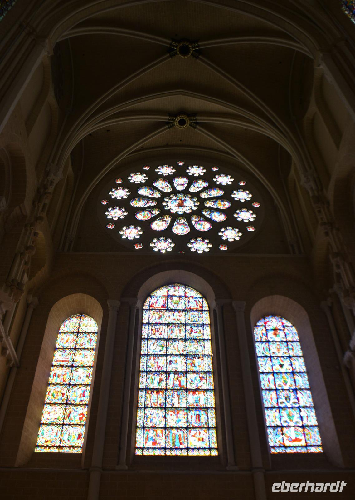Irgendwann geht jede Reise ihrem Ende zu und heute ist unser letzter Tag komplett in Frankreich. Nach einem reichlichen Frühstück fahren wir in Richtung Osten. Heute steht die Besichtigung des berühmten Schlosses von Angers auf dem Plan. Vorbei geht es an der Stadt Nantes, die der Hauptort der Region "Pays de la Loire" ist - auch einem sehr schönen Reiseziel mit zahlreichen Schlössern und Kunstwerken, sowie einer lieblichen Landschaft. Wir haben viel gesehen und uns wieder einen Teil unseres Nachbarlandes erschlossen. Die Abrundung des Ganzen ist der berühmt Wandteppichzyklus von Angers aus dem 14.Jahrhundert welcher die "Apokalypse nach der Offenbarung des Johannes darstellt". Beeindruckend ist auch das Schloss welches durch die architektonische Besonderheit der Baumaterialien hervorsticht: Schiefer und Tuffstein. Es ähnelt eher einer Festung. Hier war der Sitz der Grafen von Anjou, Begründer eines französischen Herrschergeschlechts welches bis 1399 in direkter Linie die Könige von England stellte. Nach dieser Besichtigung fahren wir zum letzten Besichtigungsziel unserer Reise, zur berühmten "Kathedrale von Chartres". Vom Parkplatz im Ort haben wir es nicht weit zur Kathedrale. Es handelt sich um die älteste unverändert gebliebene hochgotische Kathedrale der Welt und ist von herausragender Bedeutung. Beeindruckend sind die berühmten Glasfenster welche der Kathedrale ihr besonderes Licht verleihen. Im Bus gibt es zum Abschluß noch eine Kostprobe für jeden aus der Calvados-Flasche. Die Fahrt zu unserem Hotel bei Paris zieht sich, da wir wie üblich in den Pariser Feierabendstau kommen. Schließlich sind wir im Hotel und können den Tag bei einem Buffet ausklingen lassen.