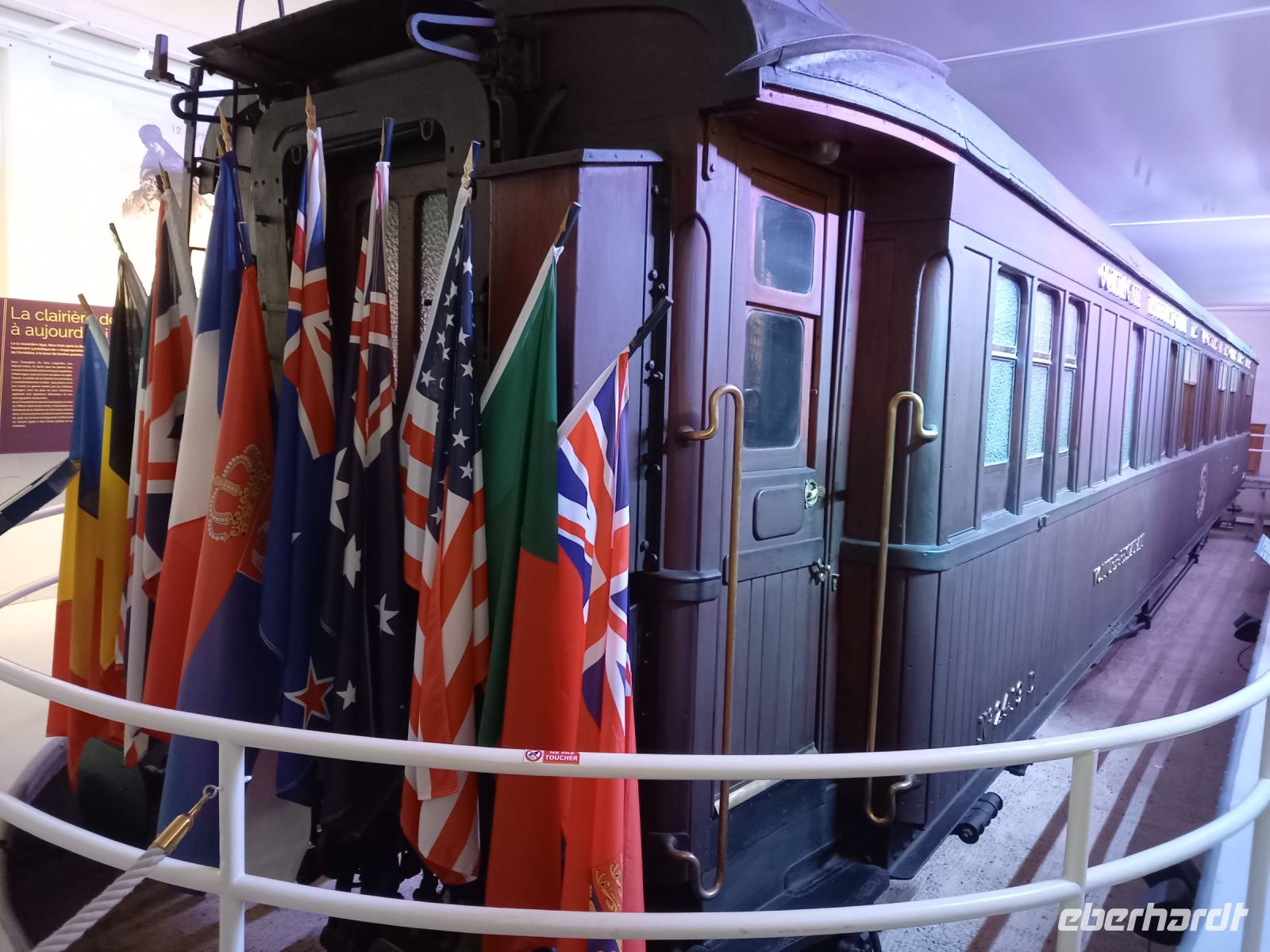 Nach dem Frühstück brachen wir auf nach Verdun, der Stadt, die im ersten Weltkrieg Schauplatz einer der schlimmsten Dauer-Schlachten dieser gewaltigen Auseinandersetzung war. Trotz der inzwischen mehr als hundert Jahre, die seit diesem Krieg, in dem etwa 17 Millionen ihr Leben verloren, vergangen sind kann man die Spuren der Kämpfe um dieses Fleckchen Erde noch gut erkennen: auf einer eindrucksvollen Rundfahrt über die Schlachtfelder sieht man die Reste der Schützengräben und Granattrichter, die hier die Landschaft umgewühlt haben. Hunderttausende Soldaten verloren allein hier während der monatelangen Schlacht um Verdun ihr Leben, denen in einem gewaltigen „Ossuaire“, einem Beinhaus, ein Denkmal gesetzt wurde, in dem nicht nur die Überreste von mehr als hunderttausend nicht identifizierter Tote liegen, sondern vor dem sich endlose Reihen von weißen Kreuzen der Kriegergräber dehnen. Ein besonders beredtes Zeugnis des damaligen Krieges war das einst gewaltige, hart umkämpfte und in den Untergrund betonierte Artilleriefort Douaumont: es bedrückt und beeindruckt gleichermaßen, wenn man die schier endlosen unterirdischen Gänge und feuchten Soldatenunterkünfte, entlanggeht. In einer bewegenden Führung durch den örtlichen Reiseleiter, der die früheren Geschehnisse und Zustände hervorragend erläuterte, lernten wir hier viel über das einst Geschehene, das man so lange her und weit weg glaubt, das jedoch durch die gegenwärtigen Ereignisse wieder mit erschreckender Deutlichkeit in die Realität geholt wird. Wie jedesmal nach dem hier Gesehenen verließen wir Verdun mit Nachdenklichkeit. Unser Weg führte uns weiter durch die Champagne an Reims und Soissons vorbei, bevor wir durch ein kleines „Extra“ im Sinne des Eberhardt-Mottos „richtig reisen“ sozusagen den „Endpunkt“ der Informationen zum ersten Weltkrieg setzten: Wir besuchten die als „Lichtung des Waffenstillstands“ bekannte Stelle, an der im November 1918 in einem extra hierhergebrachten ehemaligen Eisenbahnsalonwagen der Waffenstillstand als Ende des 1. Weltkrieges zwischen Deutschland, Frankreich und England geschlossen wurde. Eine Gedenkstätte mit Museum lässt auch hier die damaligen Ereignisse lebendig werden. Nach dem Besuch hier fuhren wir dann direkt zu unserem in einem südlichen Industrie-Vorort von Rouen gelegenes Hotel.