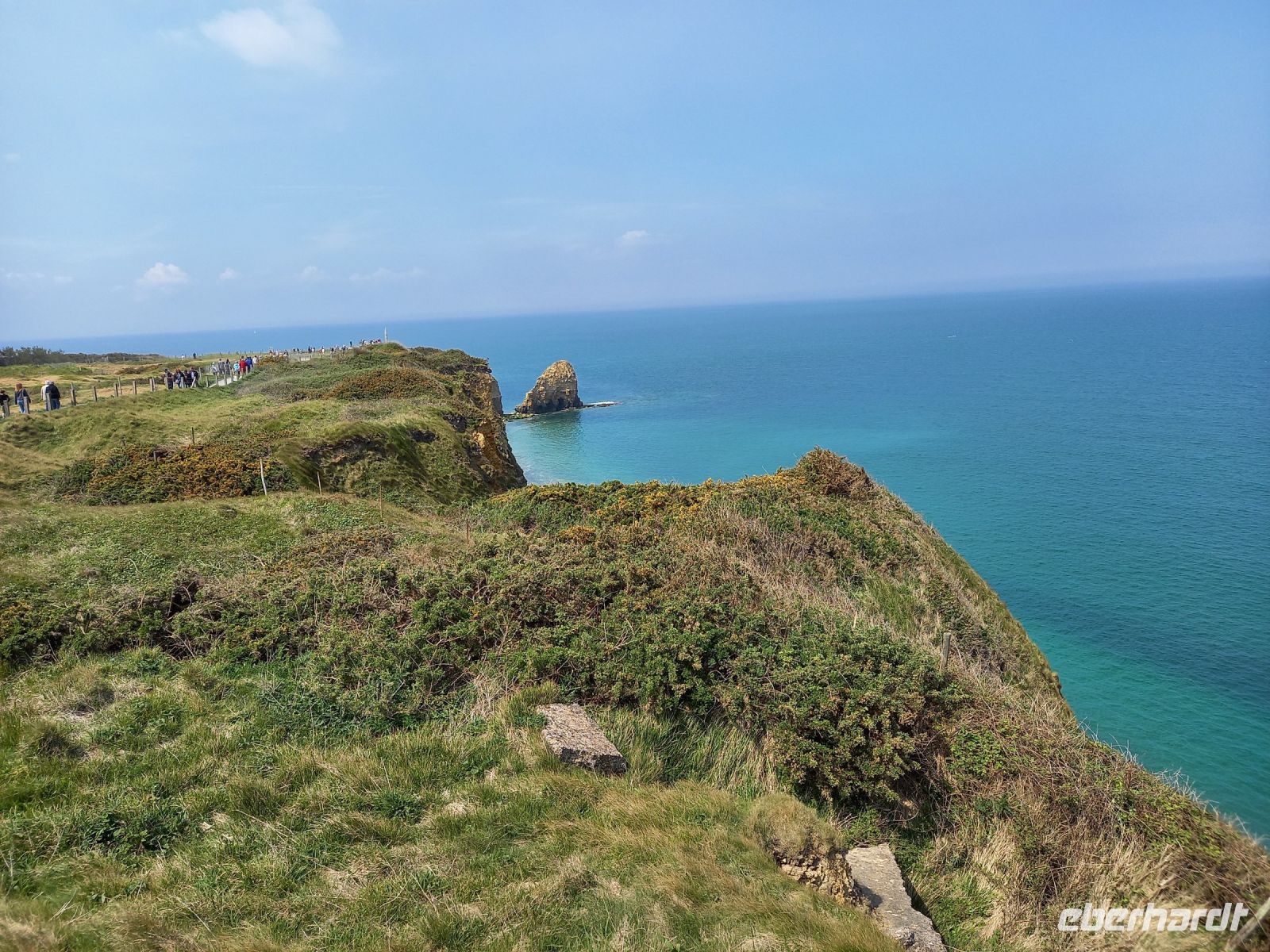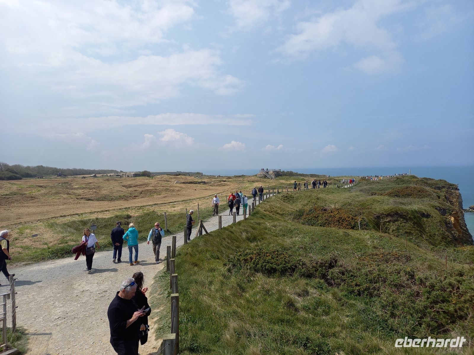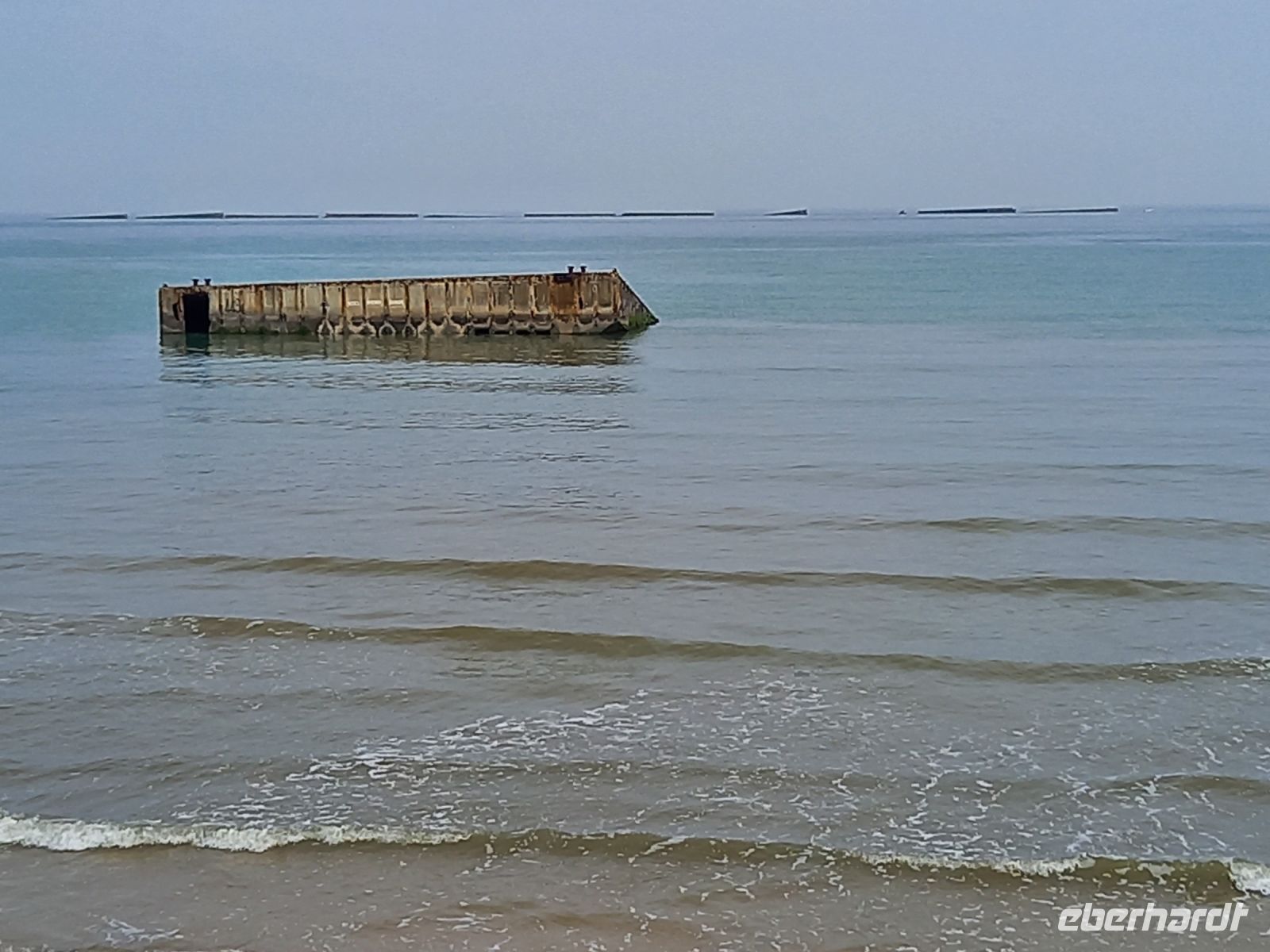 Der heutige Tag war fast vollständig der berühmten „Landungsküste“ gewidmet, die nördlich der zweitgrößten normannischen Stadt Caen beginnt. Es handelt sich um die normannischen Küstenabschnitte, an denen die bis heute größte Landungsoperation der Militärgeschichte stattfand: die Landung der Aliierten am sogenannten D-Day. Diese wohl bedeutendste Aktion des 2. Weltkrieges führte letztlich dessen Kriegsende herbei. Im Juni 1944 waren hier mehr als 4000 Schiffe der Aliierten an der Operation „Overlord“ beteiligt. Von England aus setzten Landungstruppen der gegen Deutschland verbündeten Armeen an einer der schwierigsten Stellen über den Ärmelkanal und starteten ihren Überraschungsangriff auf die deutsche Westfront. Der erste Fotostopp galt einer strategisch wichtigen Hubbrücke, die zu Beginn des alliierten Angriffs von britischen Luftlandetruppen erobert wurden. Wir fuhren danach auf der alten Straße, die euch schon damals die Strandabschnitte und die ehemals deutschen Geschützbatterien verbunden hatte. Da die Küste war für eine Landung nicht geeignet war, mußten die Allierten ihre Häfen mitbringen - sie bauten Molen und Anlegeplätze mit Hilfe von betongefüllten riesigen Senkkästen. Zunächst zwischen Schiffen transportiert, wurden sie an der Landungsküste zu Boden gelassen. „Mulberry“-Häfen wurden sie genannt und insgesamt 33 davon wurden errichtet. Zumindest bei Ebbe sind fast viele von ihnen bis heute zu sehen. Man findet sie – ebenso wie Resten der großen Schwimmpontons und Landungsflöße an einem der zentralen Landungsorte: in Arromanches. Die Spuren dieser einst so bedeutsamen Ereignisse unserer jüngeren Geschichte sieht man sowohl von ehemaligen Bunkern als Aussichtspunkte, aber auch direkt am Strand von Arromanches, wo wir Zeit für einen Bummel oder im Besuch des „Landungsmuseums“ hatten. Später setzten wir unsere Fahrt fort und besuchten noch die Reste der ehemaligen deutschen Geschützstellung an der Pointe du Hoc, den größten und überaus gepflegten deutschen Soldatenfriedhof bei La Cambe und die in die Landungsoperationen einbezogene alte Kirche von Sainte-Mere Eglise. Später ging es auf Landstraßen und Autobahn und quer durch die normannische Halbinsel Cotentin bis in die Bretagne. Schon unterwegs hatten wir einen Ausblick auf den bergartig aus der Nordsee herausragenden Höhepunkt des morgigen Tages, den Mont St.Michel. Später erreichten wir unser Hotel in Saint Malo und wohnten direkt an der alten Burg der Korsarenstadt, neben dem Eingangstor zur Altstadt im Hotel, das heute im Geburtshaus des französischen Schrifstellers und Diplomaten François-René de Chateaubriand untergebracht ist.