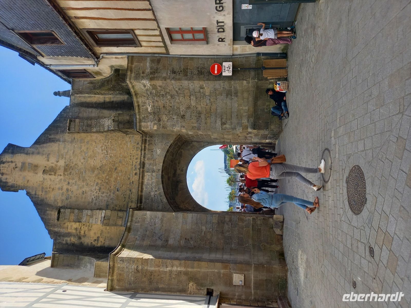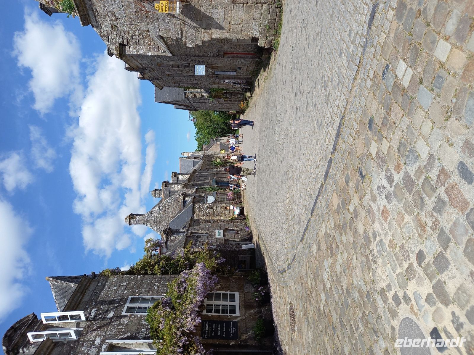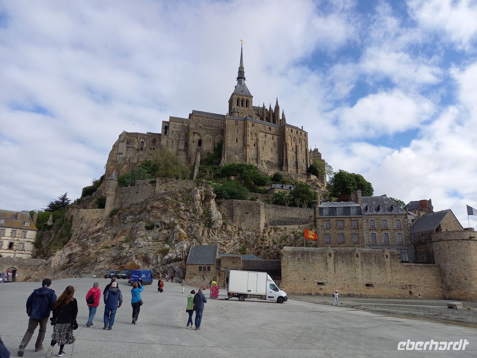 Bereits im Mittelalter wurde unser heutiges Hauptziel „Das Wunder des Abendlandes“ genannt. Den Mont St.Michel lernten wir bei herrlichem Wetter kennen. Bereits 1979 wurde der Klosterberg in die Liste des UNESCO-Weltkulurerbes aufgenommen - auf einem etwa 80 m hohen Felsen erhebt sich der wie eine Burg befestigte Klosterberg mitten aus einer von starken Gezeiten geprägten Bucht. Viele Jahrhunderte lang erlebte der mit starken Befestigungsanlagen umgürtete Wallfahrtsort emsige Ausbautätigkeit. In verschiedenen Perioden entstanden gewaltige, massiv aufstrebende turmhohe Stützmauern, die die schier unglaubliche Last der Aufbauten zahlreicher Profangebäude, Schlossbauten, Kirchen und schließlich eines gewaltigen Klosters tragen, an dem weit über 500 Jahre gebaut wurde – umschlossen von Verteidigungsanlagen, die zusammen mit Sand und Wellen der umgebenden Gezeitenbucht den Wallfahrtsort zu einer uneinnehmbaren Festung machten. Die Spitze der großartigen gotischen Kirchenanlage, gekrönt von der Figur des namengebenden Erzengels Michael, ragt heute über 150 m in den Himmel. Immer wieder erstrahlt der Mont St.-Michel anders durch das Spiel des Lichtes auf dem Wasser oder in den Strahlen der Sonne über Mittag oder in der Dämmerung. Über die Treppen und alten Wehrgänge, mitten durch die atemberaubenden Architektur hindurch, erreichten wir nach doch recht anstrengendem Aufstieg den Eingang zum Inneren des Klosterberges, wo ich Eintrittskarten und Audioguides holte und mich mit den Gästen durch das Innere der technischen Meisterleistungen auf eine Zeitreise durch die Vergangenheit begab. Bis heute lassen die gewaltigen Bauten, die Einmaligkeit des Ortes und die bis heute spürbare Mystik erahnen, warum dieser Ort Wundergeschichten hervorrief und über Jahrhunderte einer der wichtigsten Wallfahrtsorte der Christenheit war. Beim Verlassen des „Wunders des Abendlandes“ waren wir etwas überrascht von den unglaublichen Menschenmassen, die sich hier drängten. Nach der Freizeit trafen wir uns wieder am Busparkplatz, wohin Shuttlebusse oder ein längerer Fußmarsch die Besucher bringen. Wir fuhren später entlang der Küstenstraße in deie „Hauptstadt der bretonischen Austernzucht“ nach Cancale. Unterwegs konnten wir in einem Wirtschaftshafen einige „Austernboote“ fotografieren und einen Blick zu einer „Austernschule“ werfen. Wir erfuhren, dass die hier gezüchteten und „geernteten“ Austern, die weltweit und seit Jahrhunderten als teure Delikatessen gelten, nur über größere Entfernungen in verschickt werden können, indem man sie vor dem Versand in einer „Austernschule“ dazu bringt, sich länger als in der Natur üblich geschlossen zu halten – denn nur frisch geöffnete Austern sind genießbar. Von ihrem Geschmack konnten wir uns wenig später am Hafen von Cancale überzeugen, wo alle, die es gern probieren wollten, in Sichtweite der durch die Ebbe gerade freigelegten Austernbänke ein oder mehrere vom Profi frisch geöffnete und gerade „erntefrische“ Austern schlürften. Nach dem Genuss am Meer fuhren wir zurück nach St. Malo, wo alle, die wollten, mit mir einen Spaziergang durch die Altstadt und auf der Stadtmauer machten. Seit langem ist der Hafenort und seine „Intra muros“ genannte Altstadt Sitz einer Seefahrtschule und für wagemutige Seehelden bekannt. In der verbleibenden Freizeit konnte sich jeder noch selbst von den Reizen der einstigen „Korsarenstadt“ überzeugen, denn unser Hotel lag ja genau am Ausgang der ummauerten Altstadt.