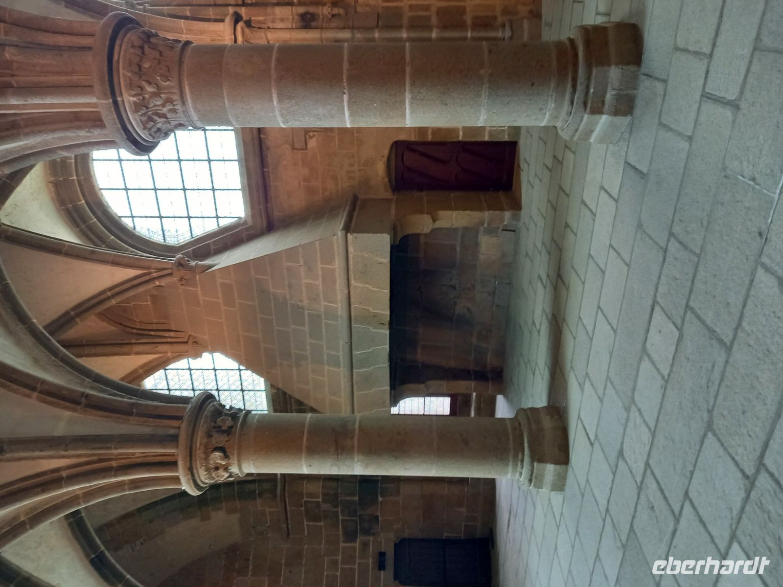 Heute stand die erste Etappe unserer Heimreise an! Wir verließen die Bretagne auf der Schnellstraße und erreichten, an der einstigen bretonischen Hauptstadt Nantes vorbei, die historisch bedeutsame französische Landschaft des Anjou. Ein besonderes Besichtigungshighlight ist das wehrhafte Schloss in dessen Hauptstadt Angers. Ihre 30 m hohen gewaltigen Verteidigungstürme erheben sich auf einer Anhöhe über dem Fluss Maine, der unweit von hier in die Loire fließt. Zwar sind Teile des Schlosses nur noch als Ruine erhalten, aber in einer vor einigen Jahren hier eingebauten langen Galerie wird einer der bedeutendsten Schätze des französischen Mittelalters präsentiert: bekannt als „Teppiche der Apokalypse“ zeigt das größte erhaltene Textilkunstwerk des Mittelalters Motive des letzten Teils des Neuen Testaments der Bibel. Die Bilder aus der Offenbarung des Johannes hatten eine herrlich bebilderte Bibelabschrift als Vorlage und sind ein gewebter und gewirkter farbiger Bildteppich-Zyklus, den während des hundertjährigen Krieges der Herzog von Anjou als „köstlichen Bildteppich“ in Auftrag gab. Mit einer Länge von etwa 100 m und einer Höhe von 4,50 m stellt er selbst den berühmten, über 70 m langen Bildteppich aus Bayeux in den Schatten und drückt – im Gegensatz zu diesem, der Szenen aus der Eroberungsgeschichte Englands durch die Normannen zeigt – die Ängste und den Aberglauben der mittelalterlichen Menschen über die Schrecken des bevorstehenden Weltunterganges aus. Wir hatten Zeit und Muße, das einzigartige Kunstwerk zu genießen und vielleicht noch einen kurzen Bummel durch die neben dem Schloss liegende Altstadt zu machen. . Nach Angers führte unsere Fahrt zum letzten Höhepunkt unserer Reise: der Kathedrale von Chartres. Sie gehört zu den schönsten und bekanntesten gotischen Sakralbauwerken weltweit. Auf der Liste des UNESCO-Weltkulturerbes steht sie schon lange und neben ihrer oft fotografierten Westfassade mit zwei flankierenden Türmen aus unterschiedlichen Bauperioden und einer herrlichen Fensterrose sind vor allem die Innenansichten der Kathedrale besonders. Das berühmte „Chartreser Blau“ der mittelalterlichen Glasfenster bringt je nach Sonnenlicht die faszinierende Raumwirkung des Bauwerks unterschiedlich zur Geltung bringt und in den Fußboden ist das berühmte Labyrinth von Chartres zu sehen – dieses Mal allerdings stark verdeckt durch die Bestuhlung der Kirche. Immer noch blieb Zeit für einen kleinen Altstadtbummel, bevor uns der Bus zum letzten Übernachtungsort unserer Reise, brachte, ins südöstlich von Paris gelegene Creteil