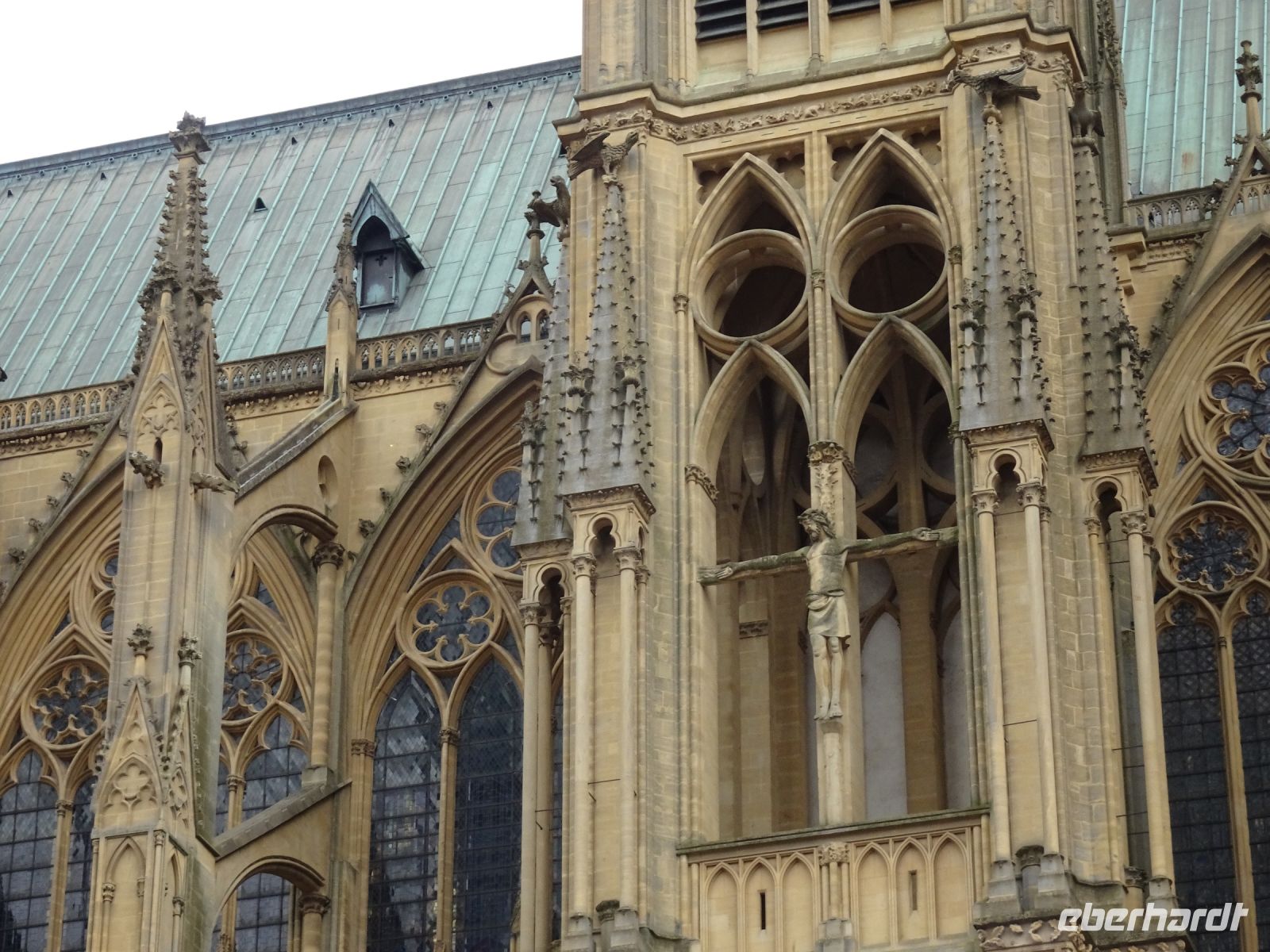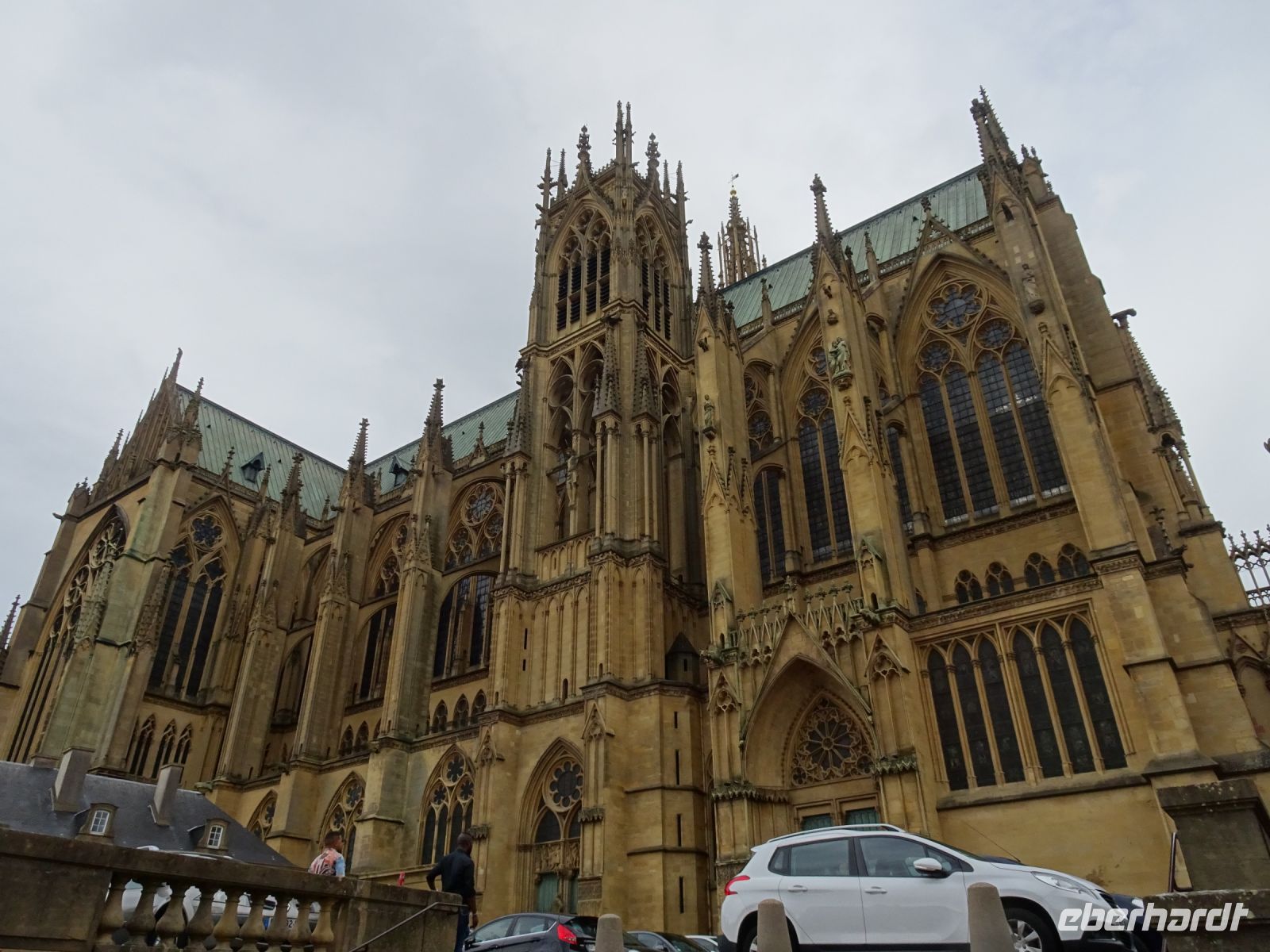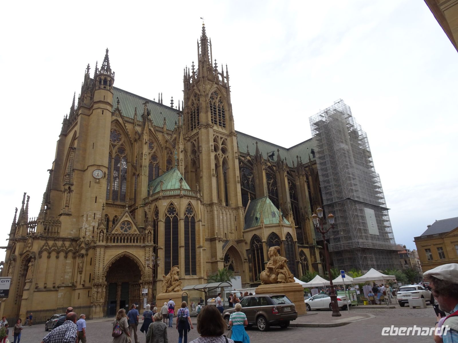 Das erste Ziel unserer Reise ist Metz, die Hauptstadt des Departements Moselle in der Region Grand-Est. Seit dem 1.1.2016 ist Frankreich in 12 Regionen und 96 Départements gegliedert. Ein echter Franzose kann die Départements an KFZ-Kennzeichen und Postleitzahl erkennen. Metz liegt beschaulich zu Füßen der Moselhöhen und blickt auf eine lange spannende Geschichte zurück. Ab dem 6. Jahrhundert residierten hier die Könige der Merowinger und der Karolinger. Am späten Nachmittag unternehmen wir einen Spaziergang durch Metz. Die Kathedrale St.-Étienne erwartet uns mit ihrem spektakulären Spiel aus Licht und Farben. Beeindruckend sind sowohl die unglaubliche Höhe, immerhin 42 Meter, als auch die vielen farbigen Fenster. Die berühmte Schwalbennestorgel ist leider eingerüstet und deshalb nicht zu sehen. Am Place St.-Louis, auf dem im Mittelalter ein Markt betrieben wurde, sind Arkadenhäuser zusehen, die aus dem 14. bis 16. Jahrhundert stammen und die viele Gäste auch schon in anderen Städten gesehen haben. Wir spazieren zur Mosel, überqueren eine Brücke und weiter geht es entlang des Place de la Comedie, wo wir das älteste noch bespielte Theater Frankreichs bewundern können. Auf dem Rückweg kommen wir an einem historisch einzigartigen Gebäude vorbei, der achteckigen Templerkapelle, die bis heute im Original erhalten geblieben ist. Pünktlich zum Abendessen sind wir zurück im Hotel. Als Vorspeise gibt es Patè Lorrain tradition, das sind mit Fleisch gefüllte Teigtaschen, eine der ältesten Spezialitäten Lothringens. Als Hauptgericht gibt es Blanquette de veau Reiz parfumé, also Kalbsfleisch mit aromatisierten Reis (butterzart) und zum Nachtisch wird véritable Créme Caramel gereicht.