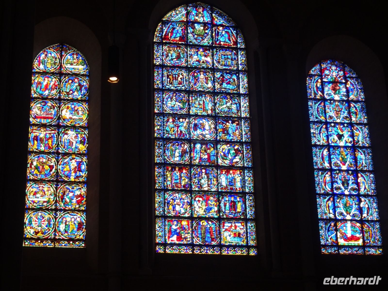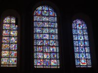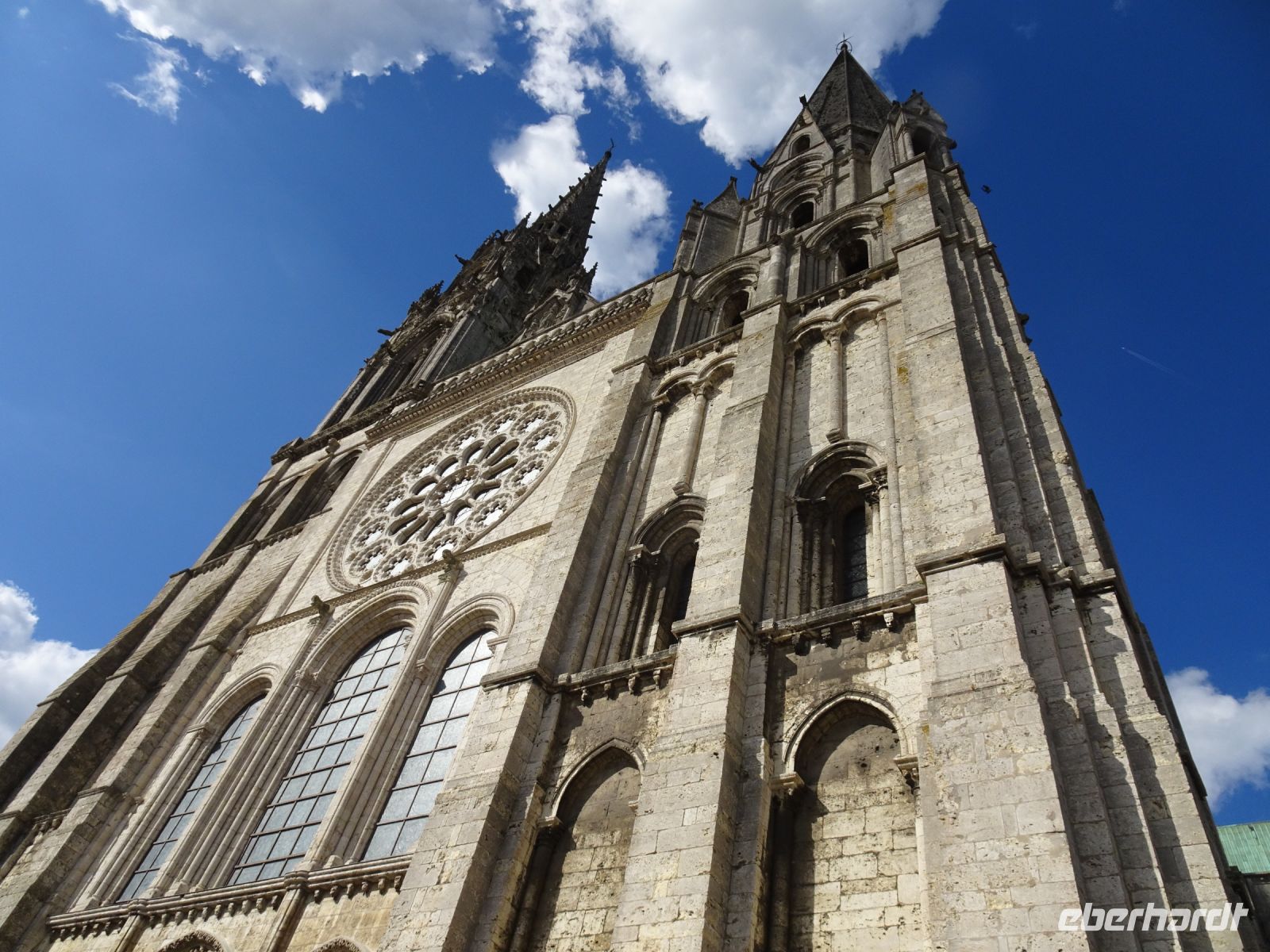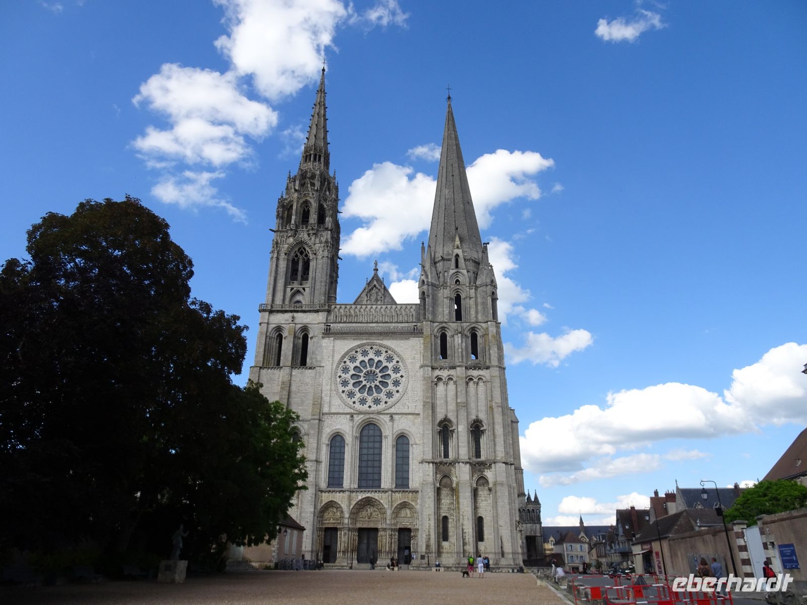 Nachmittags besuchen wir ein letztes Mal eine beeindruckende Kathedrale, diesmal in Chartres. Natürlich heißt auch diese Notre Dame, das kennen wir ja schon. Das Besondere an dieser Kathedrale sind die Fenster aus dem 13. Jahrhundert, die fast ausschließlich im Original erhalten sind. Darüber hinaus gibt es 181 Darstellungen der Jungfrau Maria und über 3500 Skulpturen, deren Anblick überwältigend ist. Auf dem Boden ist ein Labyrinth abgebildet, heute leider mit Stühlen zugestellt. 176 farbige Fenster, die dem „Chartres-Blau“ seinen Namen gaben.