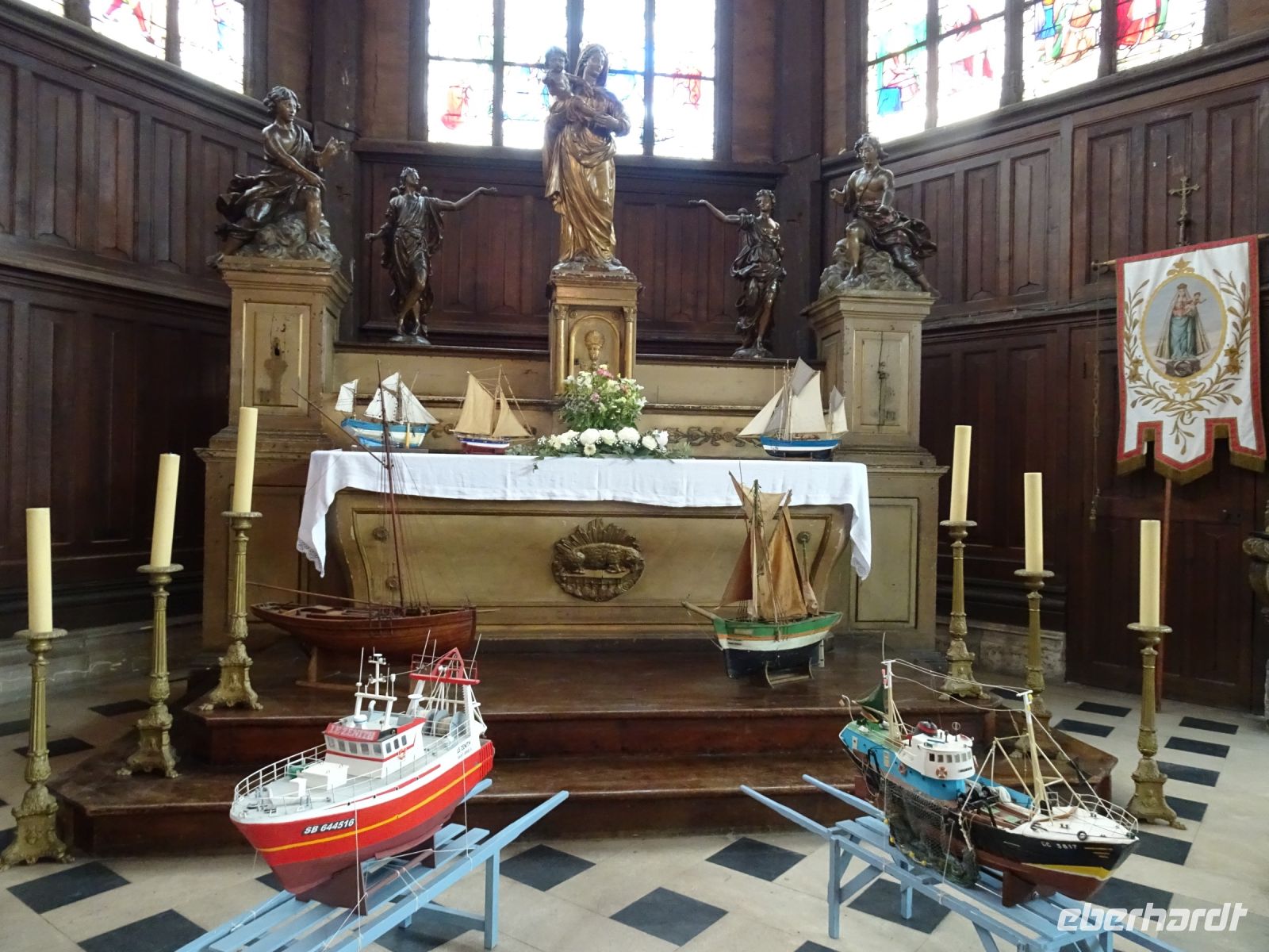 Ähnlich romantisch ist es in Honfleur, unserem letzten Aufenthalt für heute. Der alte Hafen bzw. das alte Hafenbecken auch Bassin genannt, blickt auf eine lange Geschichte zurück. König Ludwig XIV., der Sonnenkönig, ließ ihn anlegen. Die Franzosen scheinen Riesenräder und alte Karussels zu mögen, auch hier am Hafen drehen sich die Holzpferde im Kreis. Gassen und Gässchen, wo sich Galerie an Galerie reiht, laden zum Flanieren, Restaurants und Cafés zum Verweilen ein.