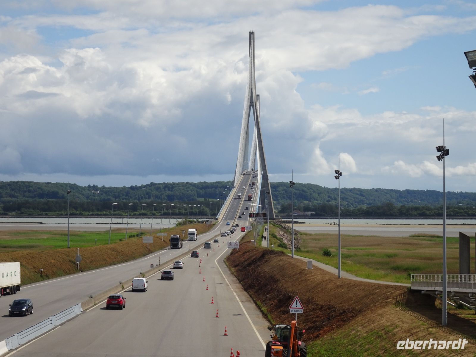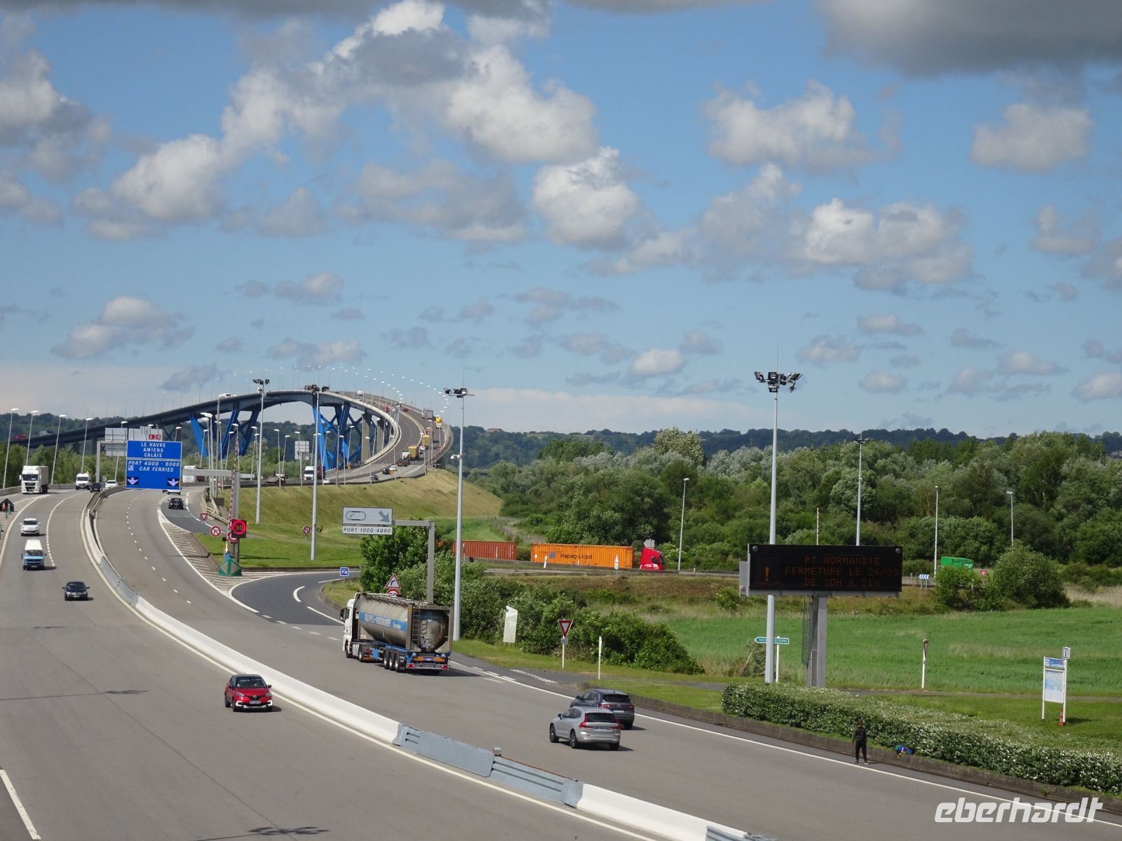 Die ersten Gäste sowie Daniel, unser Busfahrer, Michael und Sabine - Reiseleiter starten um 6.15 Uhr in Kesselsdorf am Firmensitz von Eberhardt TRAVEL. Zehn Tage soll es in die Normandie und die Bretagne gehen. Nach und nach füllt sich der Bus. Am Erzgebirge und dem Thüringer Wald vorbei erreichen wir gegen Mittag das Hessische Bergland. Südlich von Frankfurt am Main, in Pfungstadt und Grünstadt steigen die letzten Gäste ein. Bald darauf erreichen wir die deutsch-französische Grenze.