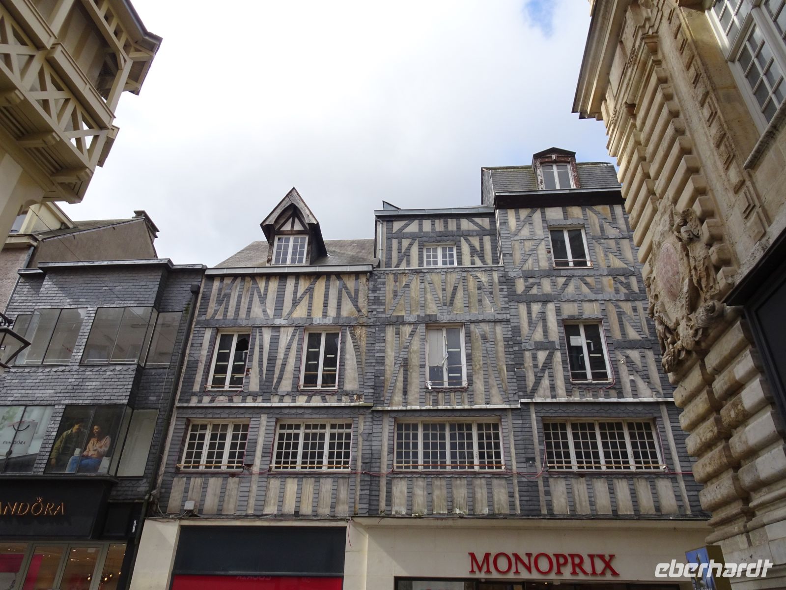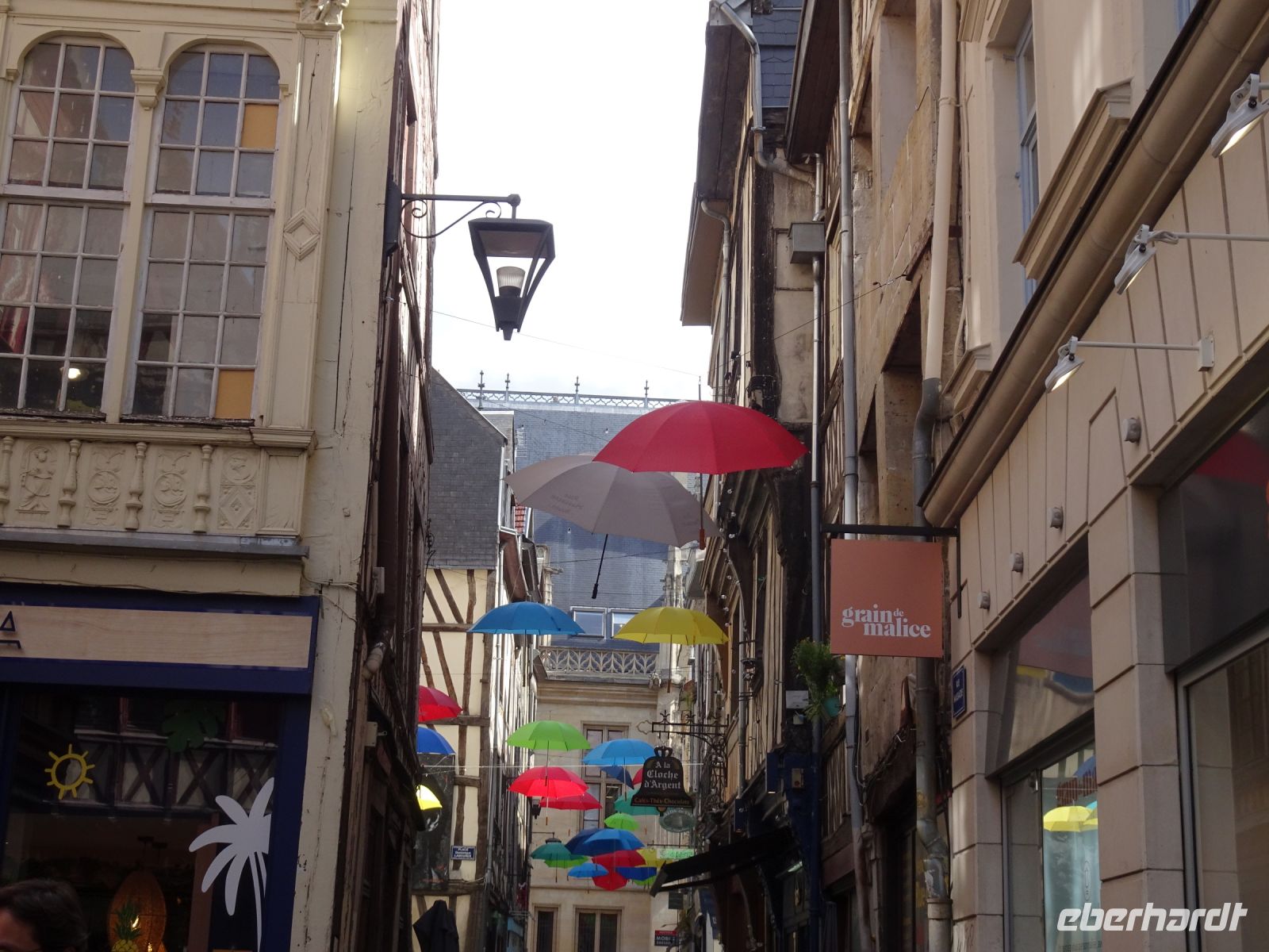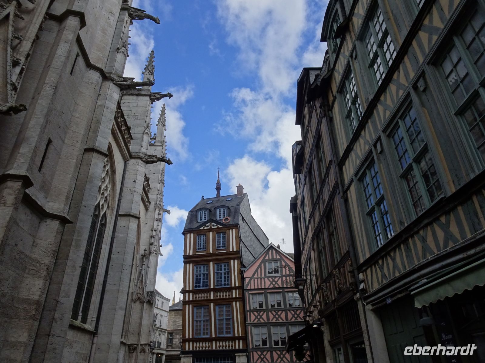 Eine Stunde haben wir Zeit Rouen auf eigene Faust zu erkunden. Fünf Minuten vor der Treffzeit fängt es fürchterlich an zu regnen, aber als wir losgehen, ist der Spuk schon wieder vorbei.