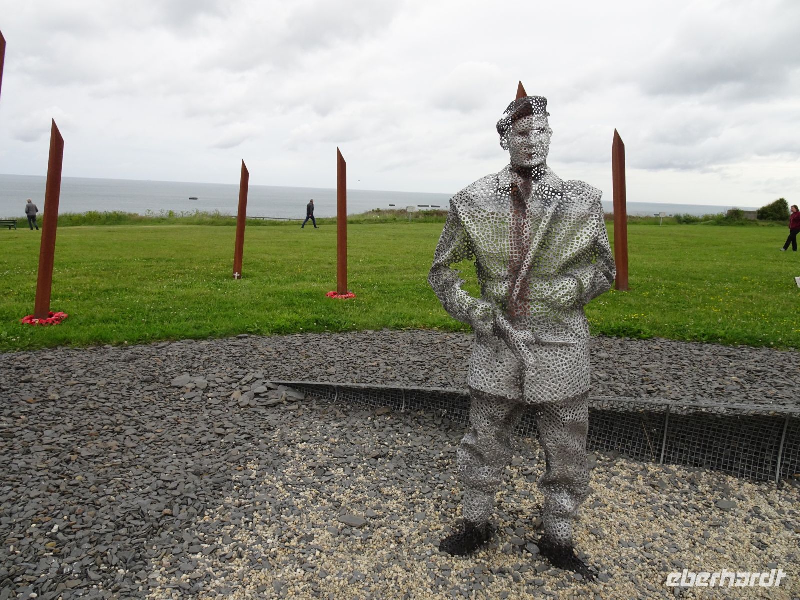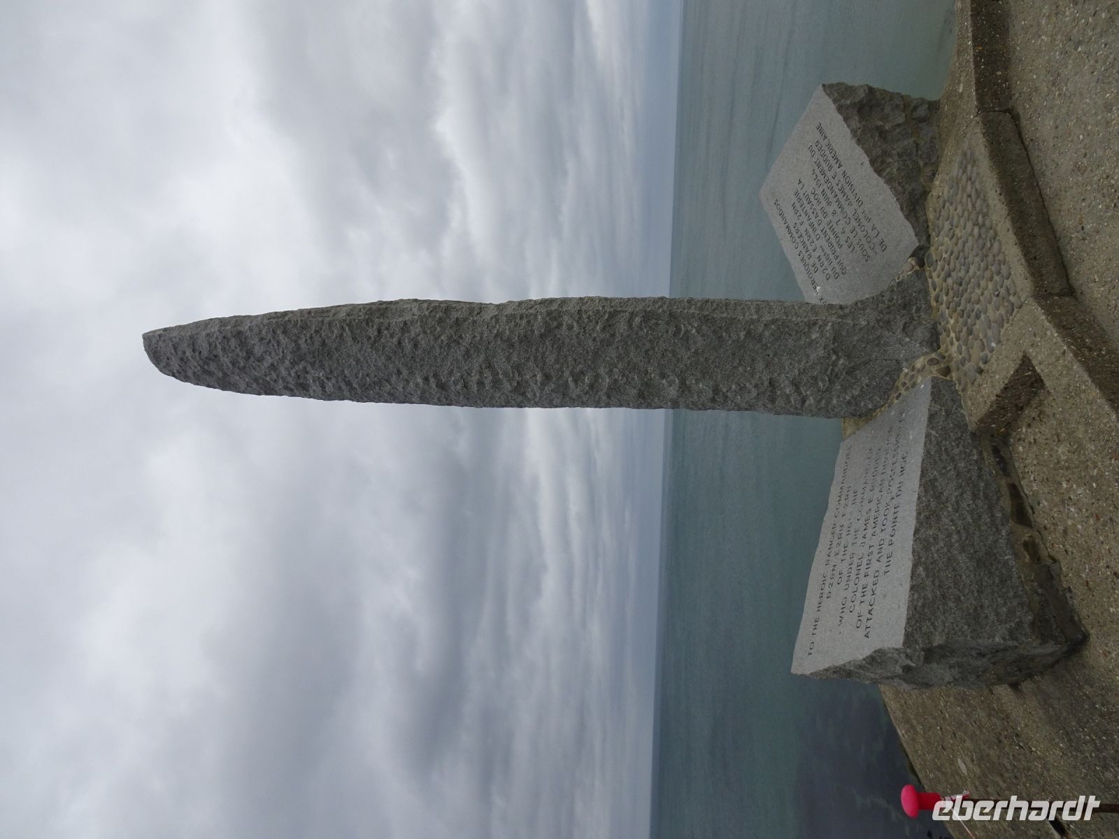 Für uns geht es weiter zum Pointe du Hoc, einer ehemaligen deutsche Stellung auf einem etwa dreißig Meter hohen Felsvorsprung über einem kleinen Kiesstrand. In einer wagemutigen Aktion erklommen Männer des 2. Rangerbataillons von unten den Felsen, um die Stellung zu erobern. 225 Ranger waren beteiligt, mehr als die Hälfte kam dabei ums Leben. Heute sind noch die tiefen Bombenkrater, Bunker und zerstörte Stellungen zu sehen. Das Denkmal in Form einer riesigen Granitspitze, das 1960 aufgestellt wurde, stellt einen Dolch dar, der in das Herz der Verteidigung des deutschen Atlantikwalls gerammt wurde.