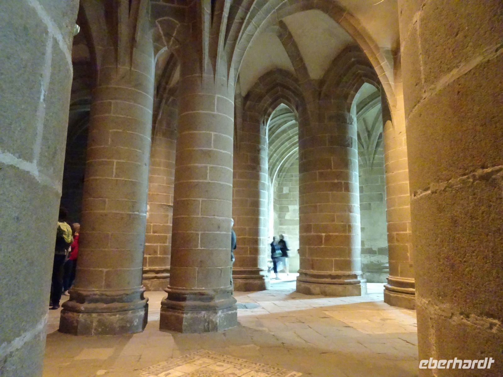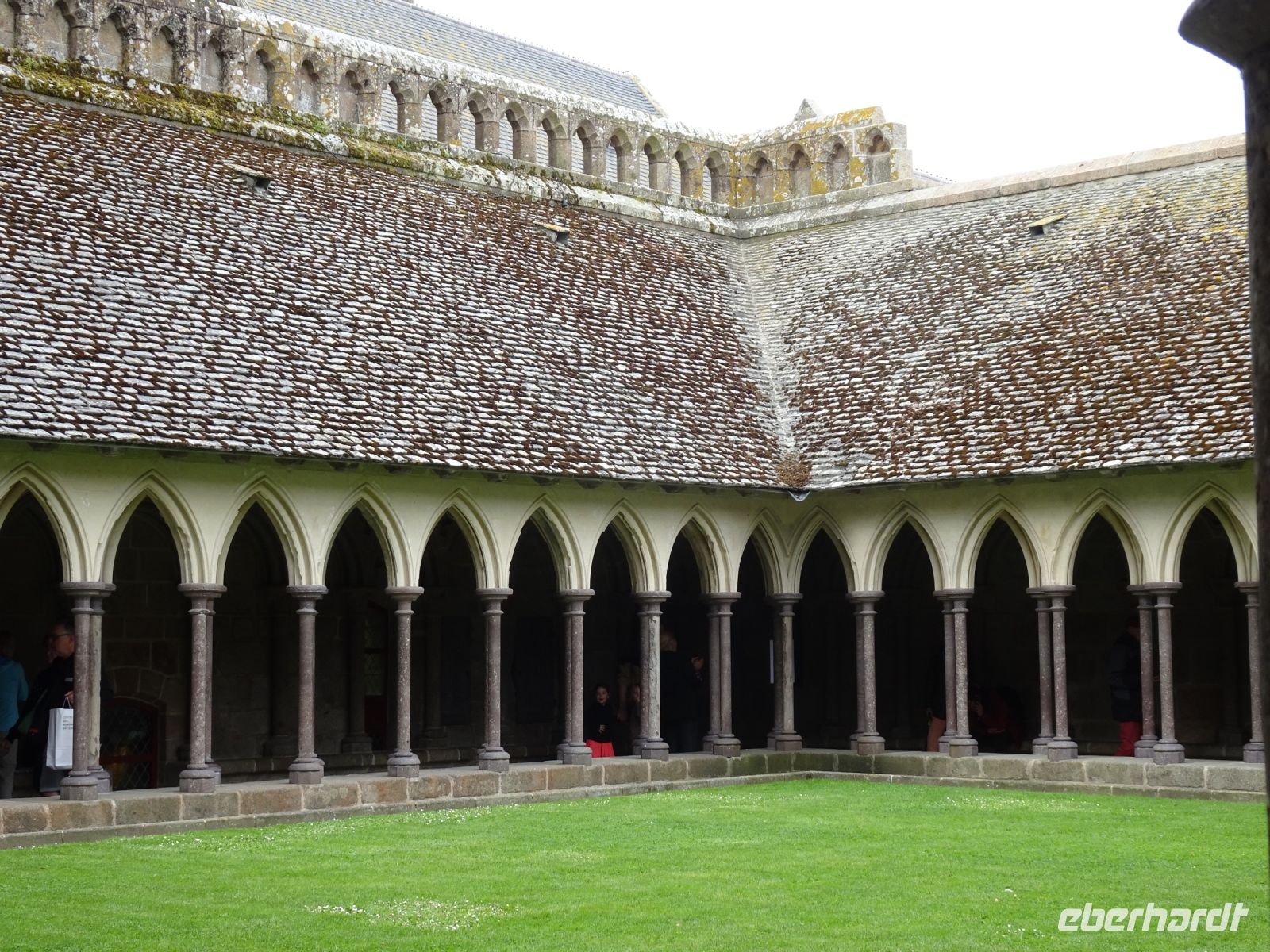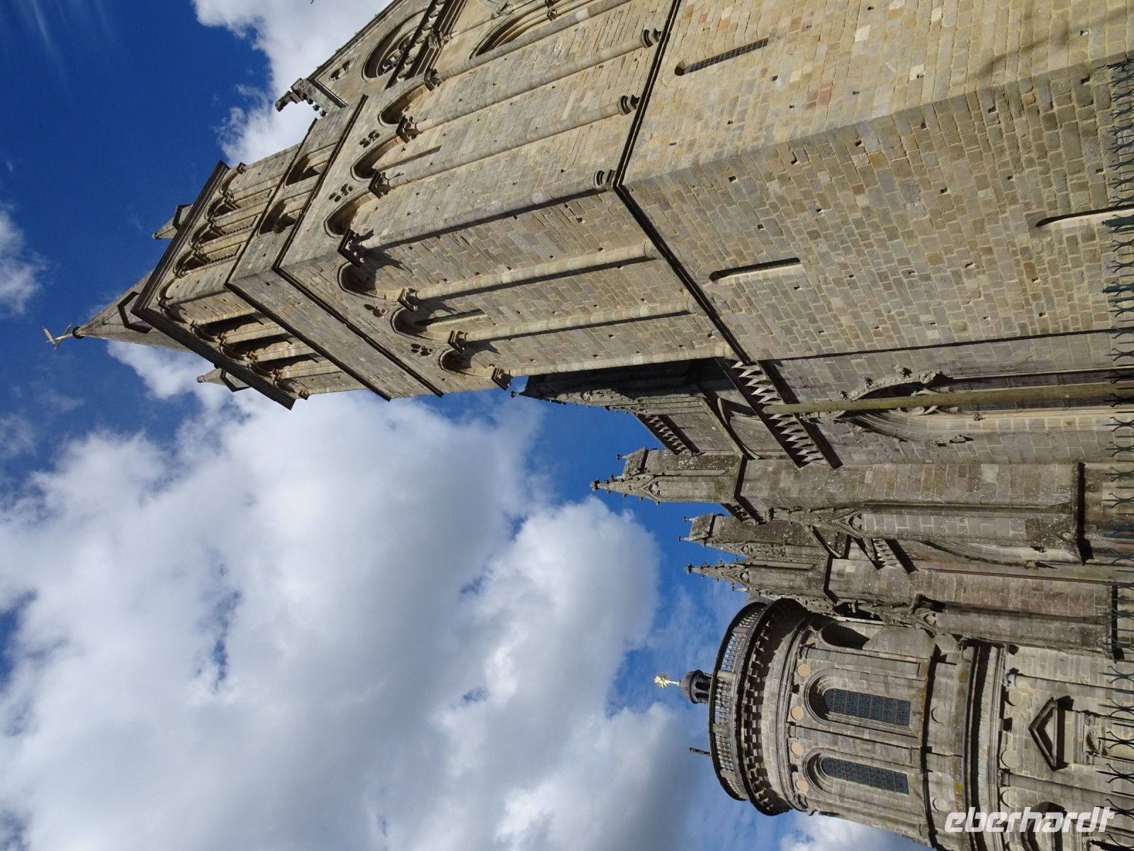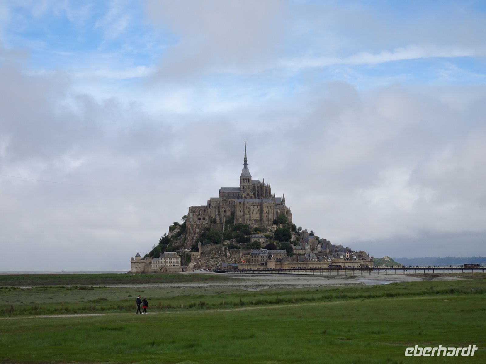 Heute stehen wir eine halbe Stunde früher auf, denn wir wollen möglichst unter den Ersten am Saint Mont Michel sein. Diese Entscheidung bereuen wir nicht. Etwa eine Stunde fahren wir mit unserem Bus bis zum Parkplatz in der Nähe vom Mont Saint-Michel. Von hier fahren wir mit dem Shuttlebus weiter und noch weiter geht es zu Fuß. Die schönsten Fotos entstehen hier. Noch ist der Himmel grau in grau, später aber scheint auch ab und zu die Sonne. Langsam bekommen wir einen Eindruck davon, warum wir früher aufgestanden sind. Wir sind definitiv nicht die einzigen Besucher. Ausgestattet mit Audioguides kann jeder nach eigenem Belieben das Kloster von Innen besichtigen. Zurück geht es durch eine enge Gasse mit dutzenden Souvenirläden und Imbiss-Ständen. Und es ist voll, richtig voll. Dennoch schaffen es alle, pünktlich zurück am Bus zu sein. Einige nutzen den Shuttlebus, andere gehen zu Fuß.
