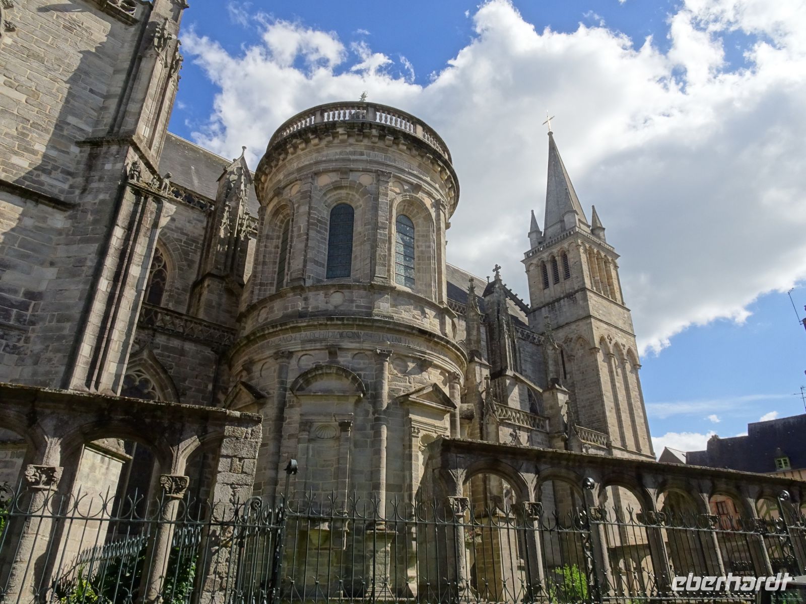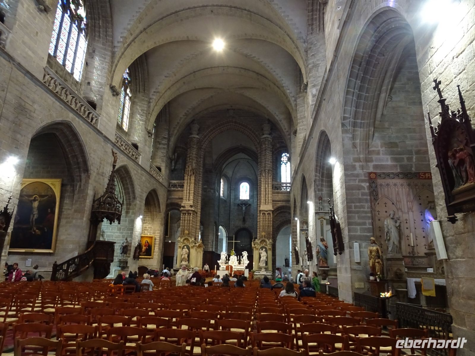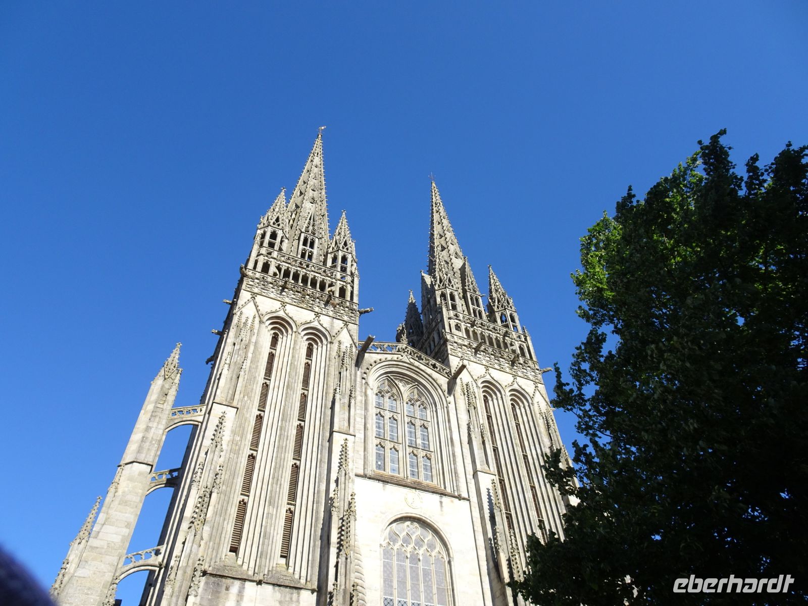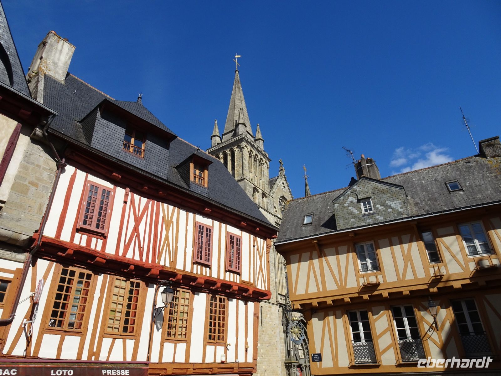 Noch vor dem Abendessen erreichen wir Vannes. Auf einem Spaziergang flanieren wir am Schloss vorbei und werfen einen Blick auf das historische Waschhaus. Wir durchqueren die dicke mittelalterliche Stadtmauer und erreichen bald die Kathedrale. Von 17.45 bis 18.00 Uhr läuten ohrenbetäubend genau jetzt die Glocken und laden zum Gottesdienst ein.