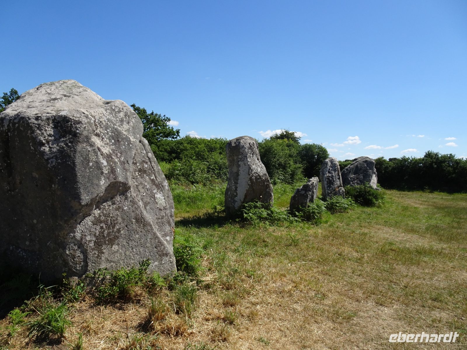Einen längeren Aufenthalt legen wir an den Menhirfeldern ein. Warum hier, lange vor unserer Zeit, 1170 Steine in elf Reihen fast schnurgerade aufgestellt wurden, weiß man nicht. Beeindruckend ist es dennoch.