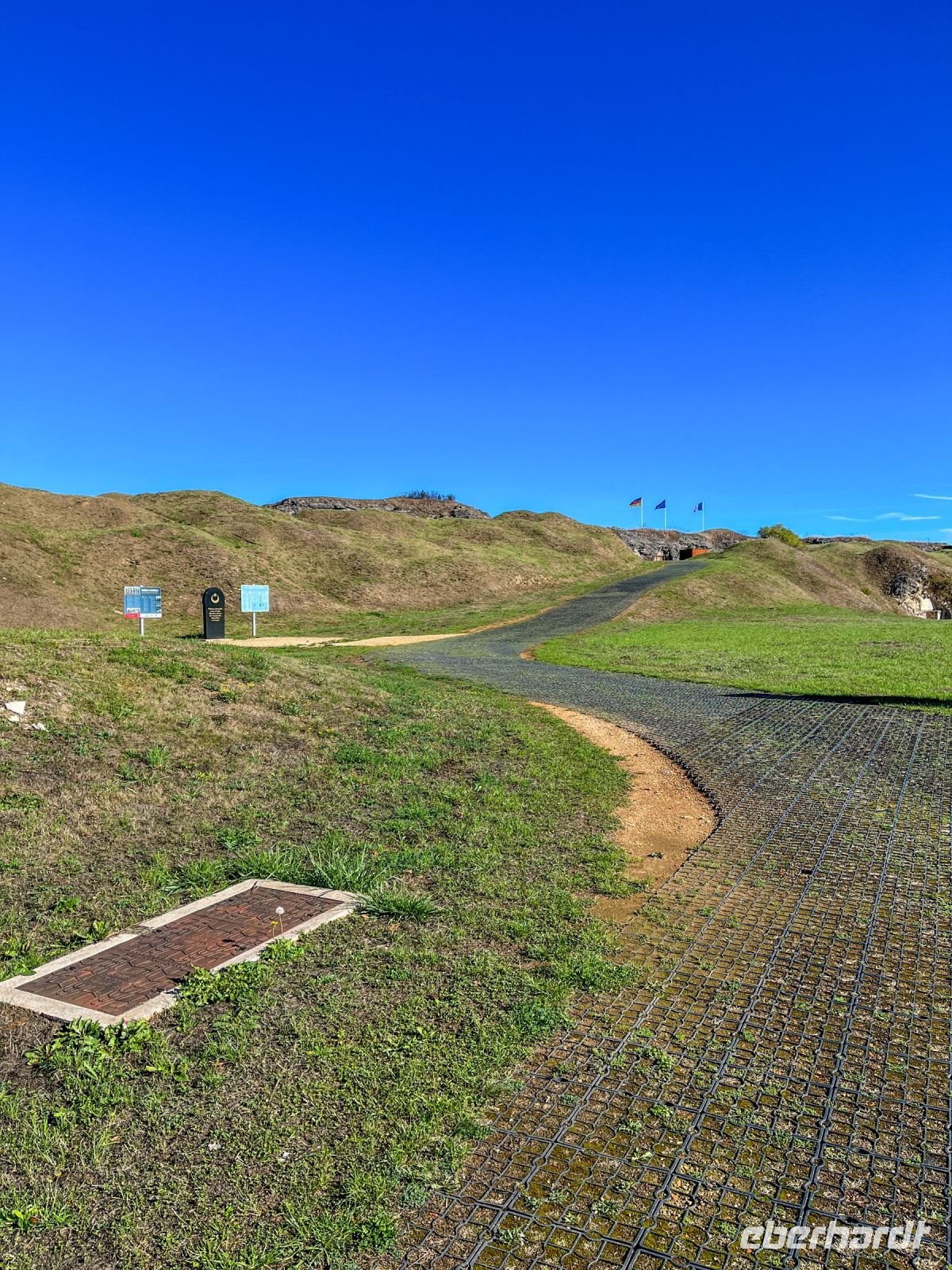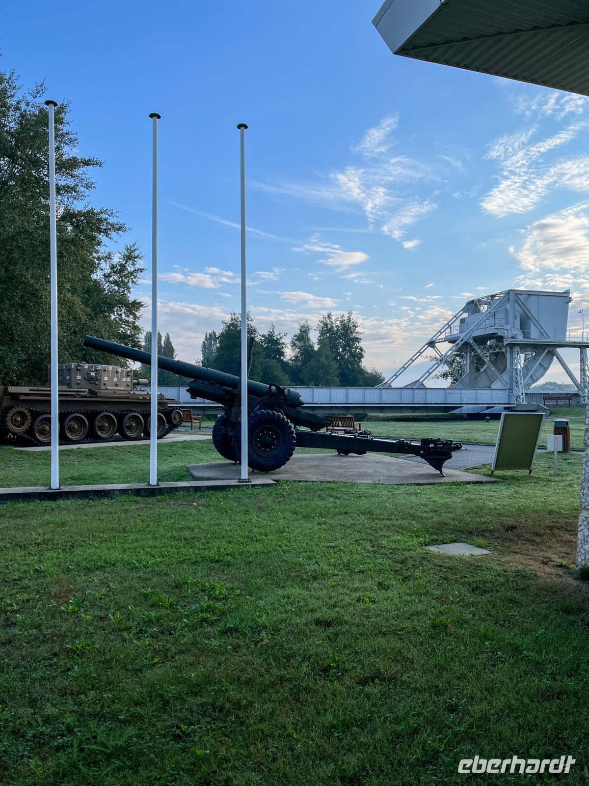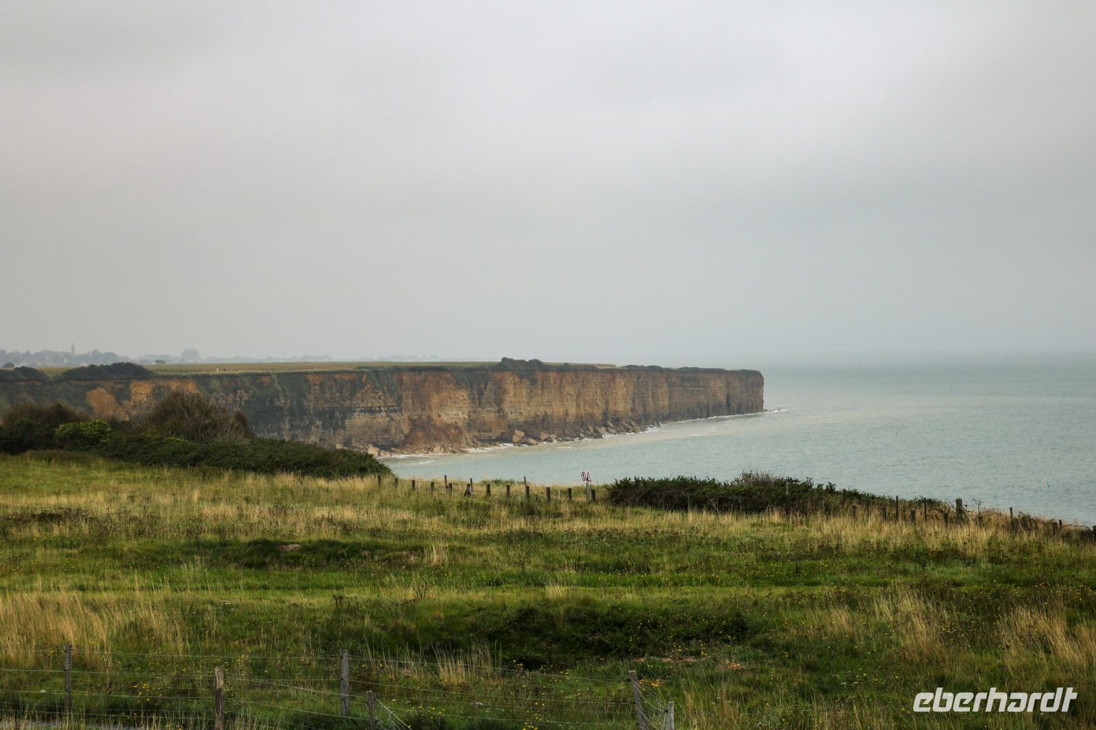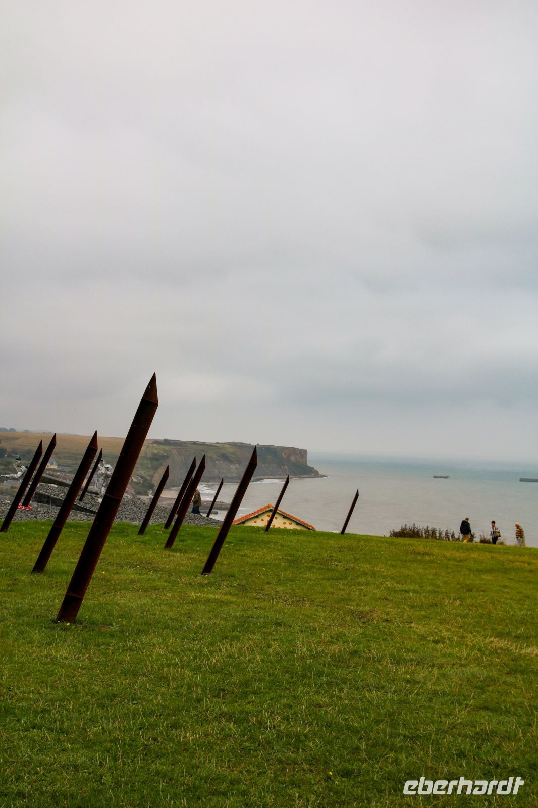 Vor ein paar Tagen widmeten wir uns dem Ersten Weltkrieg, an diesem Tag ging es um den Zweiten Weltkrieg, genauer gesagt um die Operation Overlord. Der D-Day wird im Film „Der längste Tag“ von 1962 behandelt und unser Tag an der Küste der Normandie stand ganz im Zeichen dieses Films. Nach dem Frühstück besichtigten wir unser erstes Ziel: die Pegasus Bridge. Die doch sehr besondere Brückenkonstruktion galt als erstes Ziel der alliierten Landung in der Normandie. Hier sicherten die Truppen am 6. Juni 1944 eine von 2 Brücken über den Fluss Orne. Unsere Tour setzten wir in Richtung Westen fort. Unser Ziel waren die insgesamt über 100 Kilometer lange Strandabschnitte, an denen Amerikaner, Briten und Kanadier das Festland von Europa erreichten. Wir fuhren entlang der Küste und besichtigten zuerst eine deutsche Stellung mit einer großen Radaranlage und sehr gut erhaltenen Bunkeranlagen. Wir erhielten eine fachkundige Erklärung über die Vorgänge und Funktionsweise der großen Anlage. Unser Weg führte uns weiter in Richtung Arromanches, wo sich das Musée du Débarquement befindet. Ein paar von uns entschieden sich, dieses Museum anzusehen und einige machten einen Spaziergang entlang der eindrucksvollen Küste und der schönen Ortschaft. Hier errichteten die Briten einen riesigen Behelfshafen, einen sogenannten Mulberry Hafen. Damit wurde der Nachschub von Versorgungsgütern, Soldaten und Fahrzeugen in einer Region ohne große Häfen gesichert. Dabei mussten die Bauteile für die Hafenanlage den ganzen Weg über den Ärmelkanal gezogen werden.