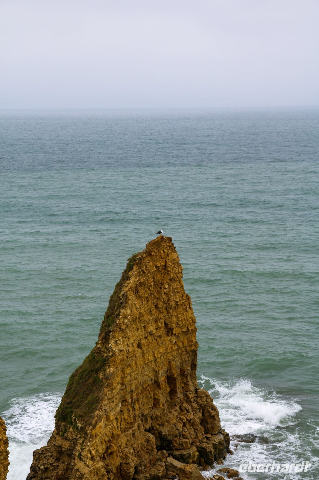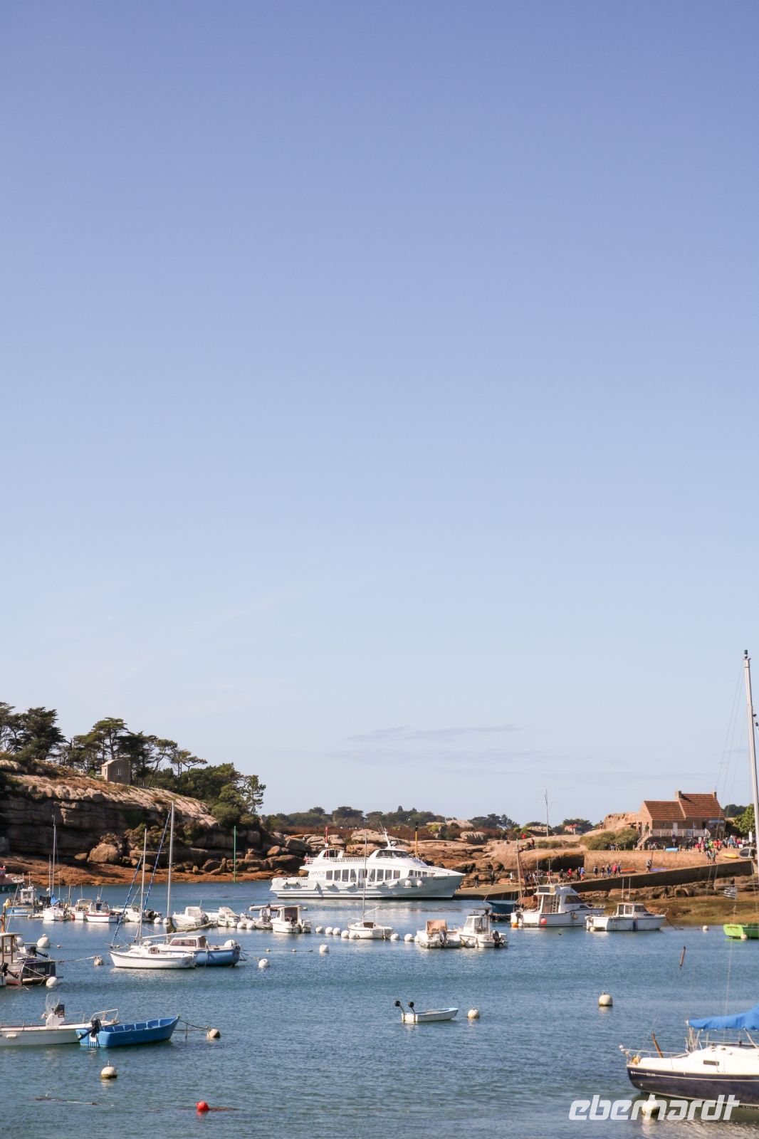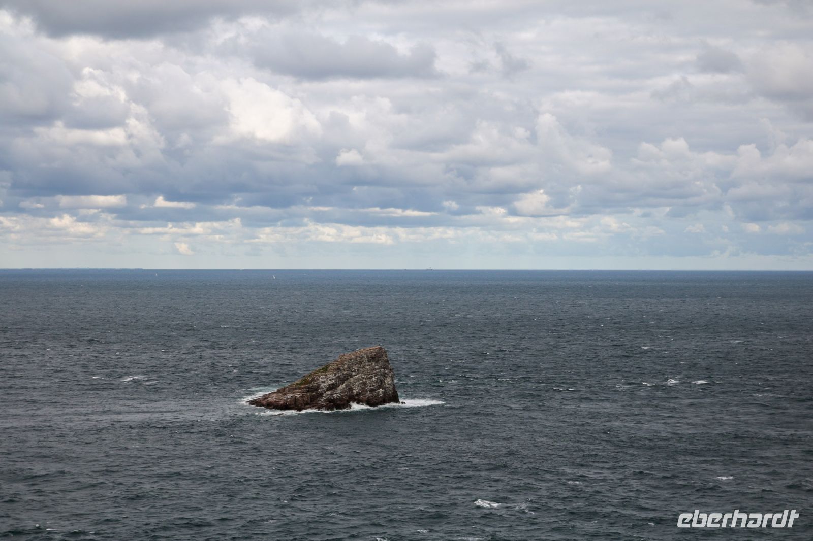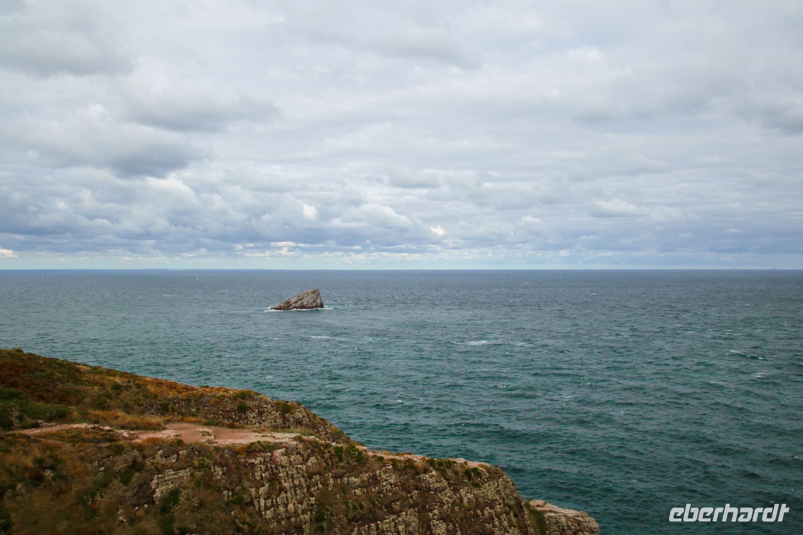 Als nächstes statteten wir dem Cap Frehel einen Besuch ab. Es bietet sich ein tolles Naturschauspiel, wenn die Wellen an die bis zu 70 Meter hohen Klippen und die im Wasser liegenden Felsen schlagen. Hier konnten wir auch einen ersten Ausblick auf die besonderen rosa und roten Gesteine werfen, die uns auf unserem Weg noch begegnen werden. Alles rund um die Steilküste gehört zu einer etwa 400 Hektar großen Heidelandschaft und zu einem Vogelschutzgebiet. Hier nistet sogar eine seltene Pinguinart! Der Leuchtturm des Caps zählt zu einem der hellsten in ganz Frankreich. Sein Leuchtfeuer kann man bis zu 53 Kilometer weit erblicken!
