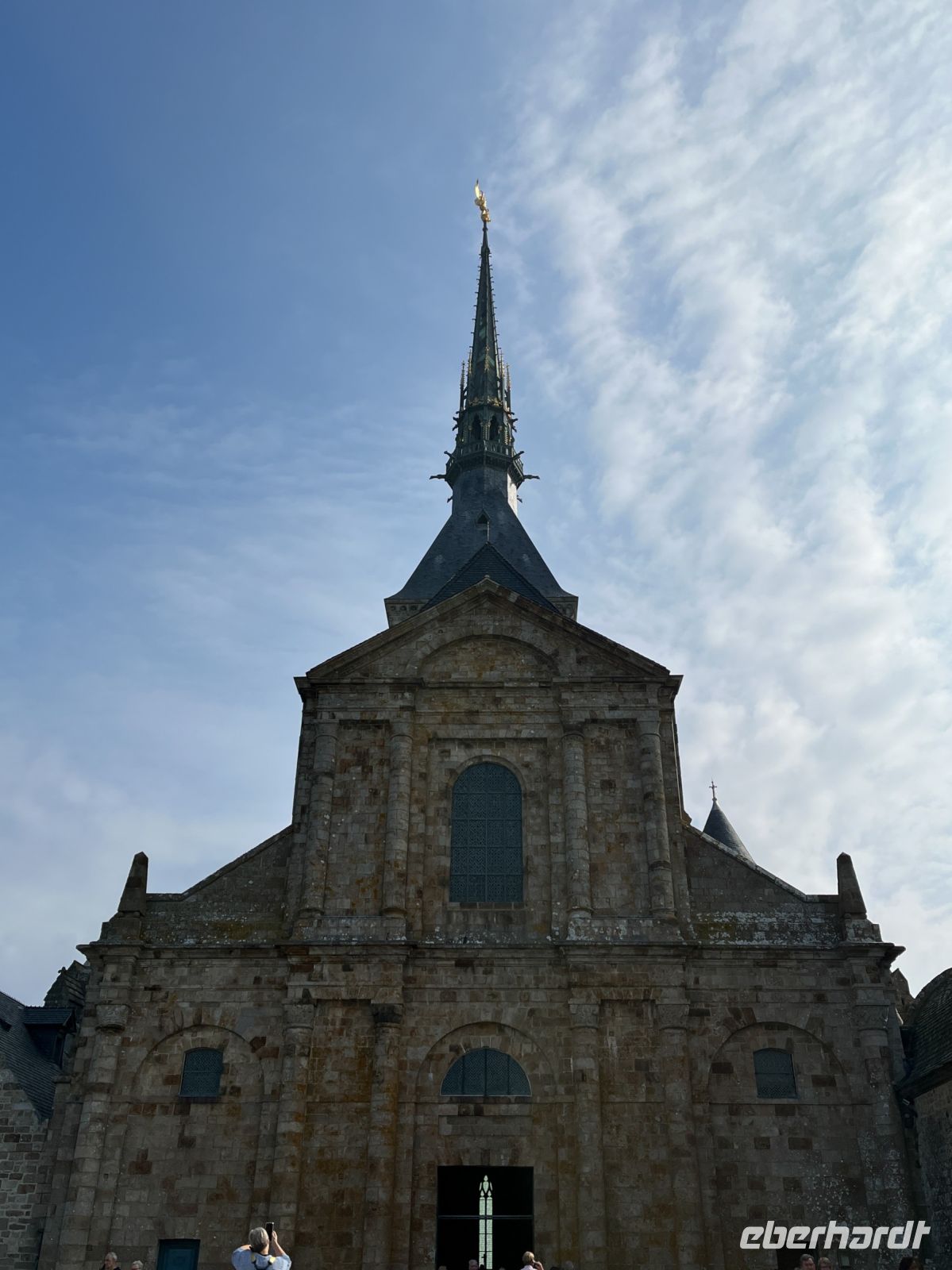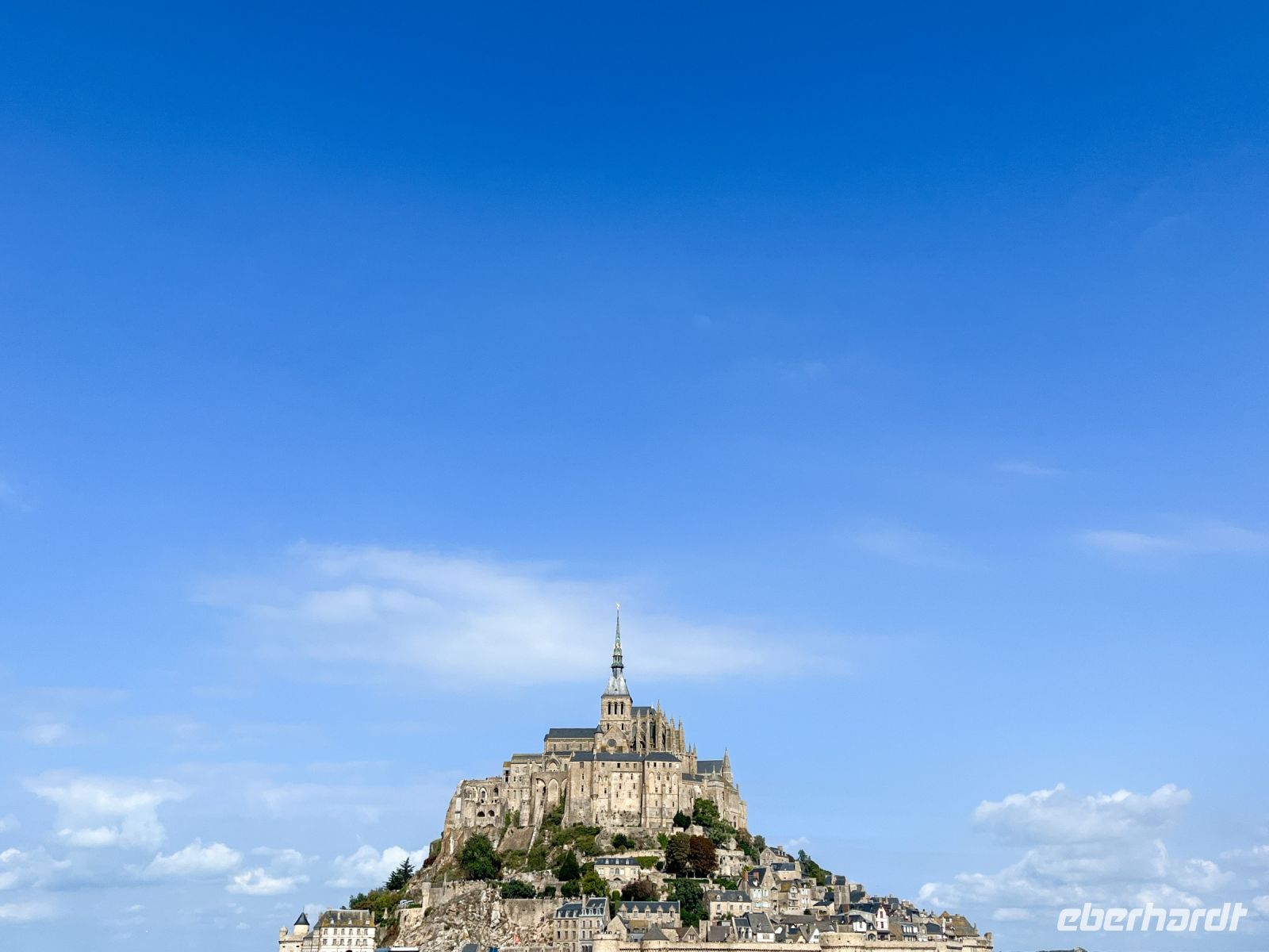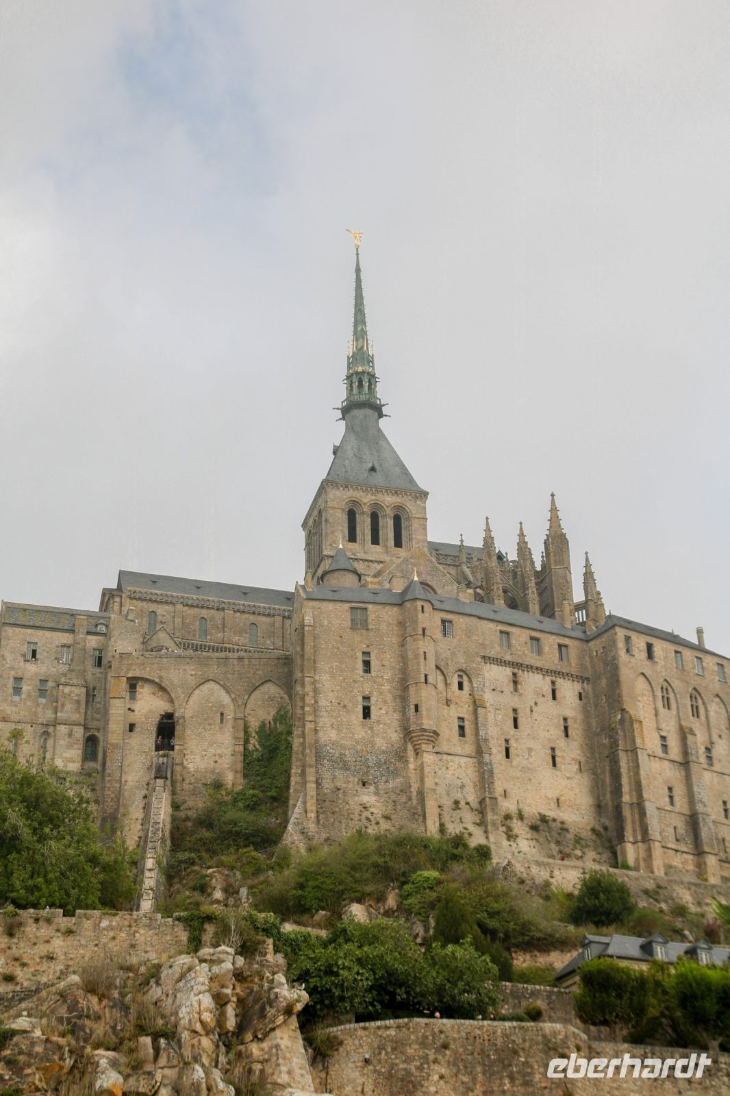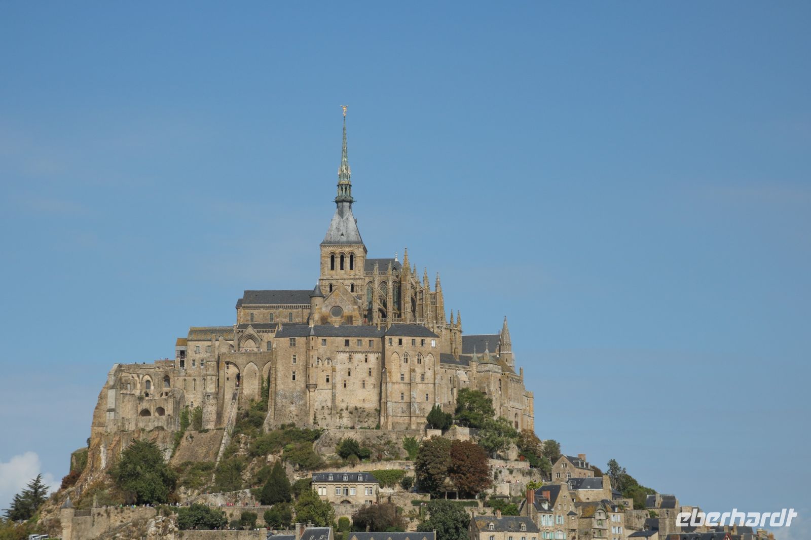 Mont Saint-Michel, häufig auch als „Wunder des Abendlands“ bezeichnet, bildete das Highlight des Tages. Der Klosterberg zählte schon im Mittelalter zu den bedeutendsten Wallfahrtsorten in ganz Europa. Hier, wo die Insel, in früheren Zeiten auch Mont-Tombe genannt, regelmäßig von den Gezeiten umspült wird, entschloss sich der Bischof von Avranches im Jahr 708 eine Kirche zu bauen. Die Insel hatte in all den Jahren eine sehr bewegte Geschichte und beherbergt seit 1520 auch eine Klosteranlage. Zwischenzeitlich wurde der Mont Saint-Michel auch als Gefängnis genutzt und stand kurz vor dem endgültigen Verfall. Seit dem 19. Jahrhundert aber wird ständig an der Rekonstruktion dieses einmaligen Bauwerks gearbeitet. Über 140 Meter streckt sich der Kirchturm in die Höhe. Bei unserem Besuch hatten wir die Möglichkeit, die Abtei des Klosters zu besuchen und allerhand wissenswertes darüber zu erfahren. Es leben sogar noch 29 Menschen auf dem Berg, alle sind Ordensleute der Gemeinschaft von Jerusalem und verdienen ihren Lebensunterhalt mit dem Tourismus. Außerdem hatten wir Zeit, uns die umliegenden Anlagen, Gebäude und Souvenirshops anzusehen. Über die 2002 errichtete Brücke verließen wir dieses gigantische Bauwerk und wurden von Bussen zurück zum Parkplatz gebracht. Manche Gäste nutzten die Gelegenheit und gingen den Weg vom Mont Saint-Michel zu Fuß. Die Gezeiten sind in der Bucht vom Mont Saint-Michel sehr stark und erreichen manchmal Höhen von bis zu 15 Metern! Dabei kommt es auch vor, dass die Brücke vom Klosterberg vollständig unter Wasser steht.