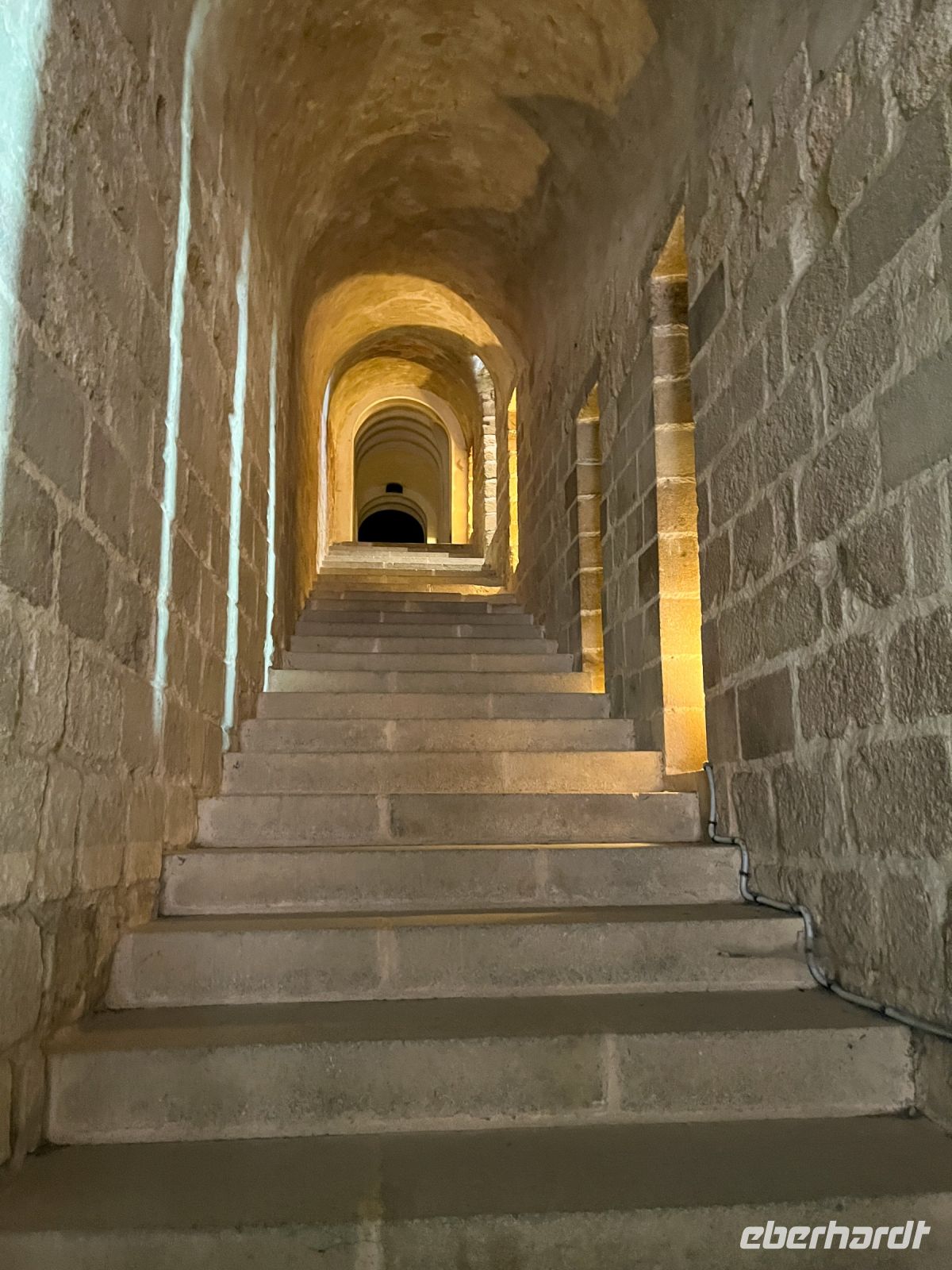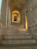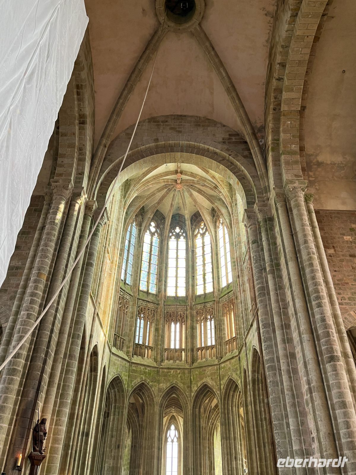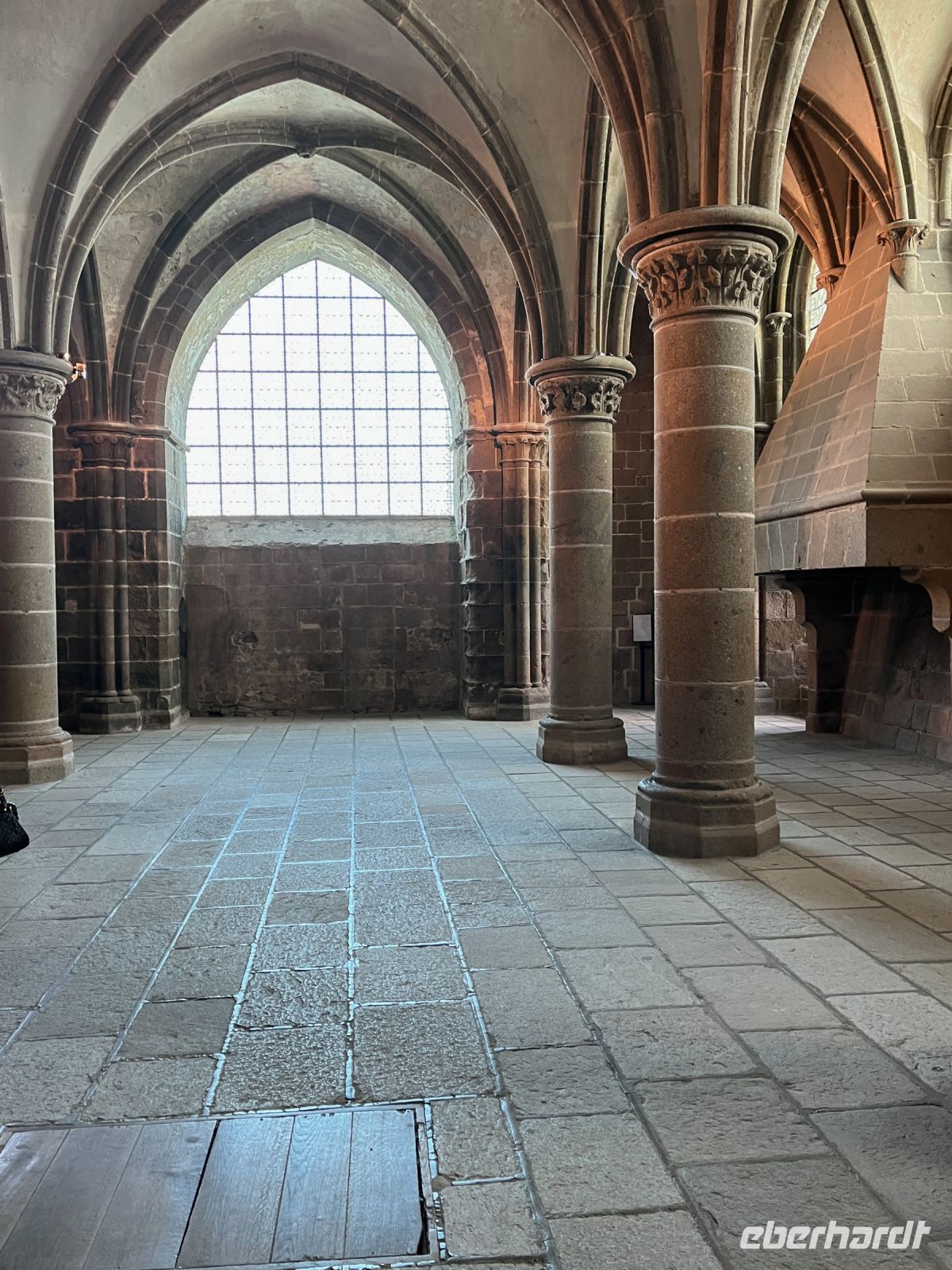 Mont Saint-Michel, häufig auch als „Wunder des Abendlands“ bezeichnet, bildete das Highlight des Tages. Der Klosterberg zählte schon im Mittelalter zu den bedeutendsten Wallfahrtsorten in ganz Europa. Hier, wo die Insel, in früheren Zeiten auch Mont-Tombe genannt, regelmäßig von den Gezeiten umspült wird, entschloss sich der Bischof von Avranches im Jahr 708 eine Kirche zu bauen. Die Insel hatte in all den Jahren eine sehr bewegte Geschichte und beherbergt seit 1520 auch eine Klosteranlage. Zwischenzeitlich wurde der Mont Saint-Michel auch als Gefängnis genutzt und stand kurz vor dem endgültigen Verfall. Seit dem 19. Jahrhundert aber wird ständig an der Rekonstruktion dieses einmaligen Bauwerks gearbeitet. Über 140 Meter streckt sich der Kirchturm in die Höhe. Bei unserem Besuch hatten wir die Möglichkeit, die Abtei des Klosters zu besuchen und allerhand wissenswertes darüber zu erfahren. Es leben sogar noch 29 Menschen auf dem Berg, alle sind Ordensleute der Gemeinschaft von Jerusalem und verdienen ihren Lebensunterhalt mit dem Tourismus. Außerdem hatten wir Zeit, uns die umliegenden Anlagen, Gebäude und Souvenirshops anzusehen. Über die 2002 errichtete Brücke verließen wir dieses gigantische Bauwerk und wurden von Bussen zurück zum Parkplatz gebracht. Manche Gäste nutzten die Gelegenheit und gingen den Weg vom Mont Saint-Michel zu Fuß. Die Gezeiten sind in der Bucht vom Mont Saint-Michel sehr stark und erreichen manchmal Höhen von bis zu 15 Metern! Dabei kommt es auch vor, dass die Brücke vom Klosterberg vollständig unter Wasser steht.