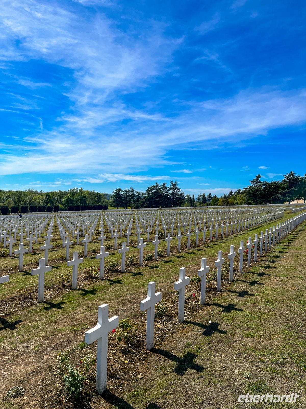 Der Tag begann mit einer kurzen Überfahrt von Metz nach Verdun. Hier, vor den Toren der Stadt fand im Jahr 1916 eine der schlimmsten und längsten Schlachten des Ersten Weltkriegs statt. Unsere örtliche Reiseleitung informierte uns über die sichtbaren und unsichtbaren Folgen des Grabenkriegs, der Granaten und der Giftgasangriffe. Heute hat sich die Landschaft wieder erholt, die Gräben und Schlachtfelder sind wieder von Wäldern bedeckt und die Natur erobert sich viele Ort zurück. Trotzdem ist es noch immer gefährlich von den ausgewiesenen Wegen abzuweichen, da noch sehr viele Blindgänger im Boden versteckt liegen. Eine Besichtigung im Artillerieforts Douaumont führte uns die Lebensumstände im Krieg vor Augen. Im Fort lernten wir viel über dessen bewegte Geschichte im ersten Weltkrieg. Tief im Inneren befindet sich auch ein deutscher Friedhof. In den völlig überfüllten Räumen ereignete sich im Mai 1918 eine verheerende Explosion, die viele Soldaten in den Tod riss. Im Anschluss wurde die Reisegruppe durch das weltberühmte Beinhaus geführt. In dem Gebäude, dass an ein im Boden steckendes Schwert erinnern soll, haben über 130.000 französische und deutsche Soldaten ihre letzte Ruhestätte gefunden. Vor dem Beinhaus erstreckt sich ein großer Friedhof mit weißen Kreuzen für all die gefallenen Soldaten. Auch den muslimischen und jüdischen Soldaten wurde ein Denkmal errichtet. Insgesamt fielen bei der Schlacht von Verdun etwa 300.000 Soldaten. Ein Film über die Geschehnisse von 1914 – 1918 brachte uns das Grauen vom Ersten Weltkrieg näher. Von Verdun, die heute den Beinamen „Stadt des Friedens“ trägt, setzten wir unsere Reise gen Westen fort. Um mit dem großen Thema Erster Weltkrieg abzuschließen, legten wir einen Stopp an der bekannten Lichtung des Waffenstillstands nahe Compiègne ein. Hier befindet sich eine Replik vom Speisewagen, der 1918 genutzt wurde, um den Ersten Weltkrieg zu beenden. Auch die Deutschen nutzten den symbolträchtigen Wagen für die Unterzeichnung eines Waffenstillstands. Am 22. Juni 1940 wurde der Wagen aus seinem ursprünglichen Museum geholt und wieder zur Vertragsunterzeichnung genutzt. Das Original wurde nach Berlin überführt und kurz vor dem Ende des Zweiten Weltkriegs zerstört. Heute befindet sich ein Nachbau im Museum.