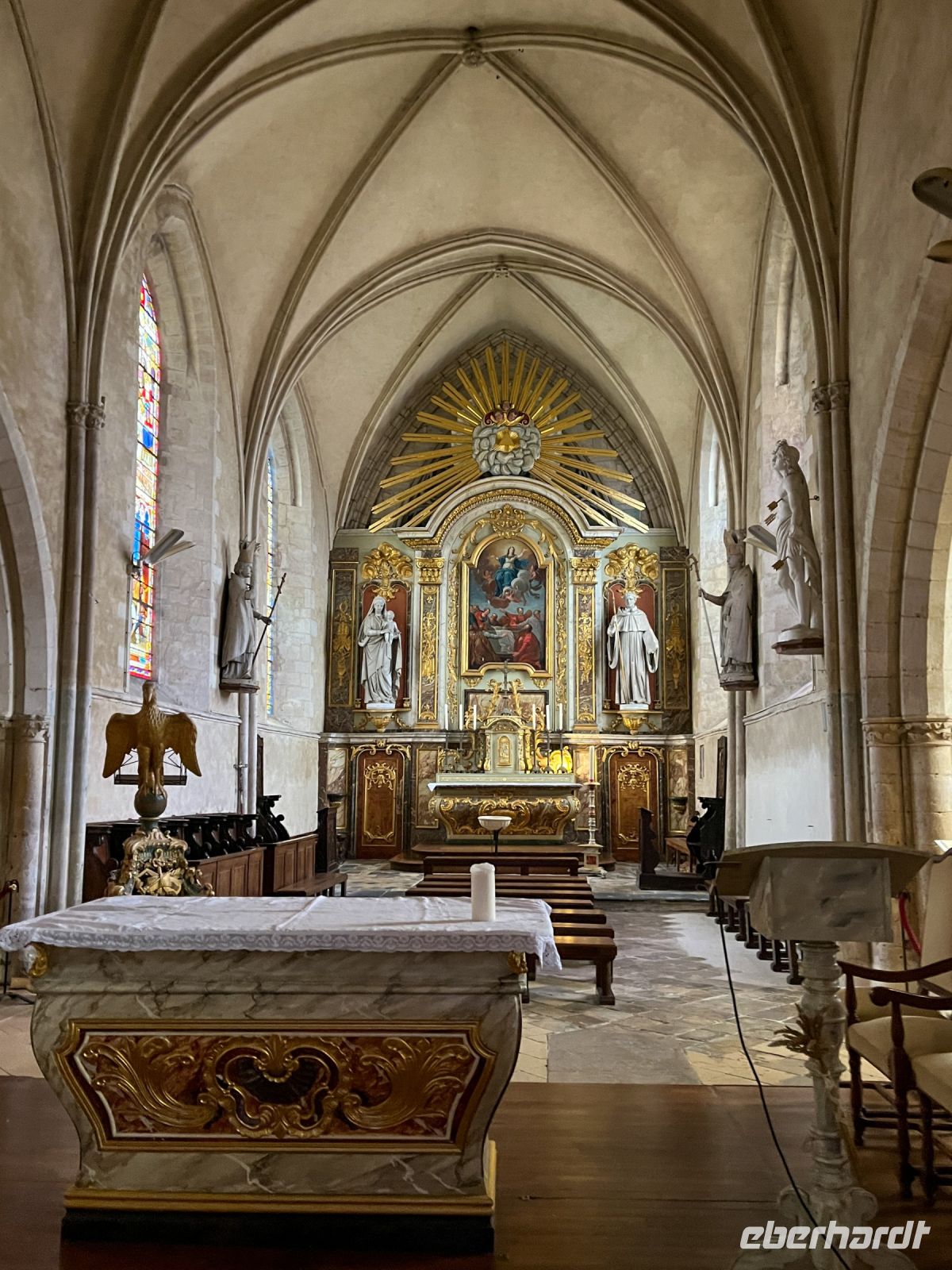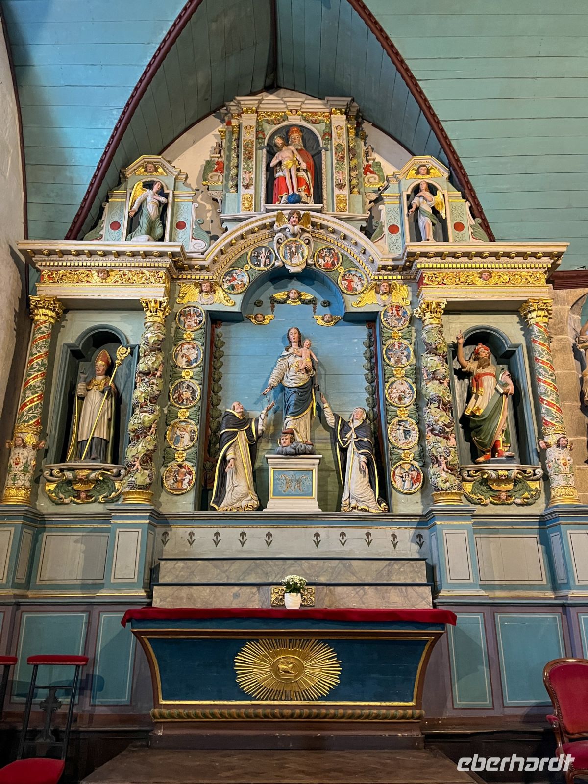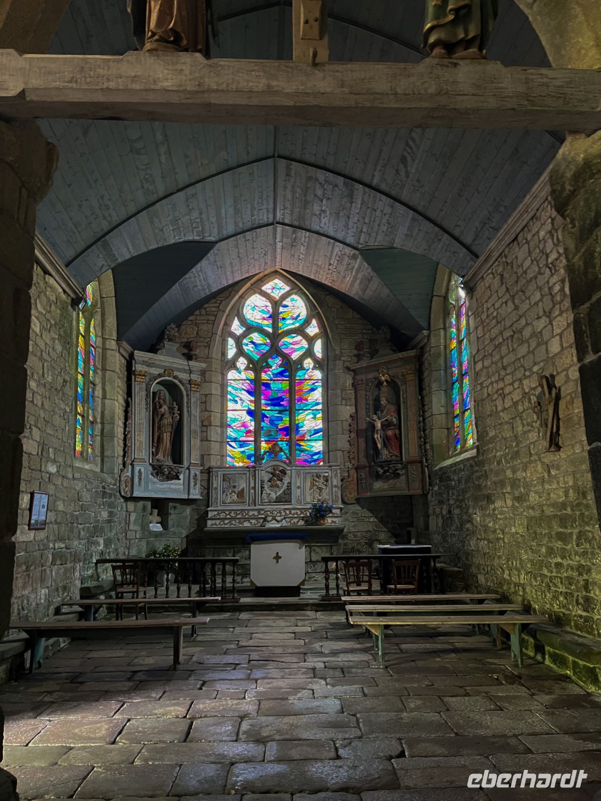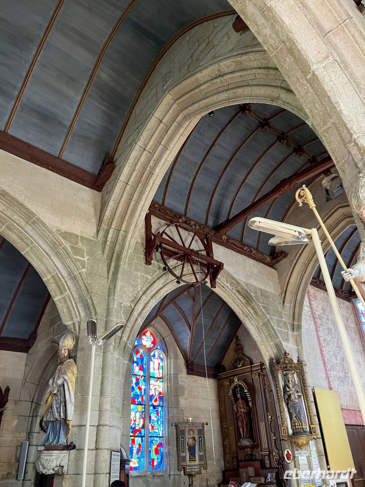 Wir machten uns aber auf nach Confort – hier befindet sich die Notre Dame von Confort-Meilars. Im Inneren dieser Kirche befindet sich ein radförmiges Glockenspiel. Es stammt aus dem 16. Jahrhundert und ist einzigartig in der ganzen Region. Diesem Glockenspiel werden außergewöhnliche Kräfte zugeschrieben, es soll unter anderem für Wunderheilungen verantwortlich sein. Beim Spielen des Glockenspiels sollen diese wundersamen Kräfte frei werden und auch wir probierten es sofort aus!