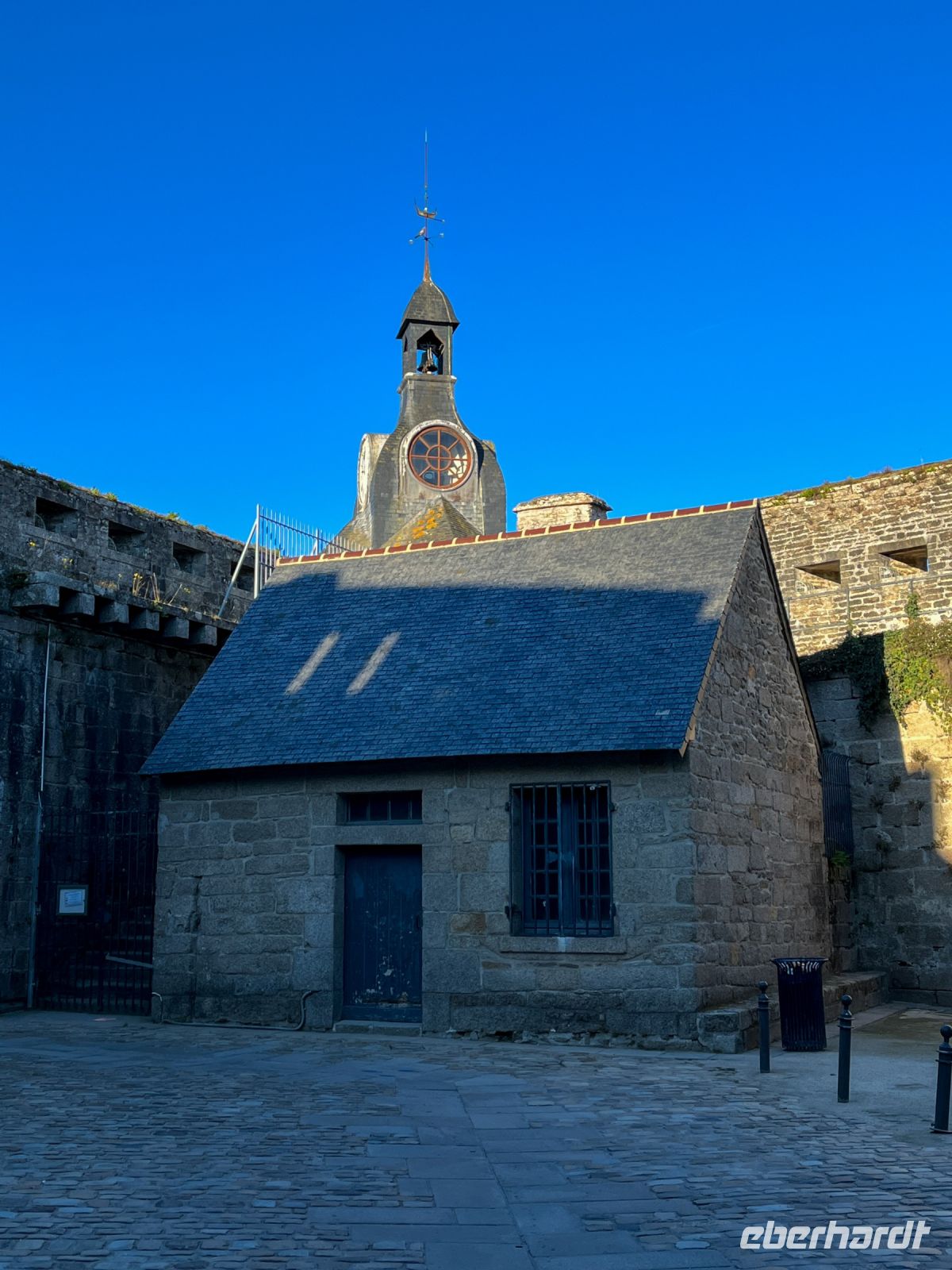 Eine beeindruckende Stadtmauer umschließt die ganze Ville Close. Es gibt nur ein paar Öffnungen der Mauer, diese werden Porte au Vine genannt. Von hier aus wurden die Bewohner der Stadt hauptsächlich mit dem begehrten Wein versorgt. Heutzutage hat man durch die Öffnungen eine tolle Sicht auf den Hafen und das Meer.