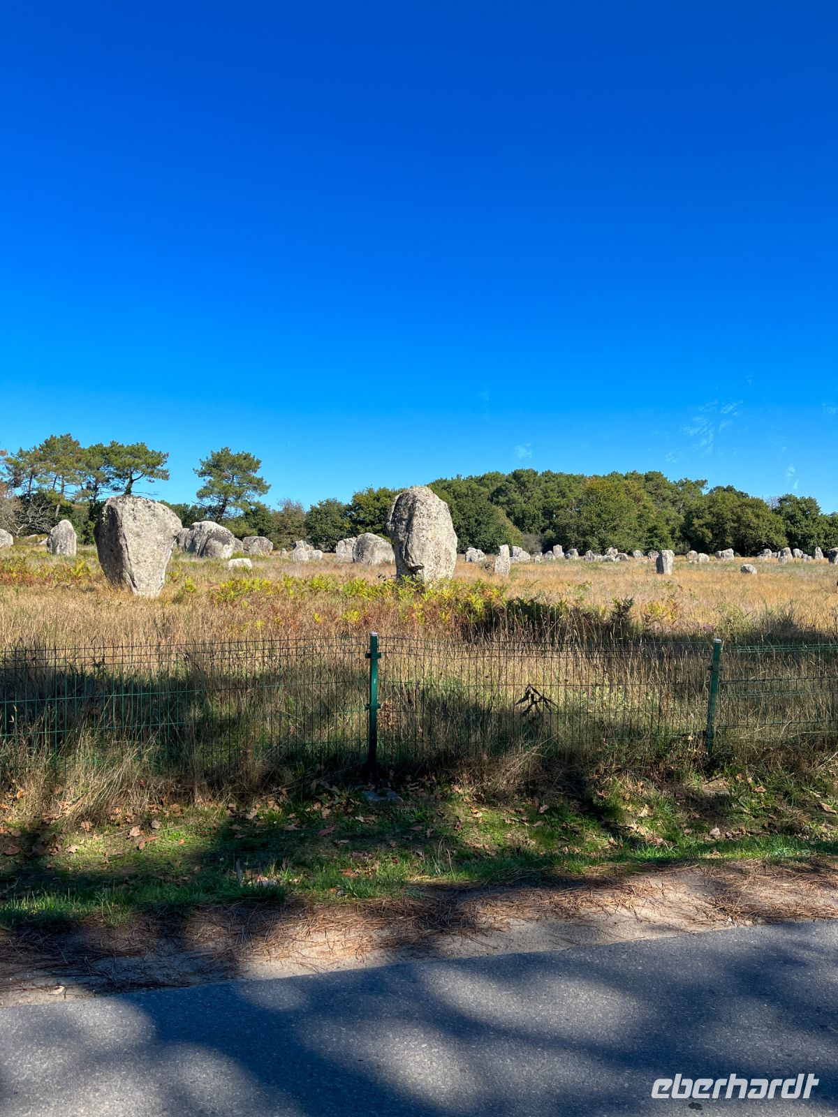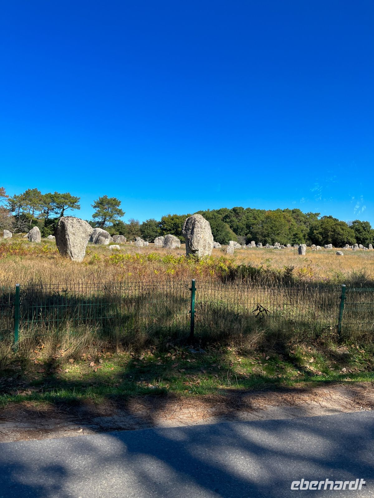 Aber was sind diese Menhirfelder? Es sind Felder voller großer Steine, die teilweise über Kilometer in einer geraden Reihe aufgestellt wurden. Niemand weiß, wer diese Meisterleistung vollbracht hat und welchem Zweck sie dient. Dabei existieren sie teilweise schon seit 5000 v. Chr.